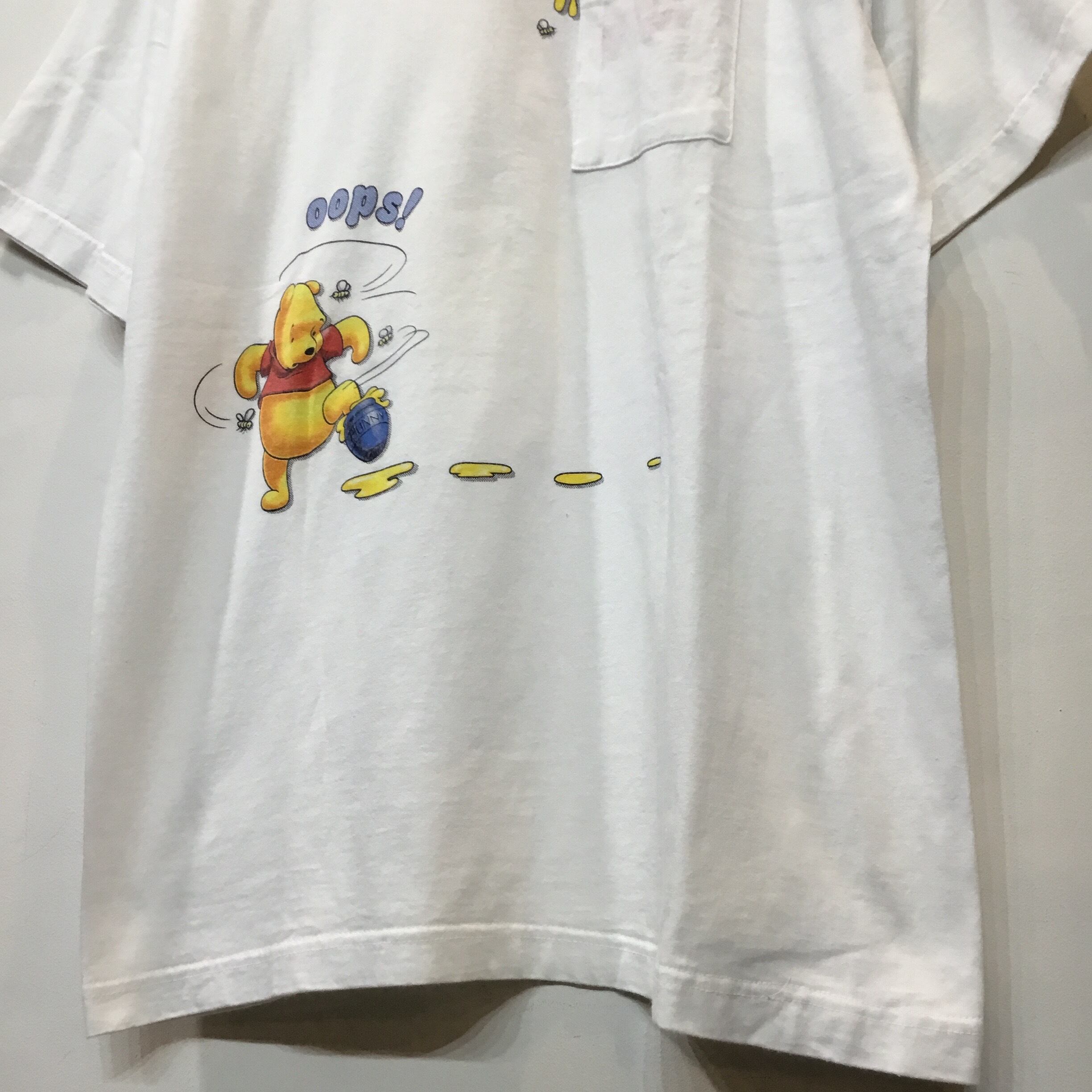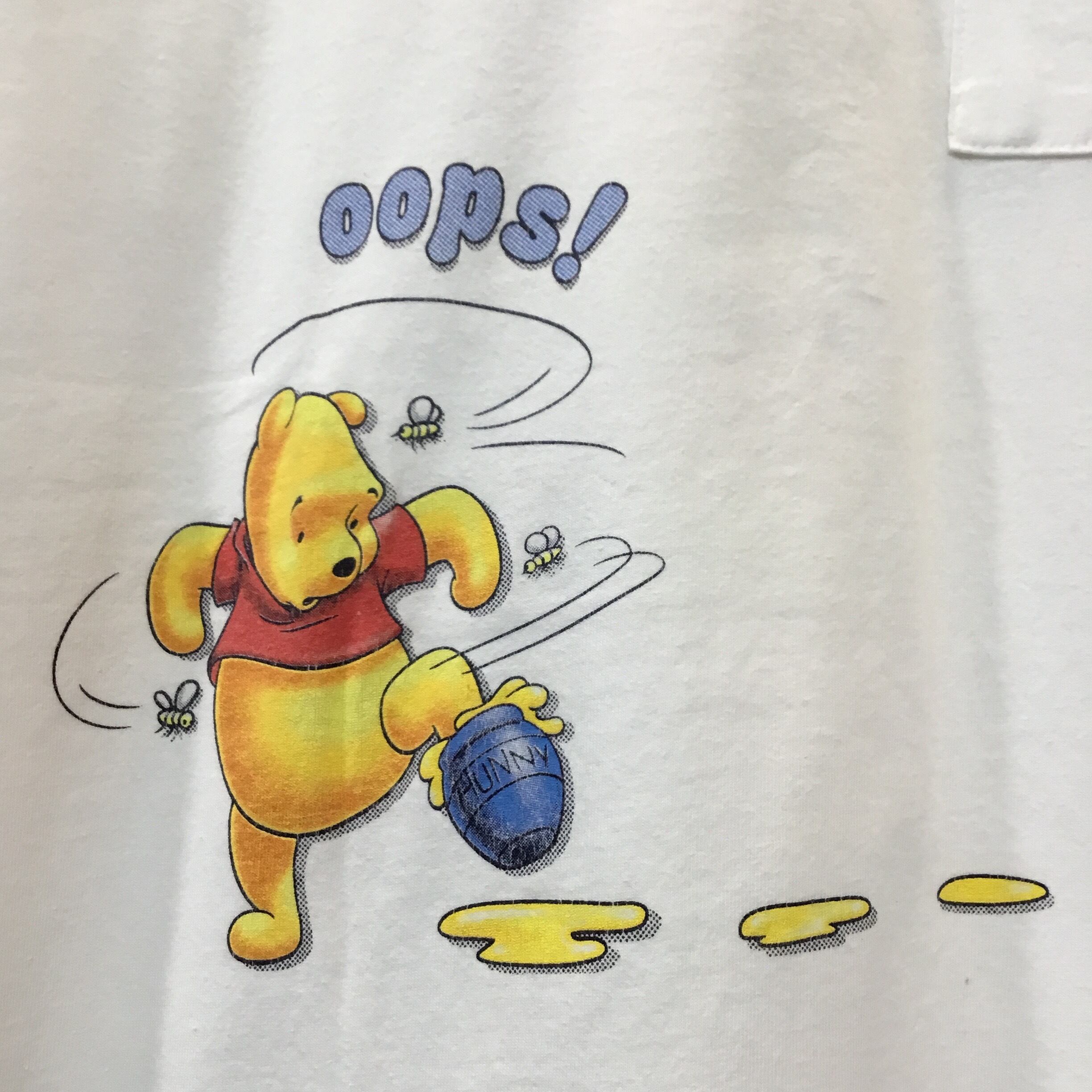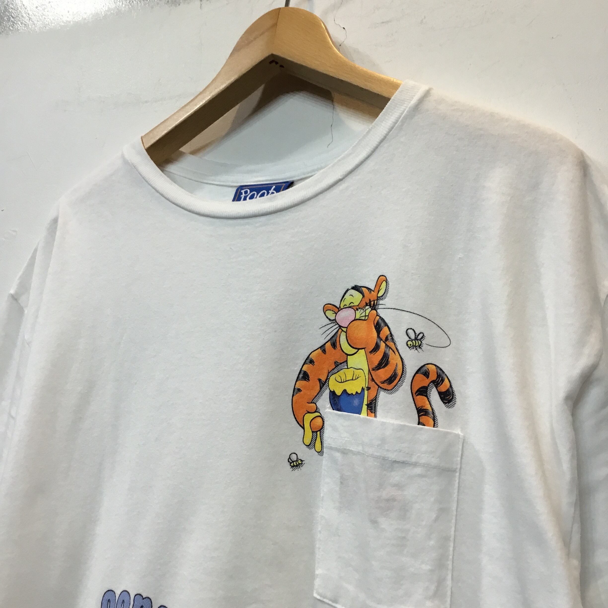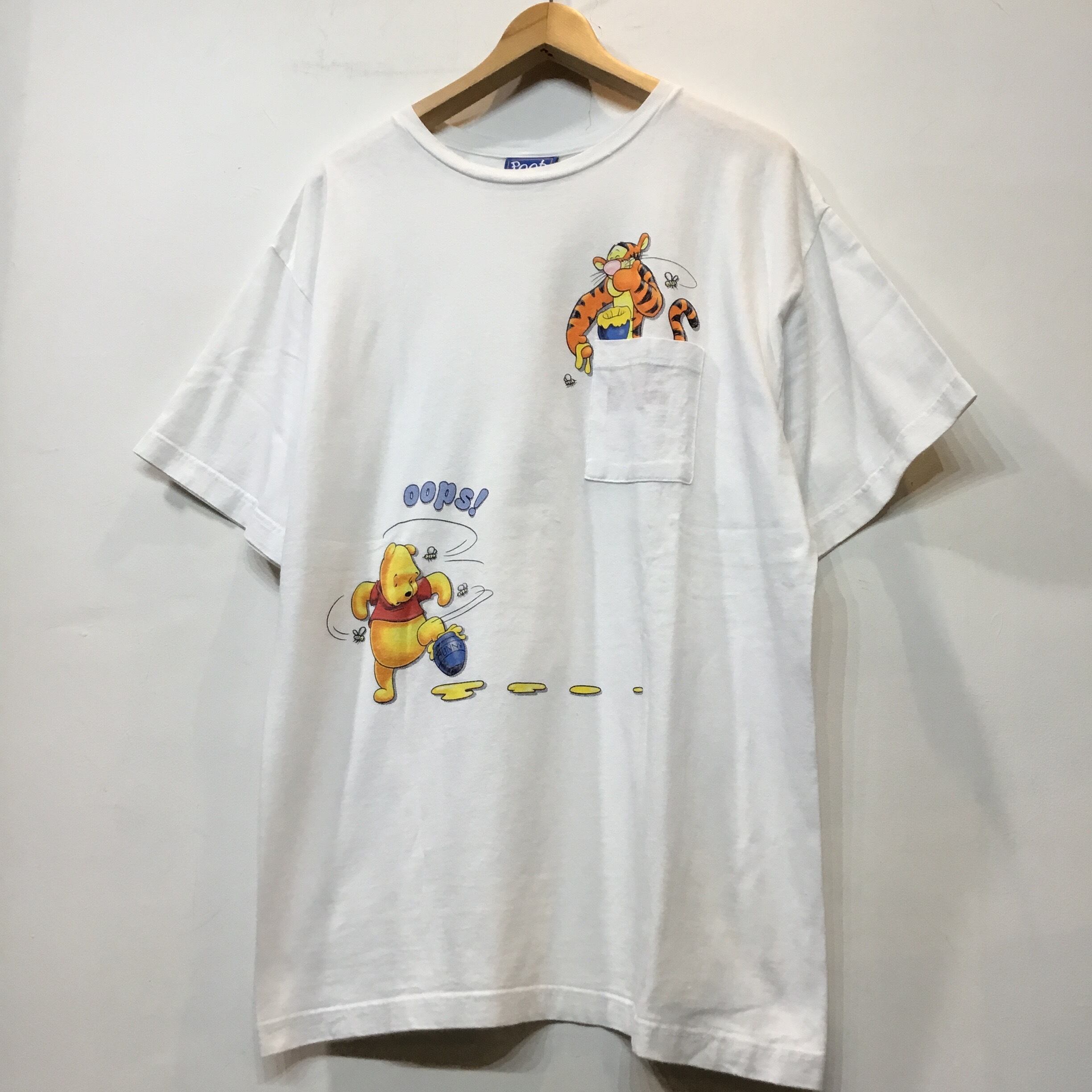 90’s Disney ディズニー プーさん ティガー キャラTシャツ プリントTシャツ 白Tシャツ ポケT 古着 【25SST】 gr-920