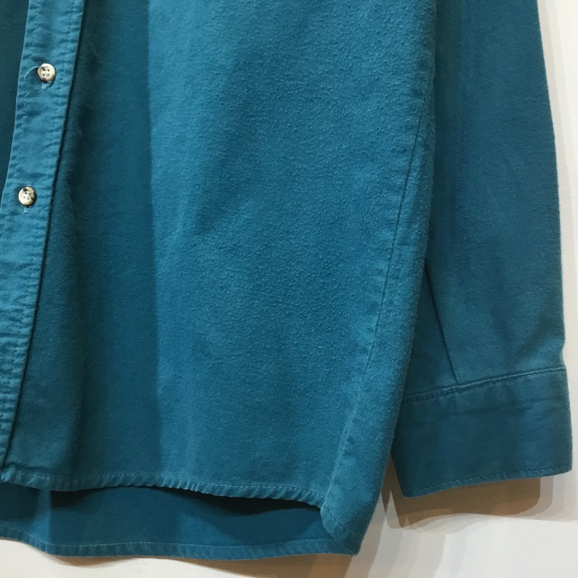 90’s FIVEBROTHER 長袖シャモアクロスシャツ メンズL-TALLサイズ 無地 グリーン系 ヘビーネルシャツ ビンテージ ファイブブラザー ビンテージ アメリカ古着 【25AWNS】 gr-691