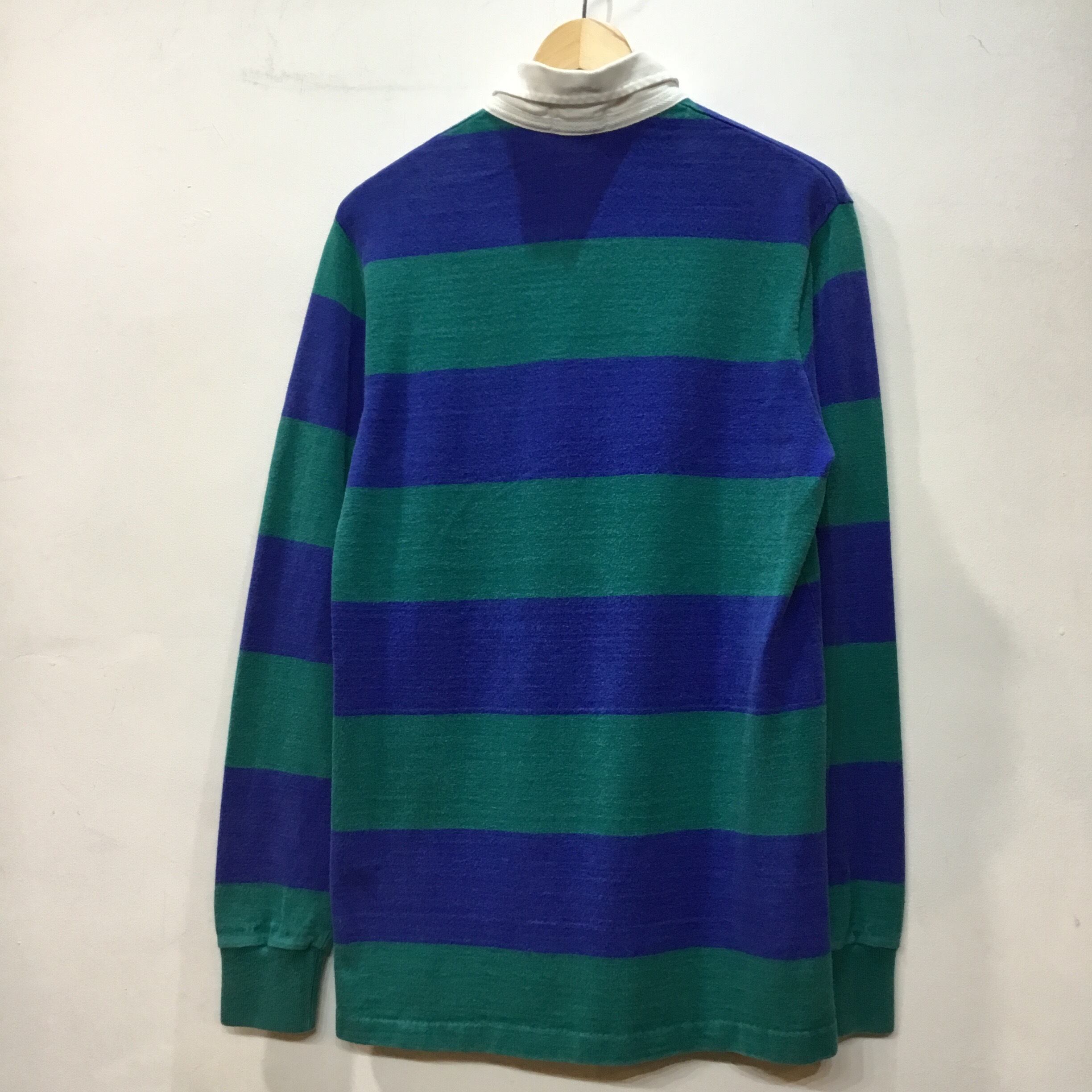 90年代 アメリカ製 ギャップの長袖ラガーシャツになります。配色、太ピッチボーダーが可愛いです。