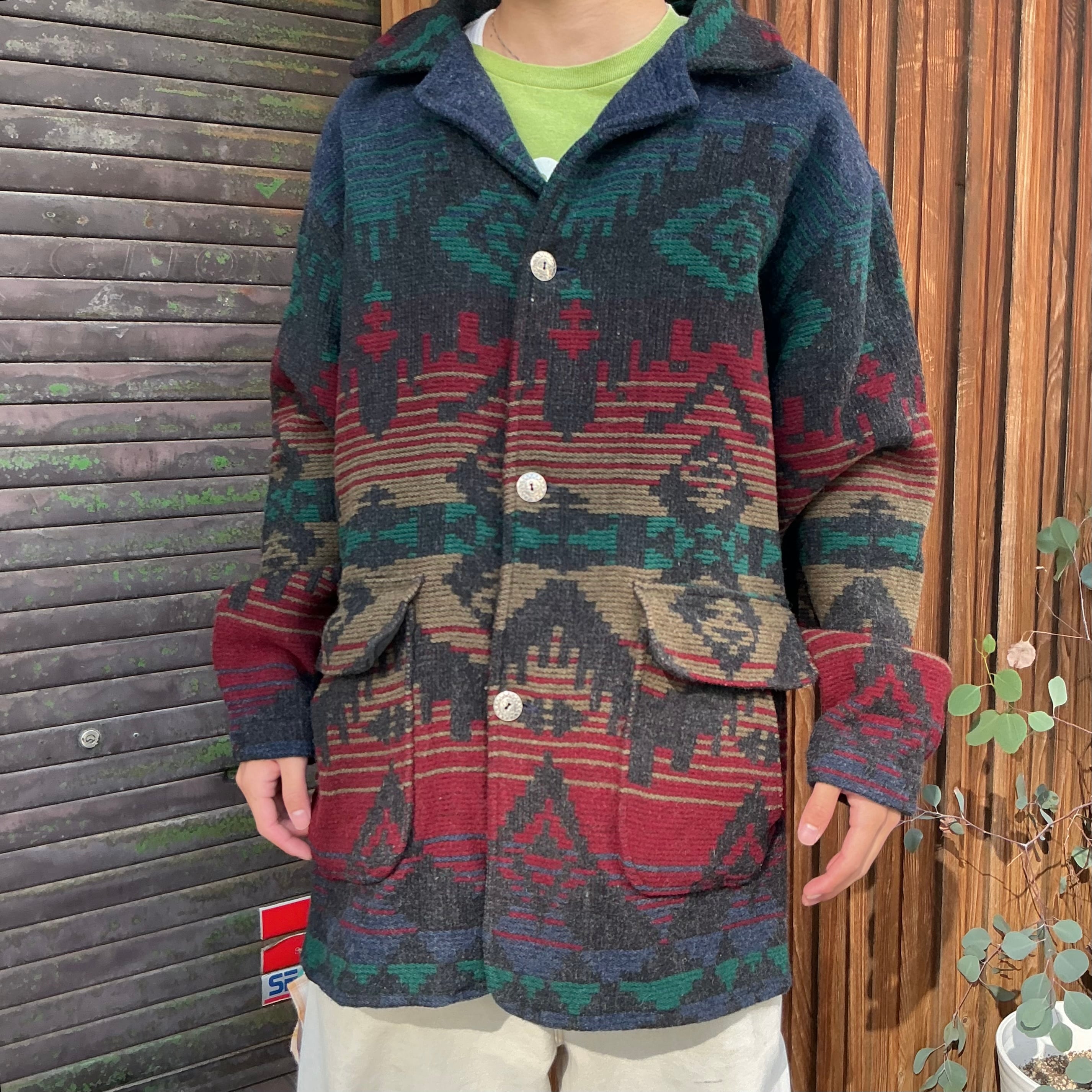 80’s USA製 Woolrich ウールリッチ ネイティブ柄 ウールジャケット コート ブランケット アウトドア ヴィンテージ 古着 【25AWJKT】 gr-1336