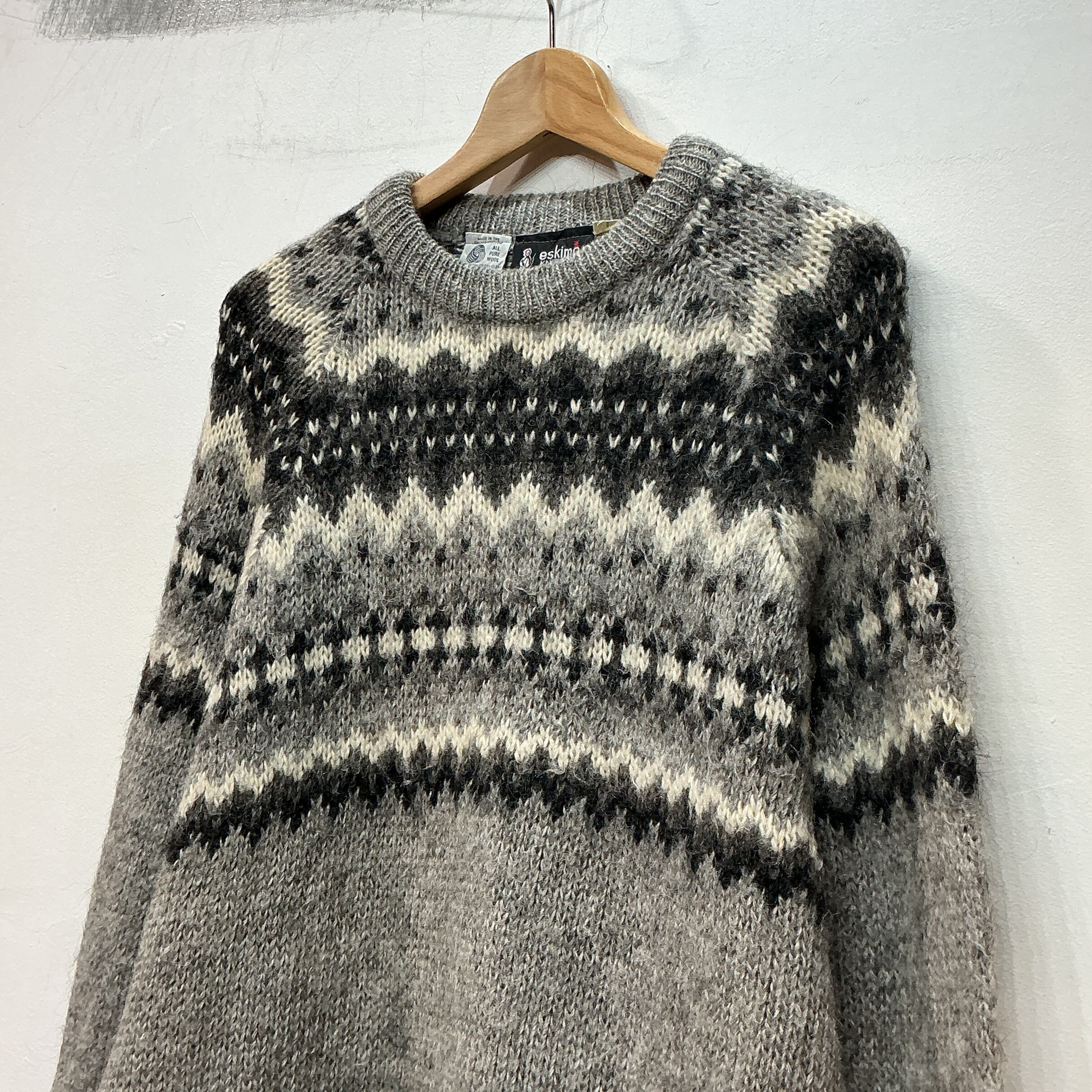 90’s ENGLAND製 eskimo エスキモー 柄ニット ウールニット フェアアイル柄 ノルディック柄 デザインニット ヴィンテージ 古着 【25AWKT】 gr-1347