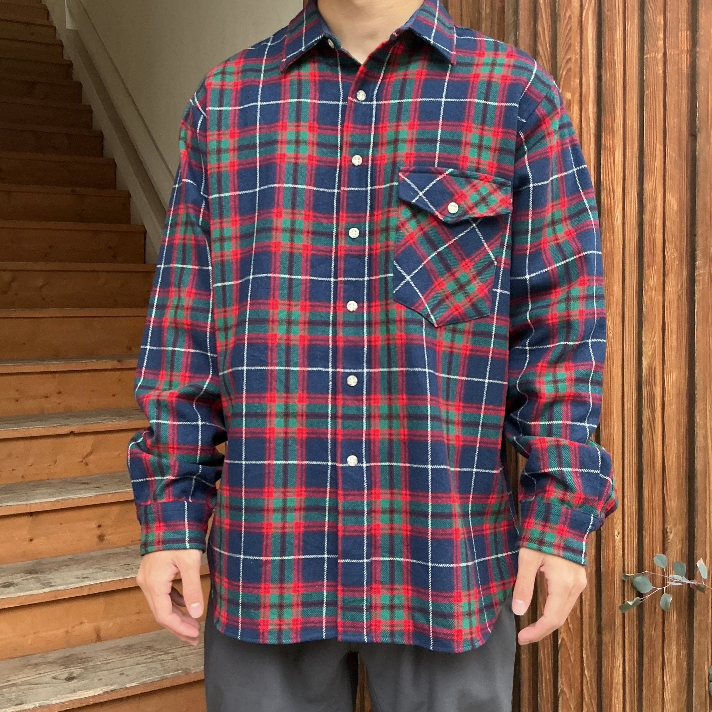 70’s USA製 PENDLETON ペンドルトン 長袖ウールシャツ チェック柄 エルボーパッチ メンズL アメカジ ヴィンテージ 古着 【25AWNS】 gr-1383