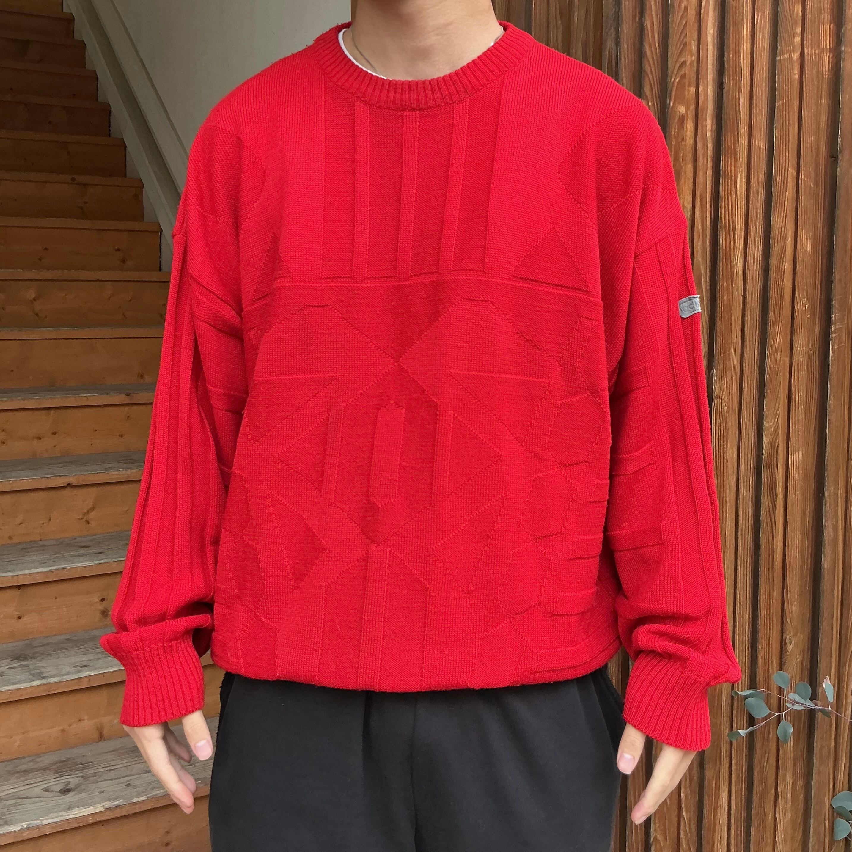 90年代 アディダス 表面にボコボコとした凹凸のある、エンボス調の立体編みニットになります。