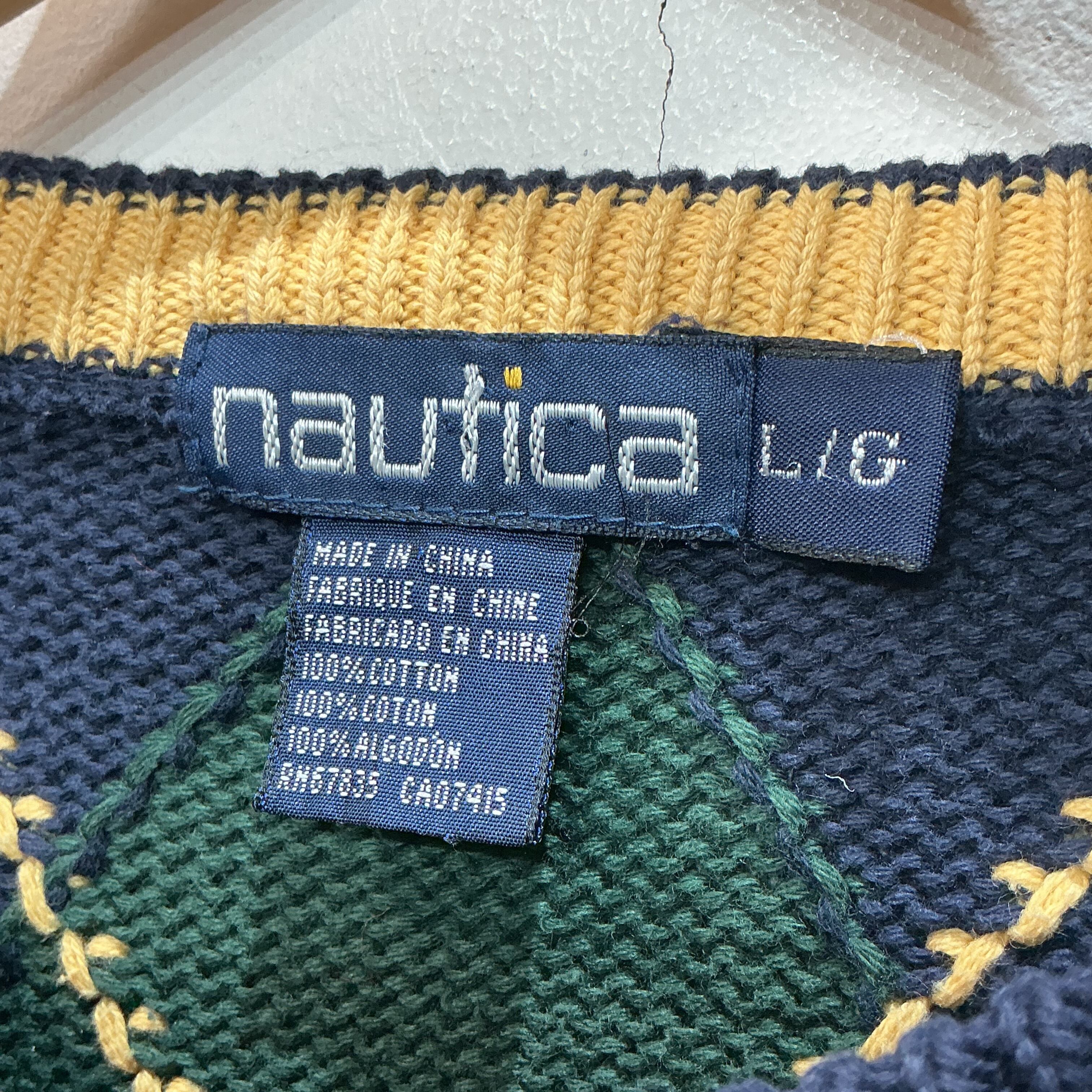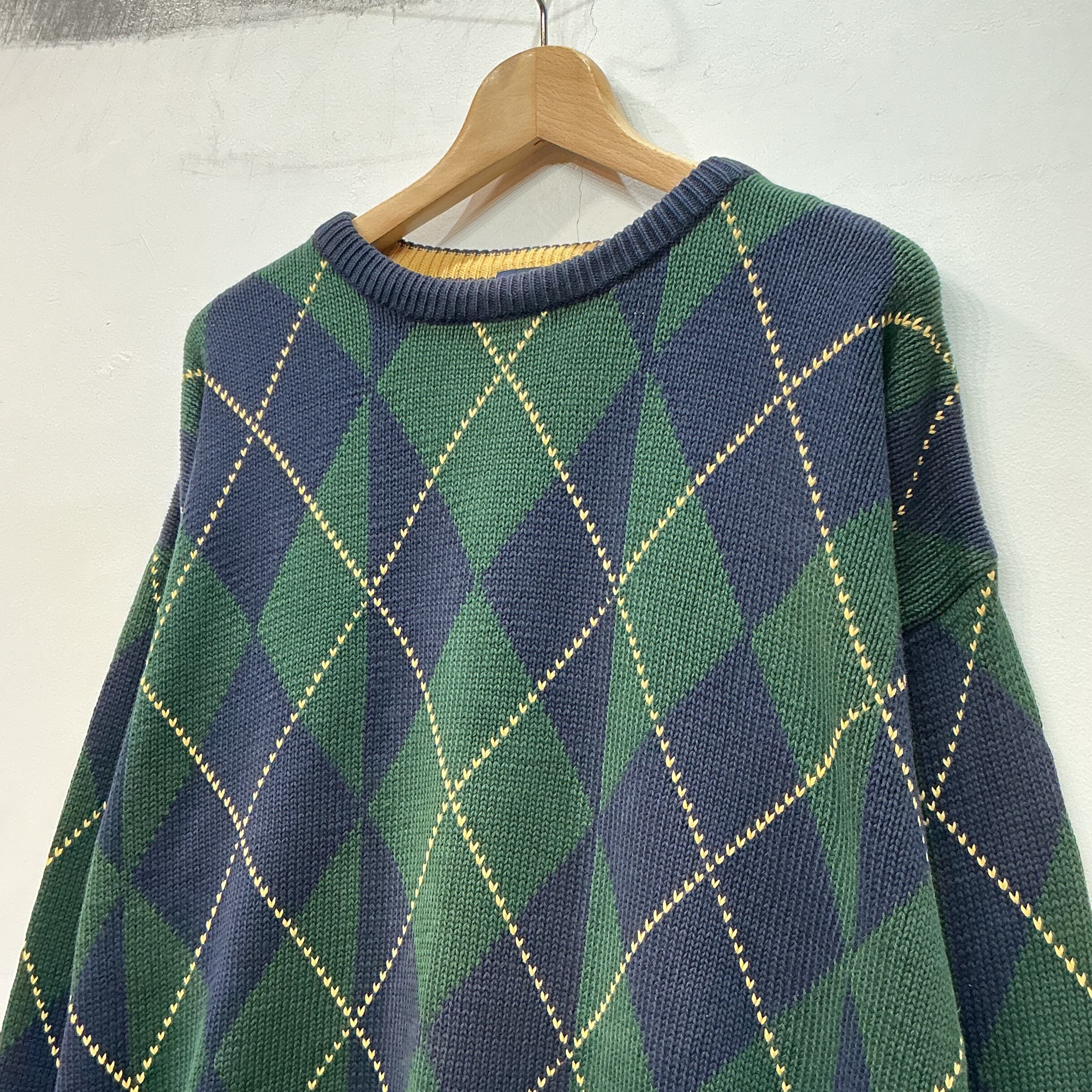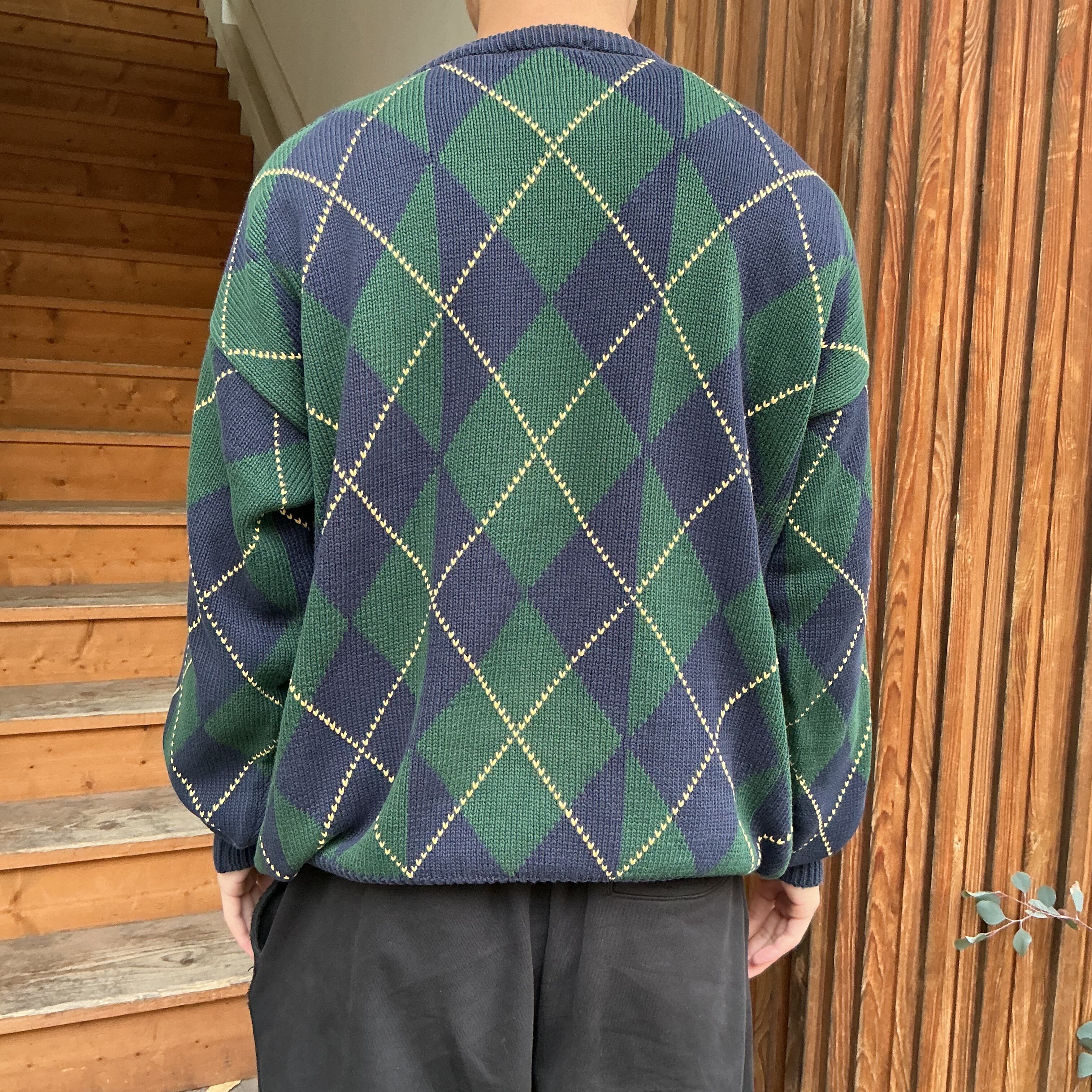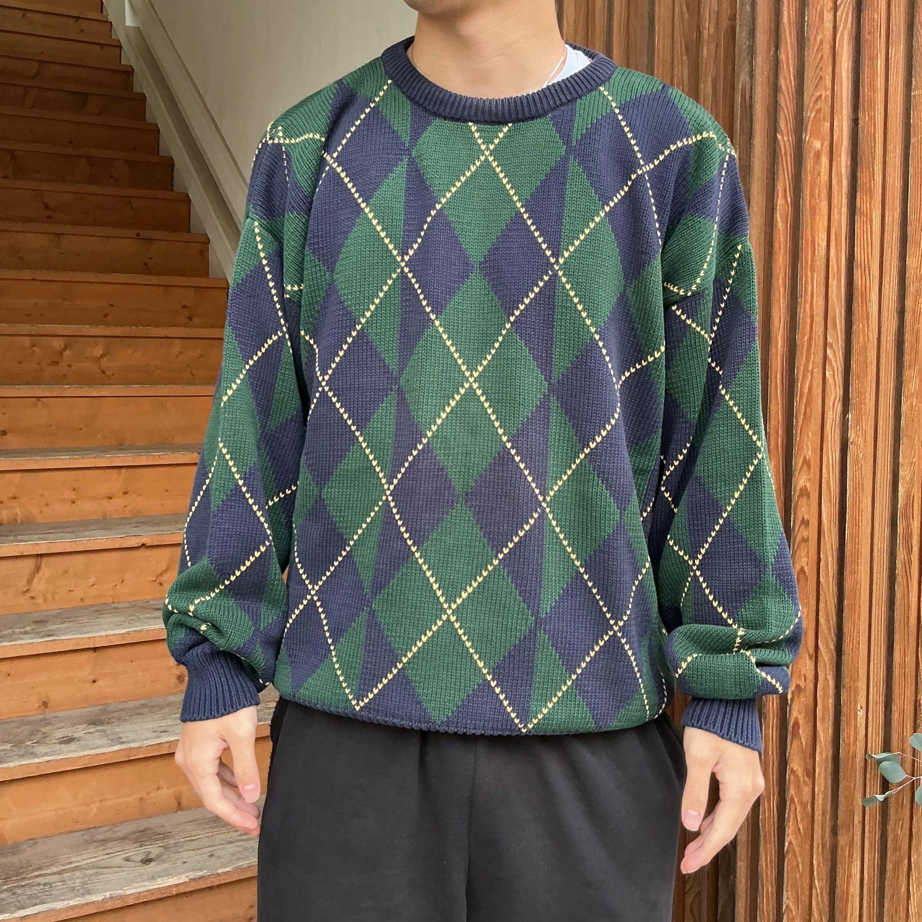 90’s NAUTICA ノーティカ アーガイルニット 柄ニット コットンニット ヴィンテージ 古着 【25AWKT】 gr-1402
