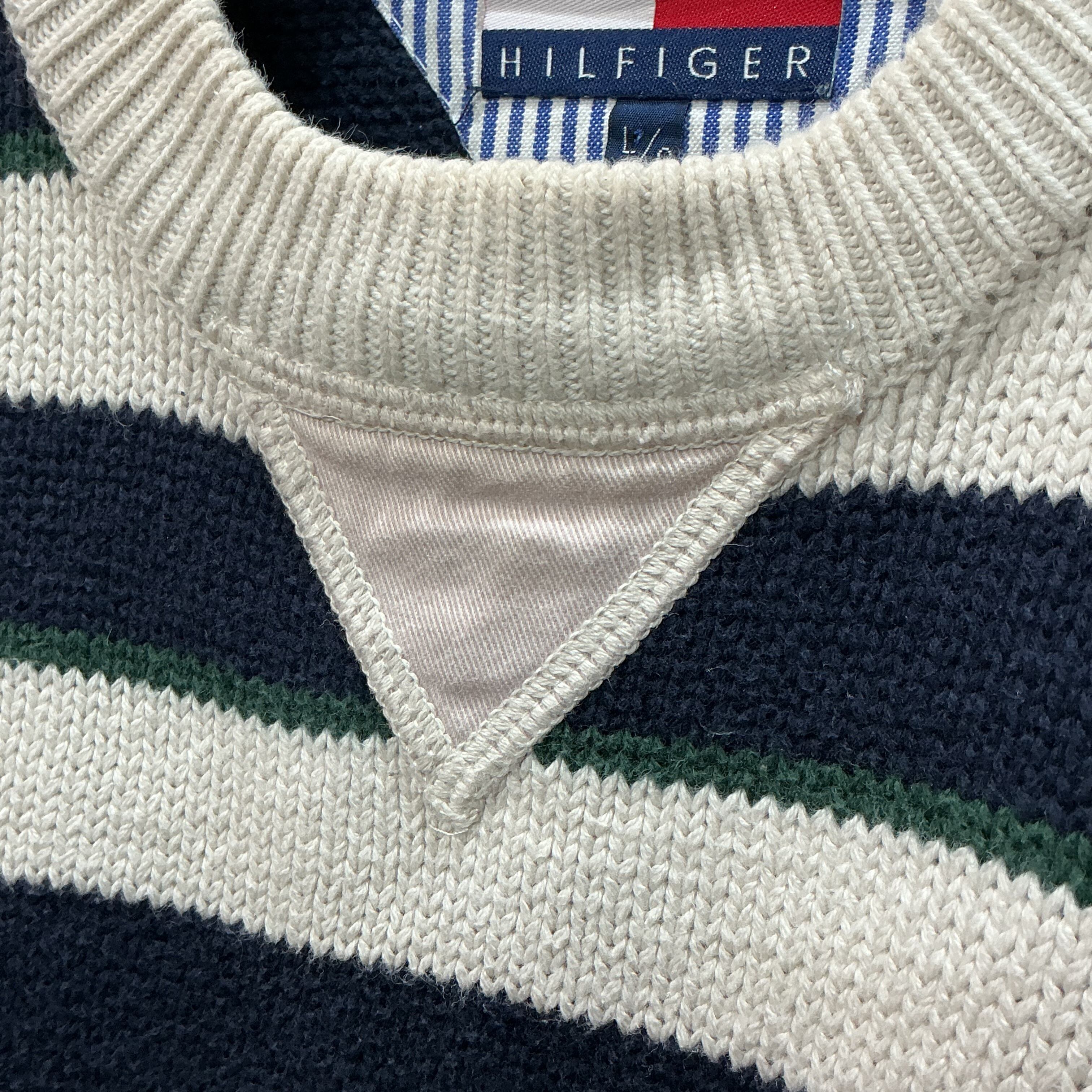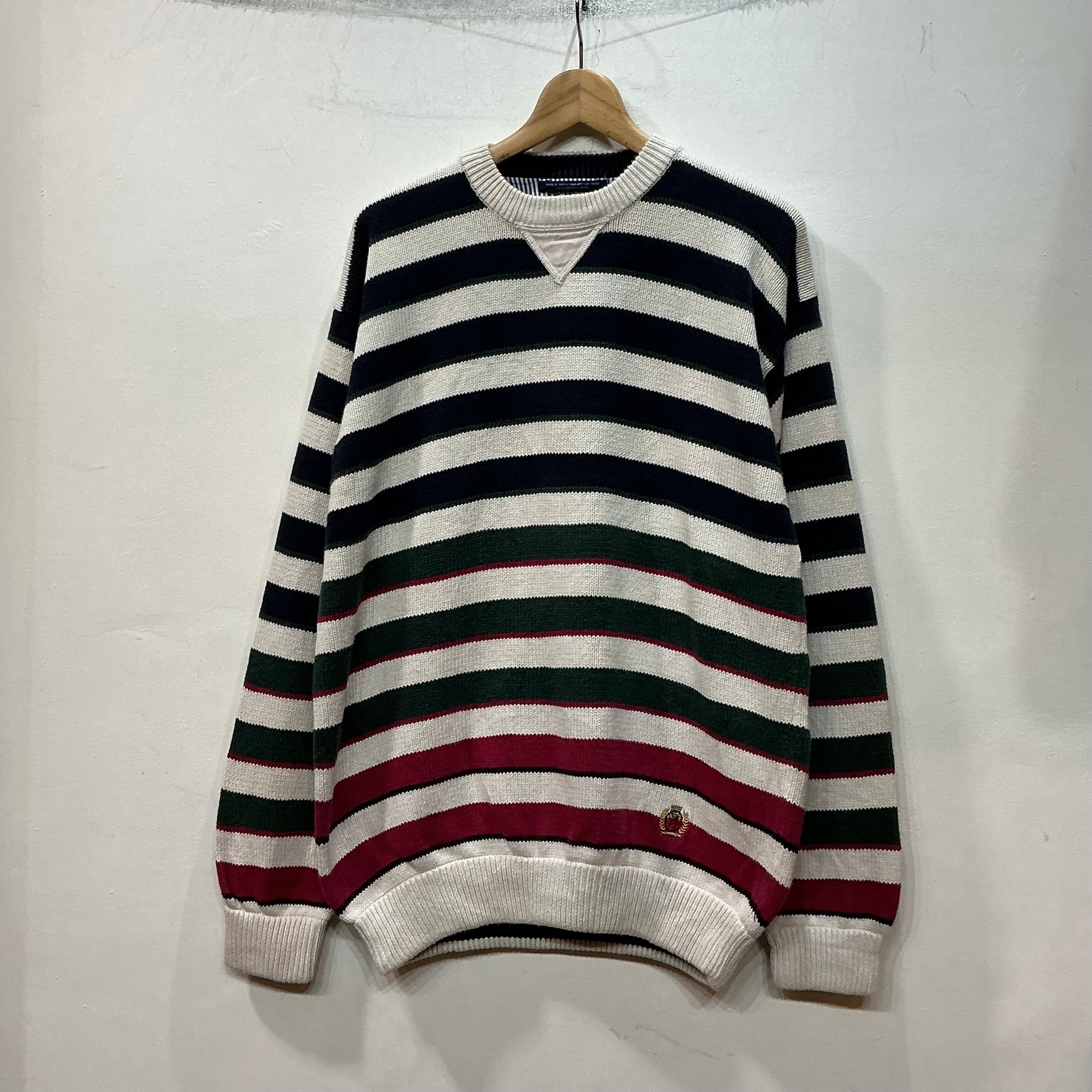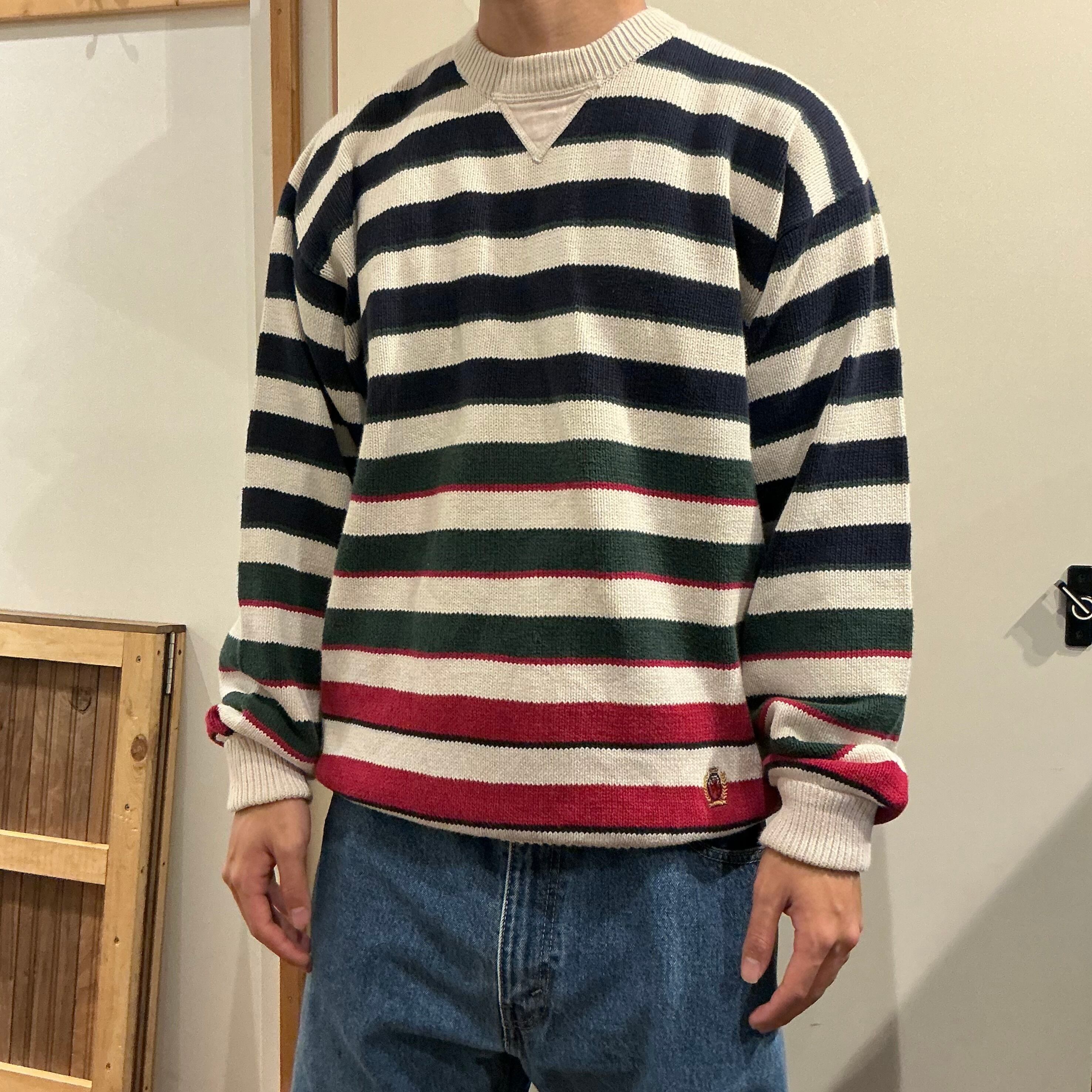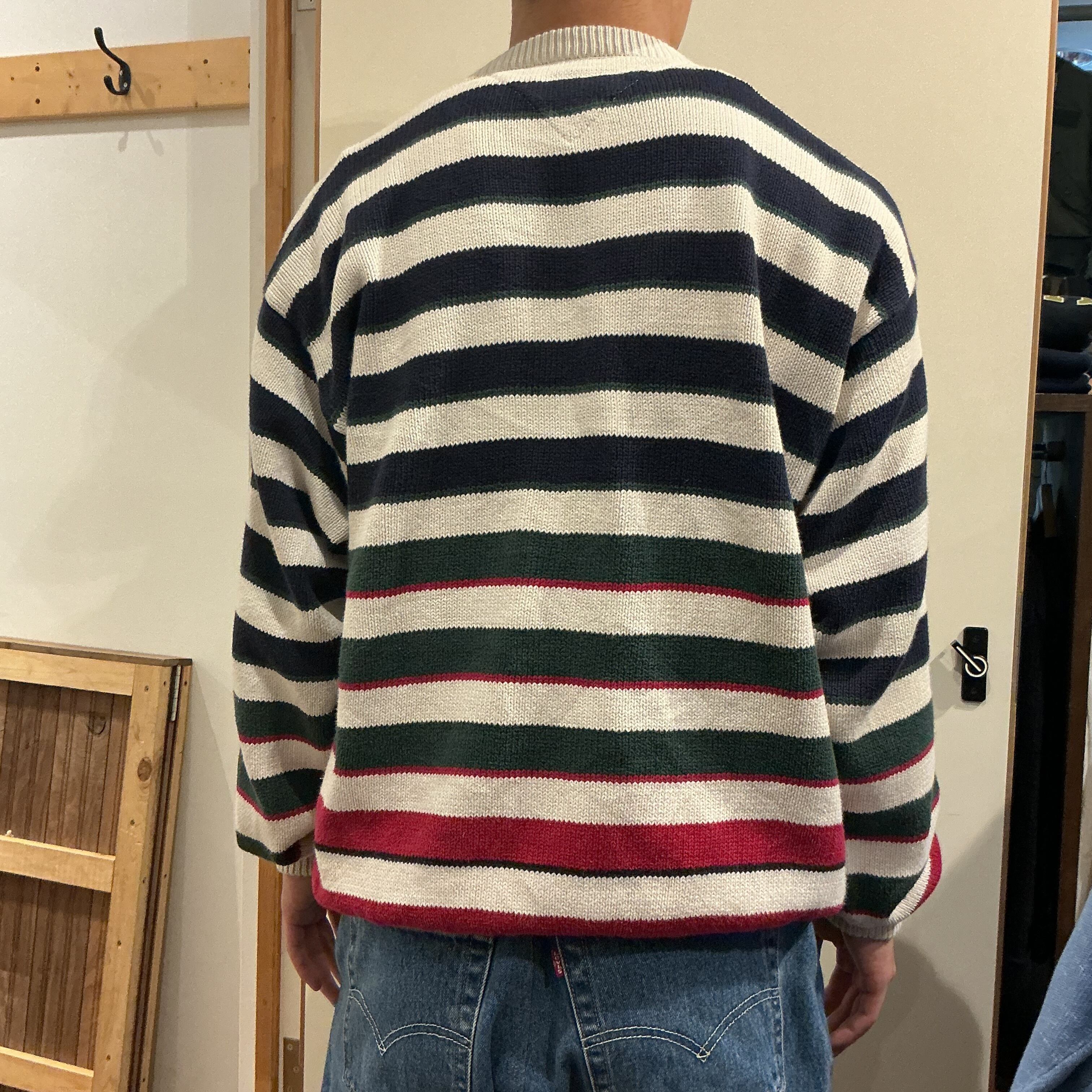 90’s TOMMY HILFIGER トミーヒルフィガー ボーダーニット コットンニット 柄ニット ヴィンテージ 古着【25AWKT】 gr-1408