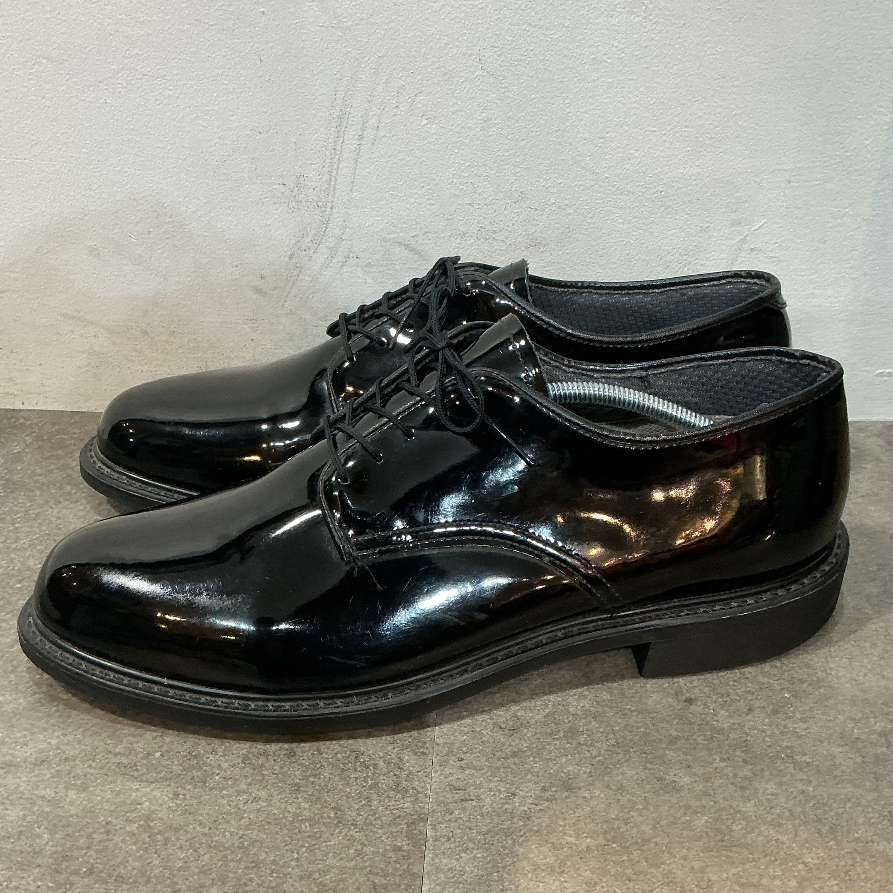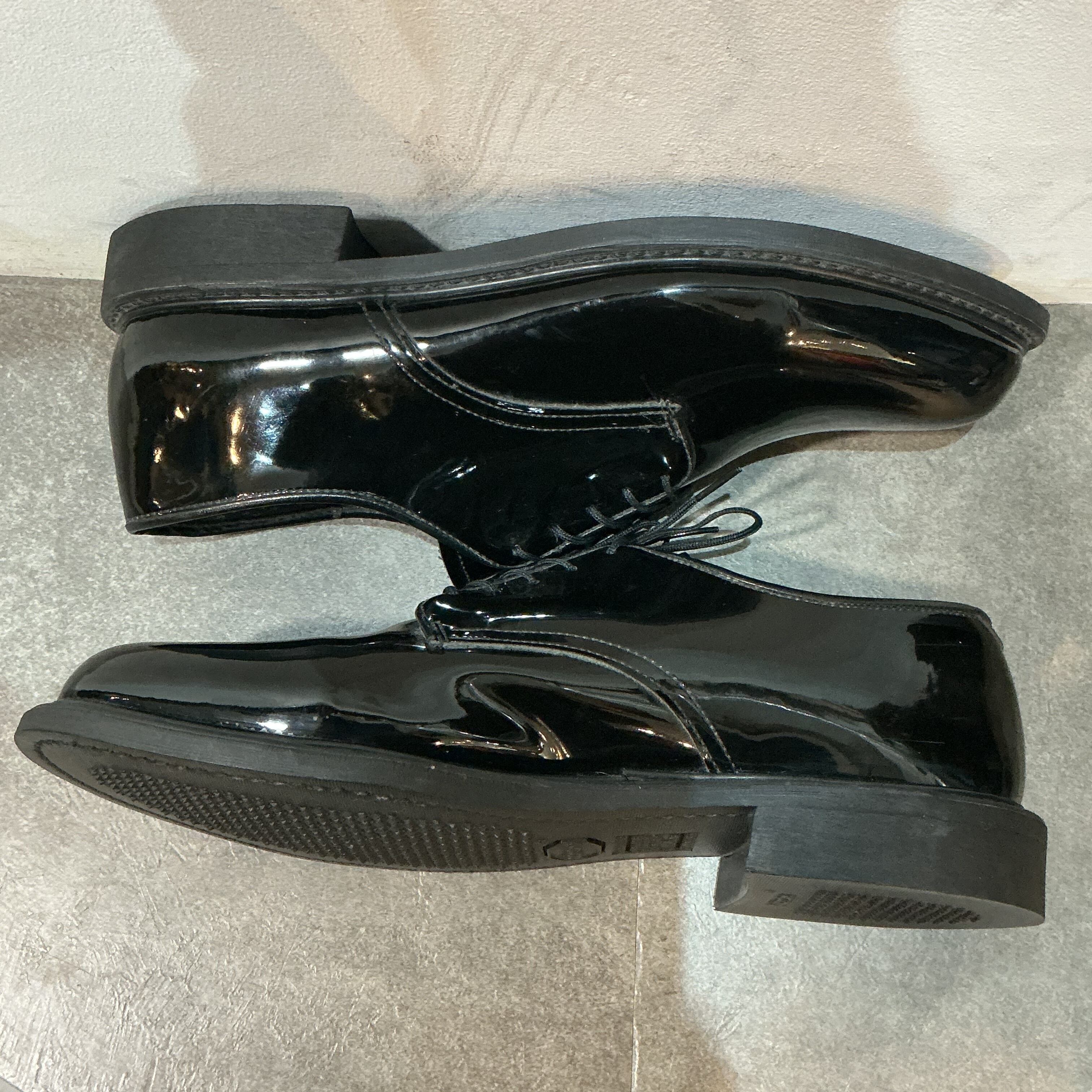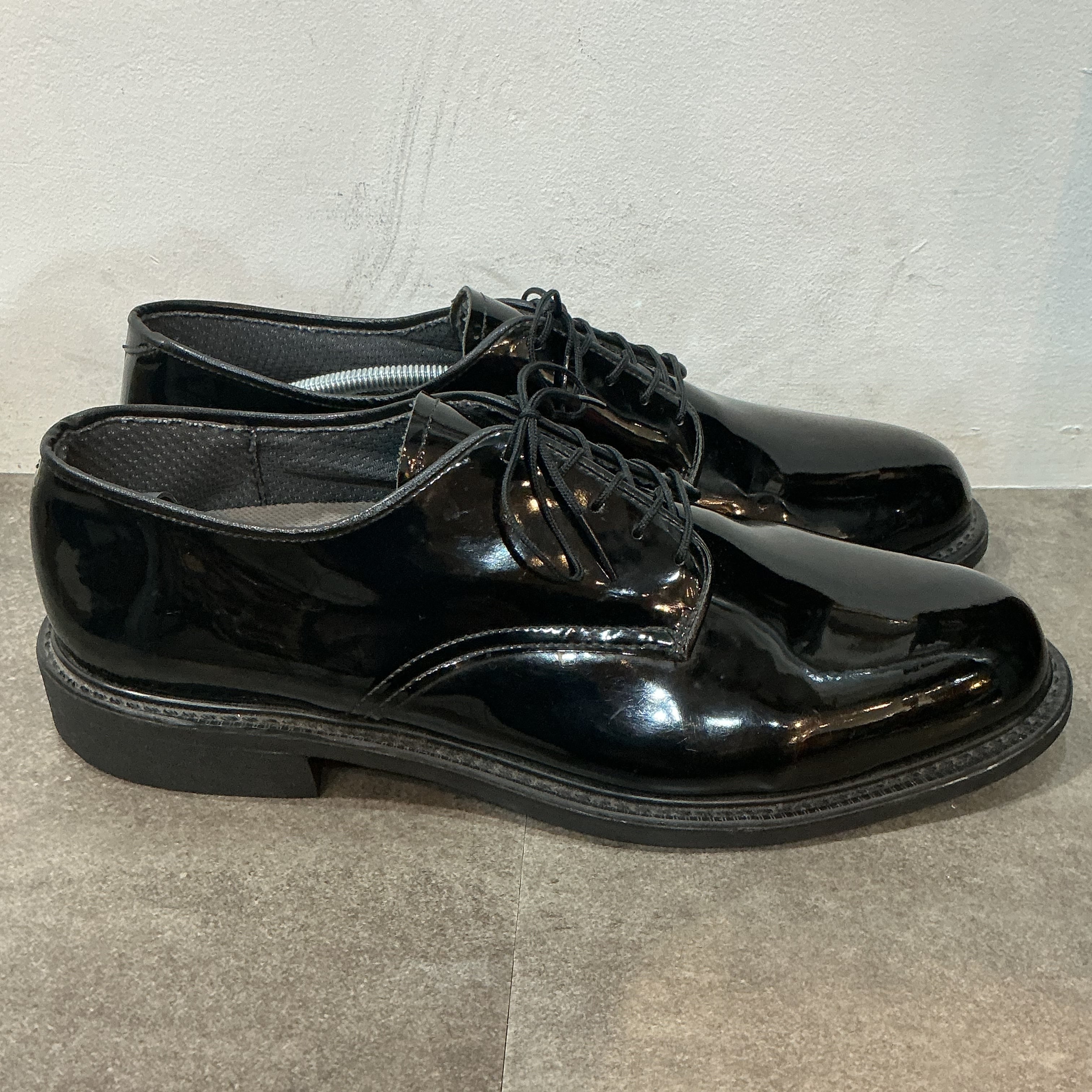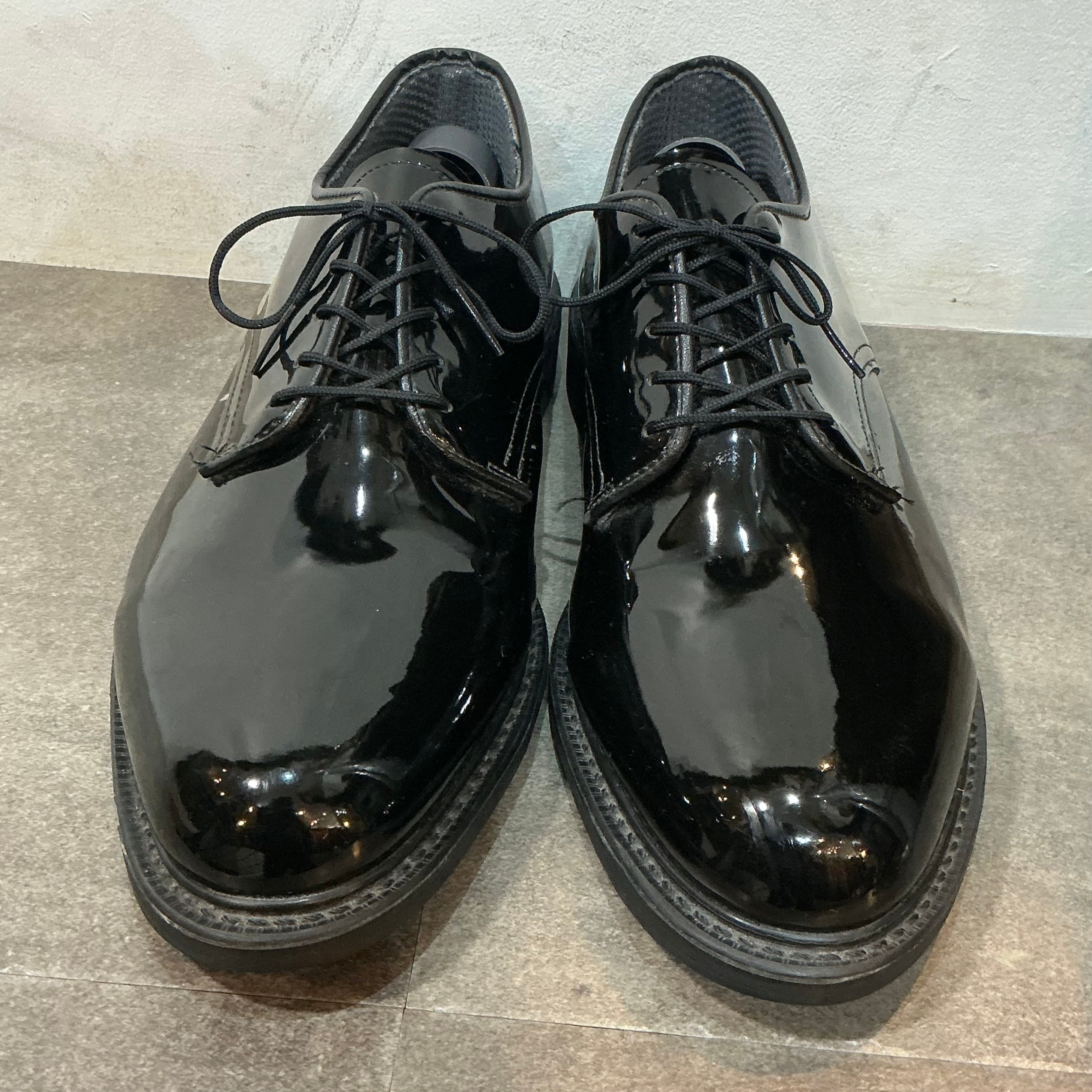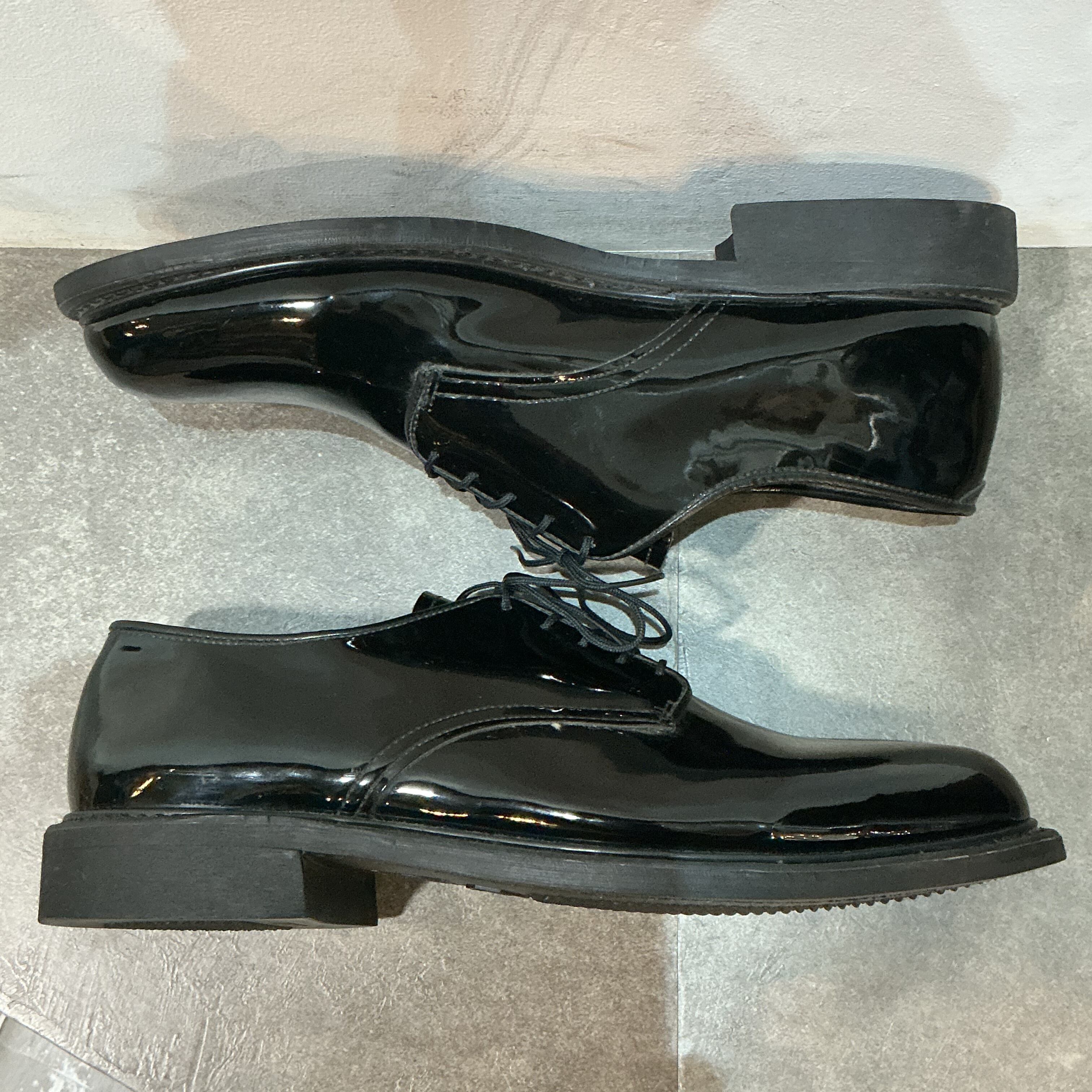 米軍(陸軍or海軍)のエナメルのサービスシューズになります。アッパーはエナメル加工された光沢のあるパテントレザーで、アウトソールにはビブラムソールが仕様されています。