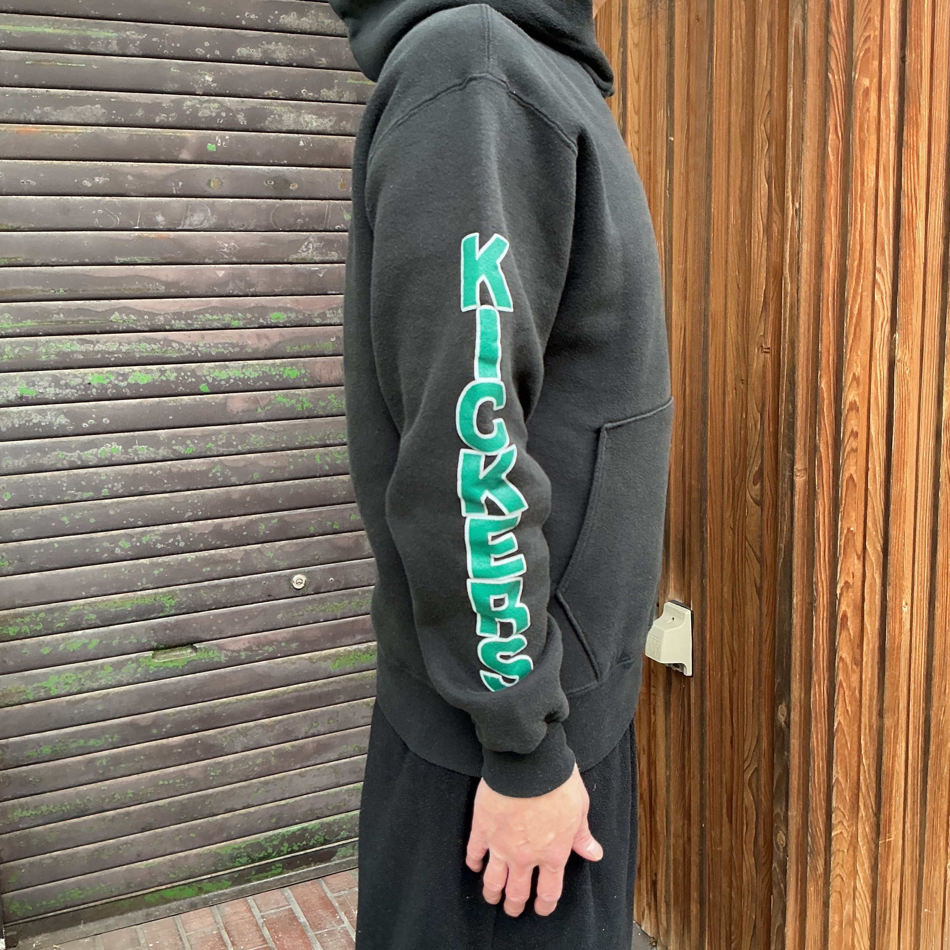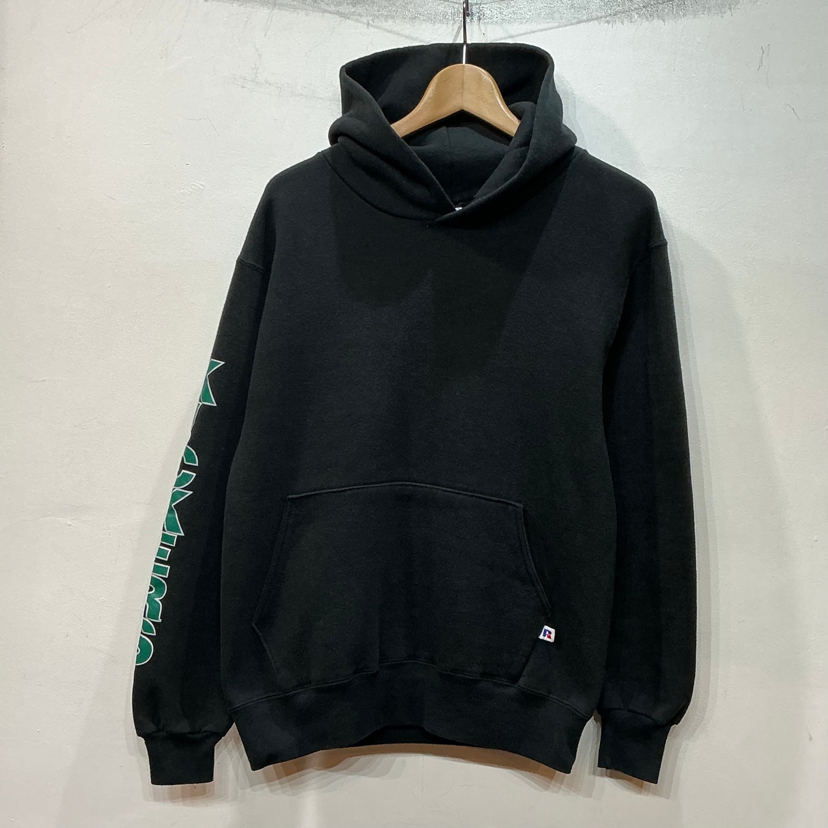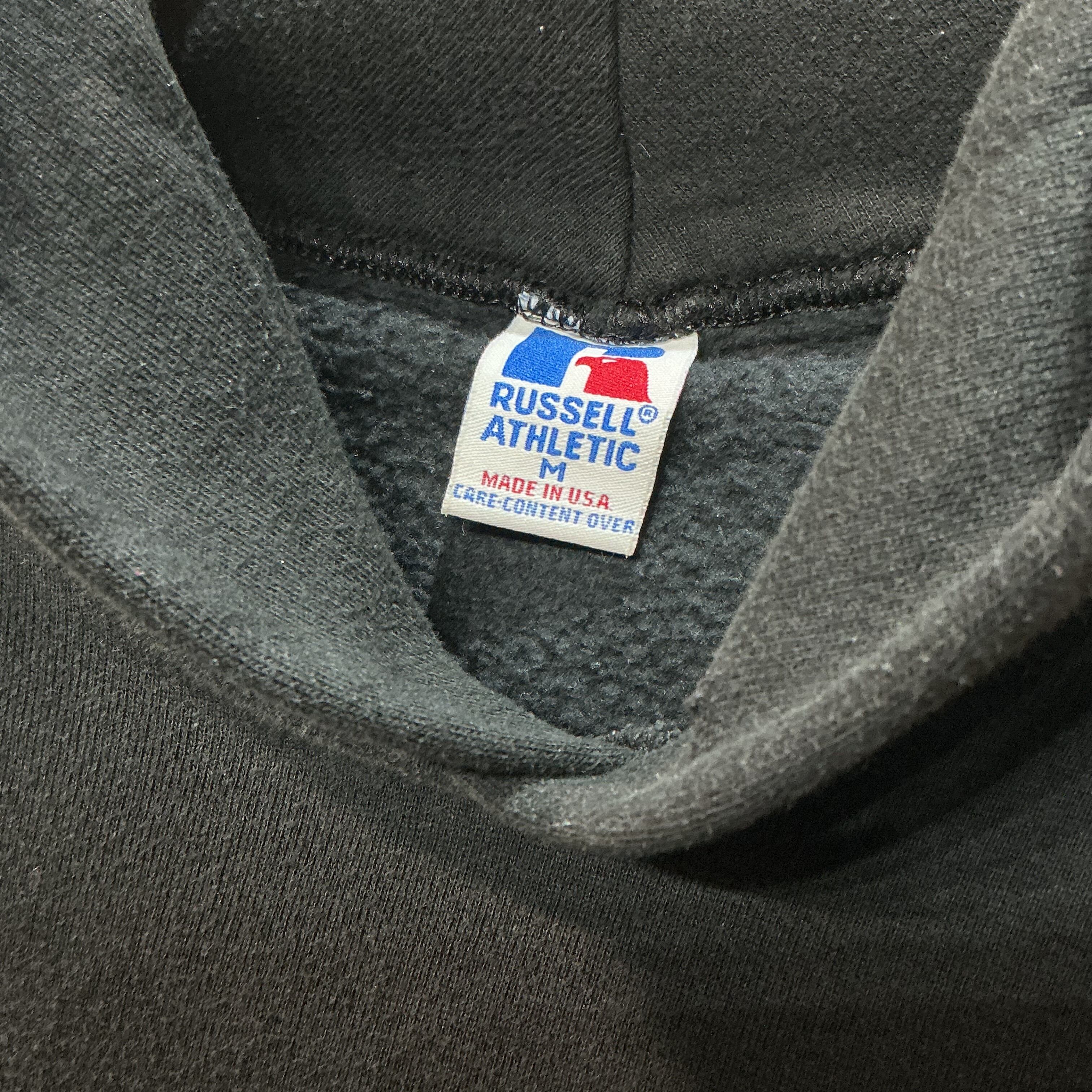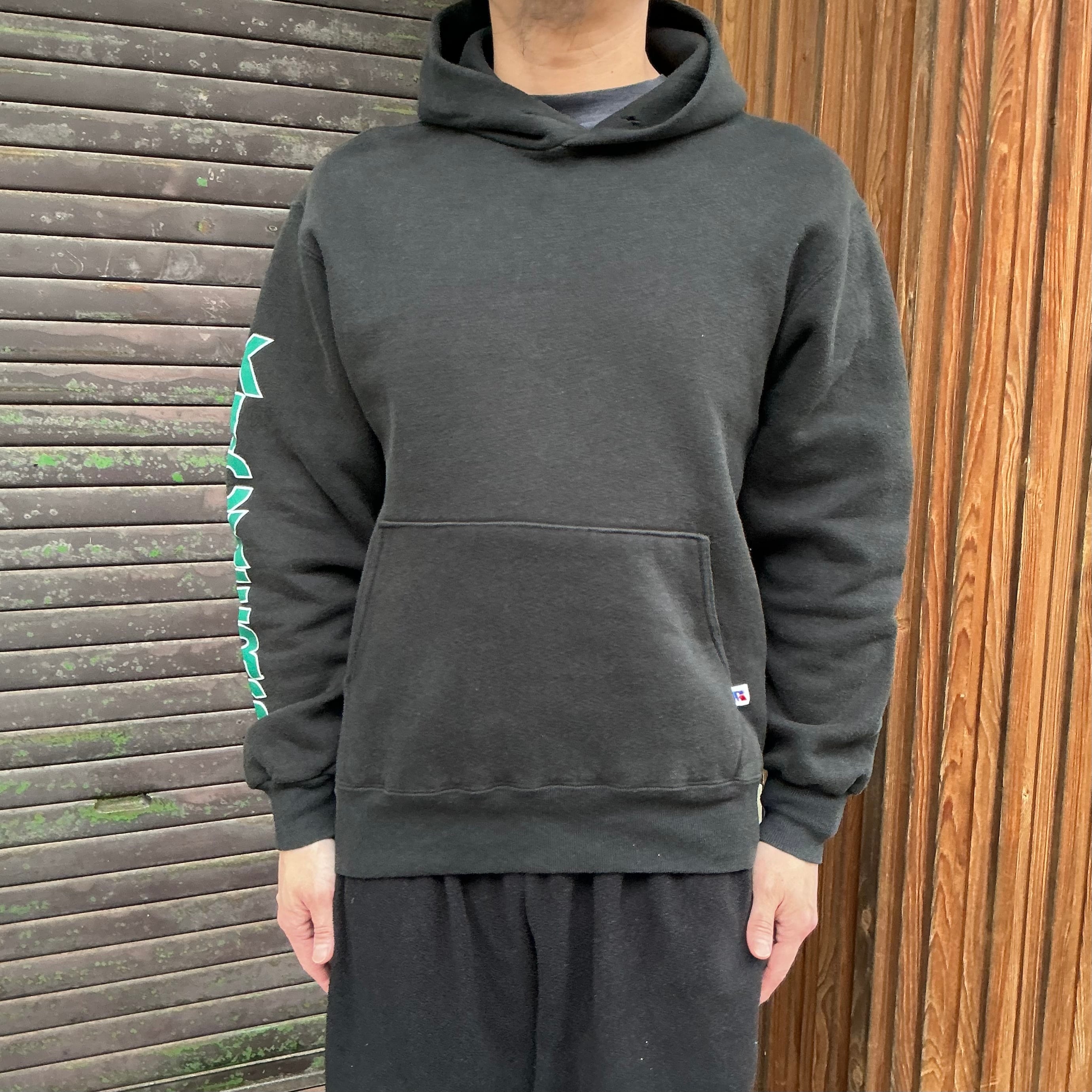90’s USA製 RUSSELL ラッセル スウェット パーカー フーディー 袖プリント メンズXL 無地スウェット ヴィンテージ 古着 【25AWSW】 gr-1418