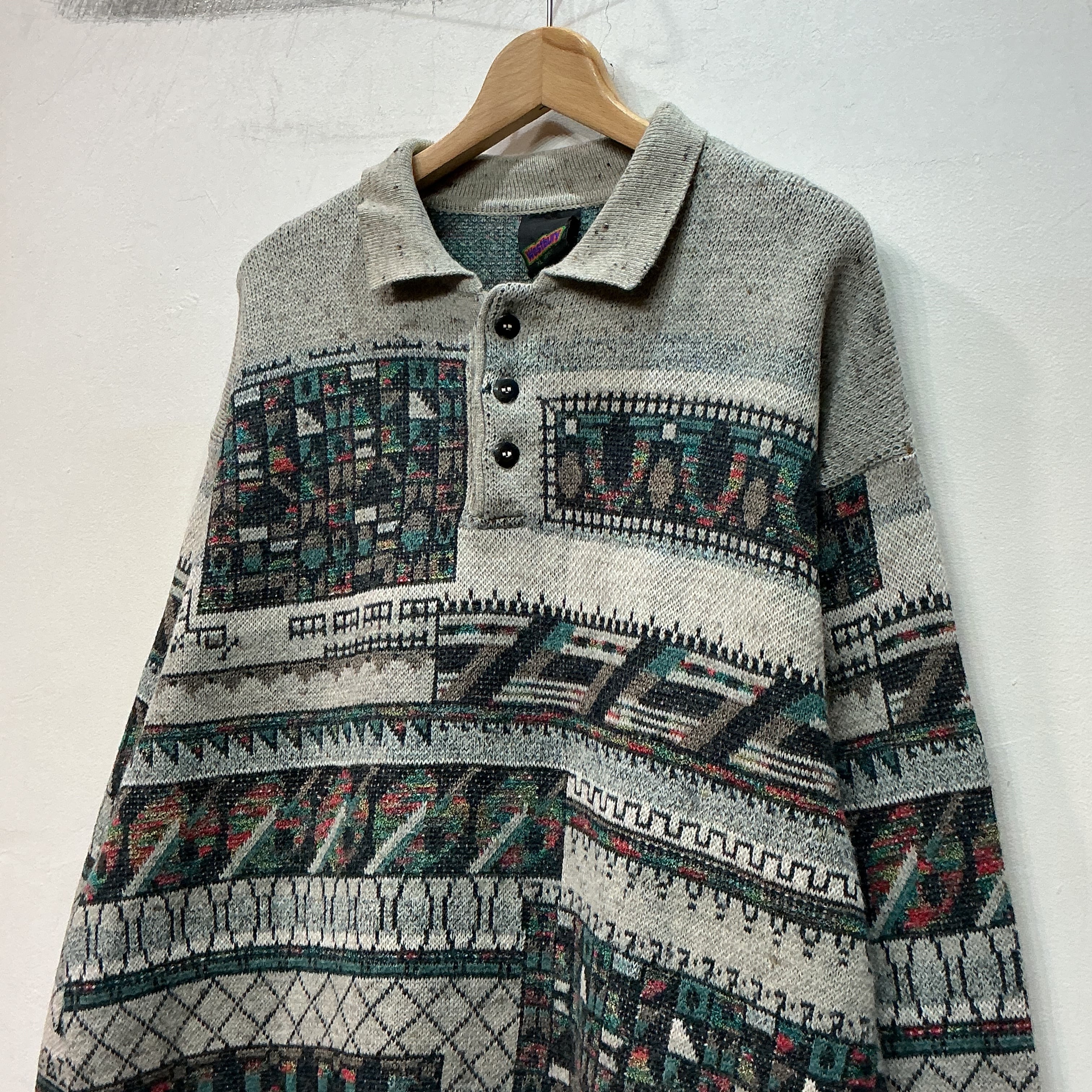 Westbury ニットポロ 柄ニット デザインニット ヴィンテージ 古着 【25AWKT】 gr-1428
