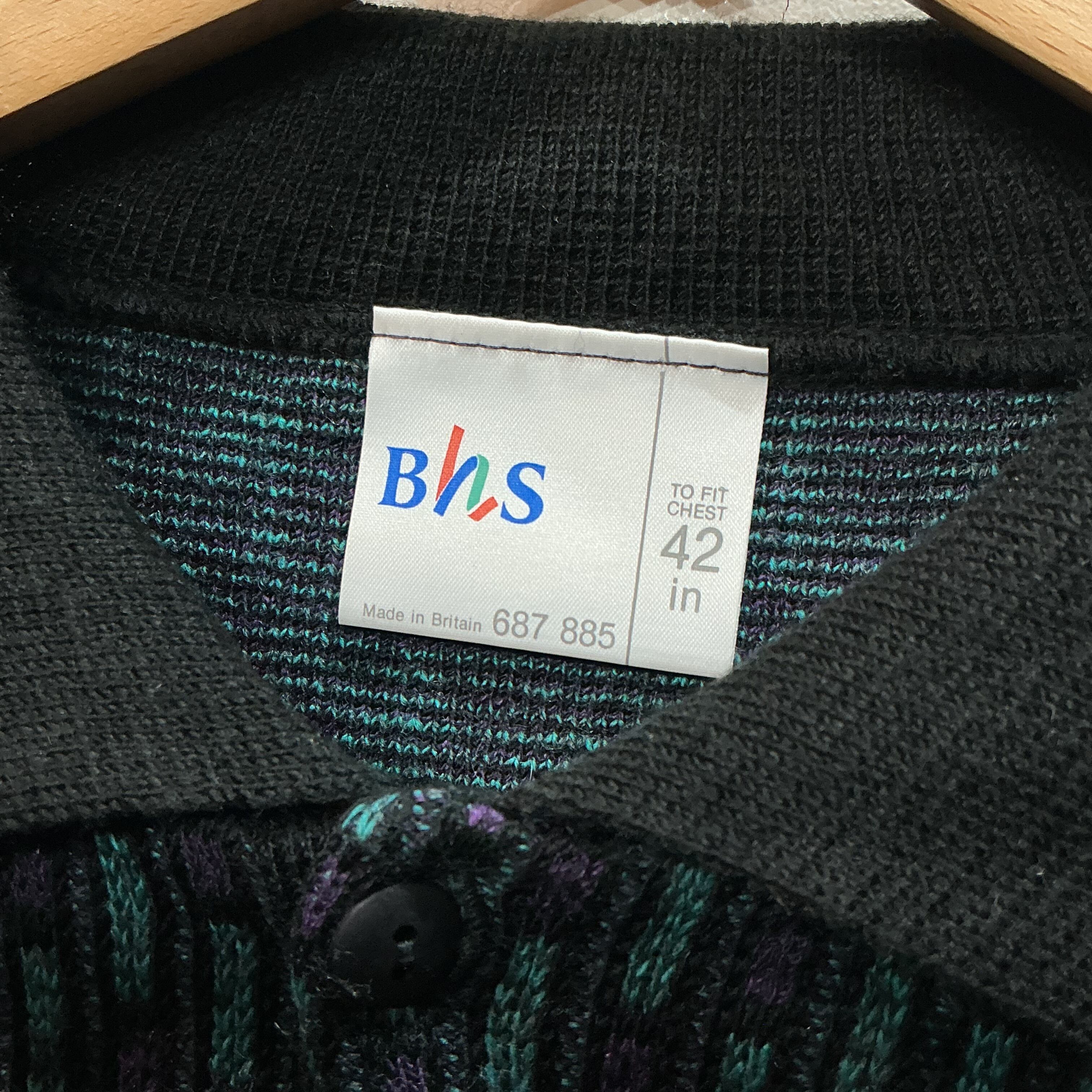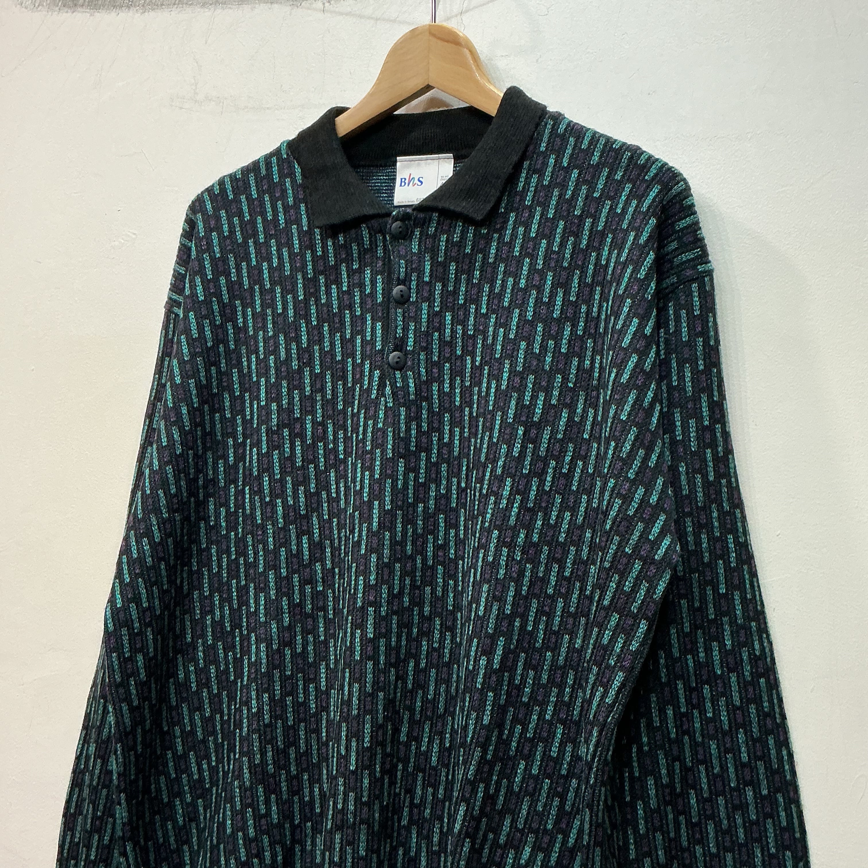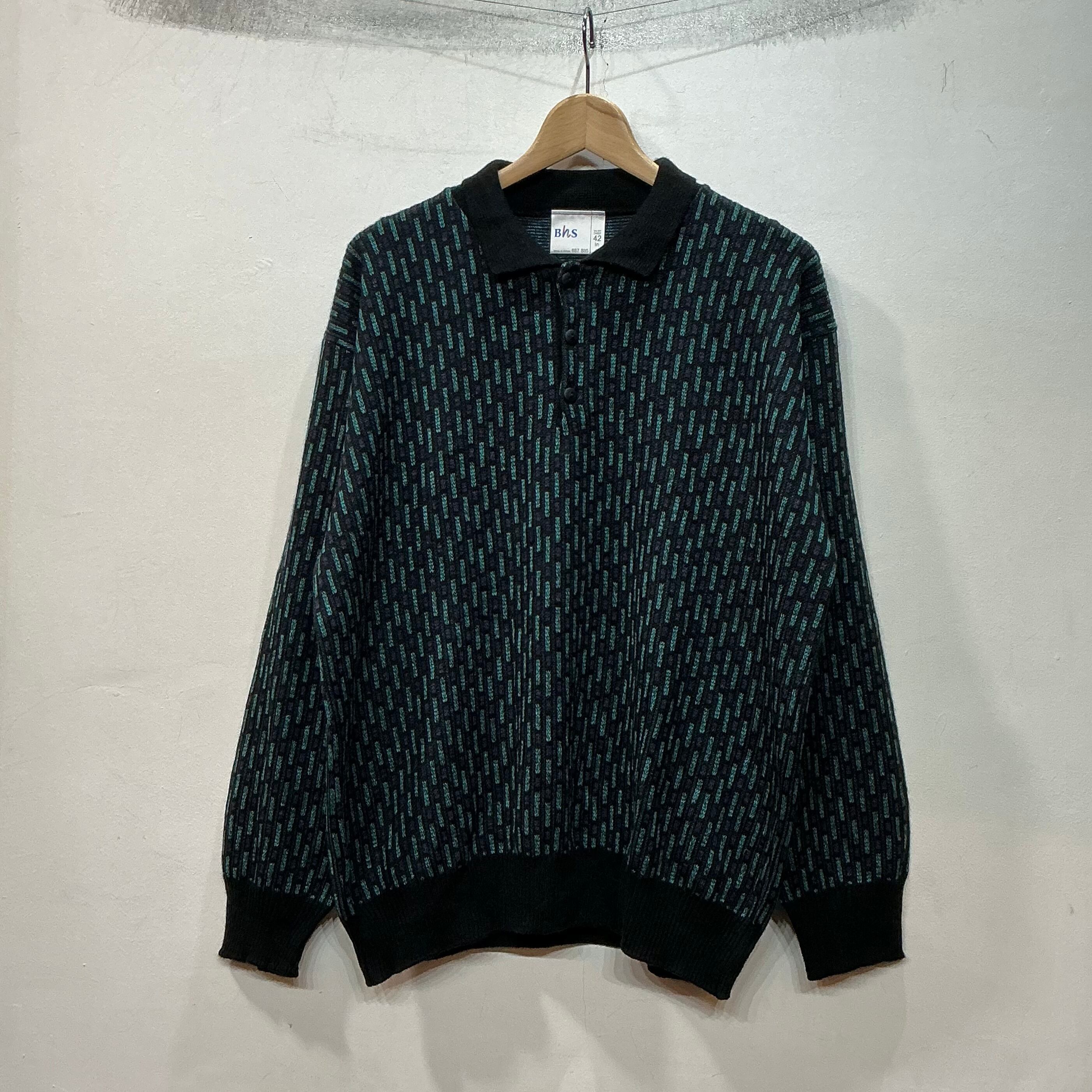 BHS ニットポロ 柄ニット デザインニット ヴィンテージ 古着 【25AWKT】 gr-1430