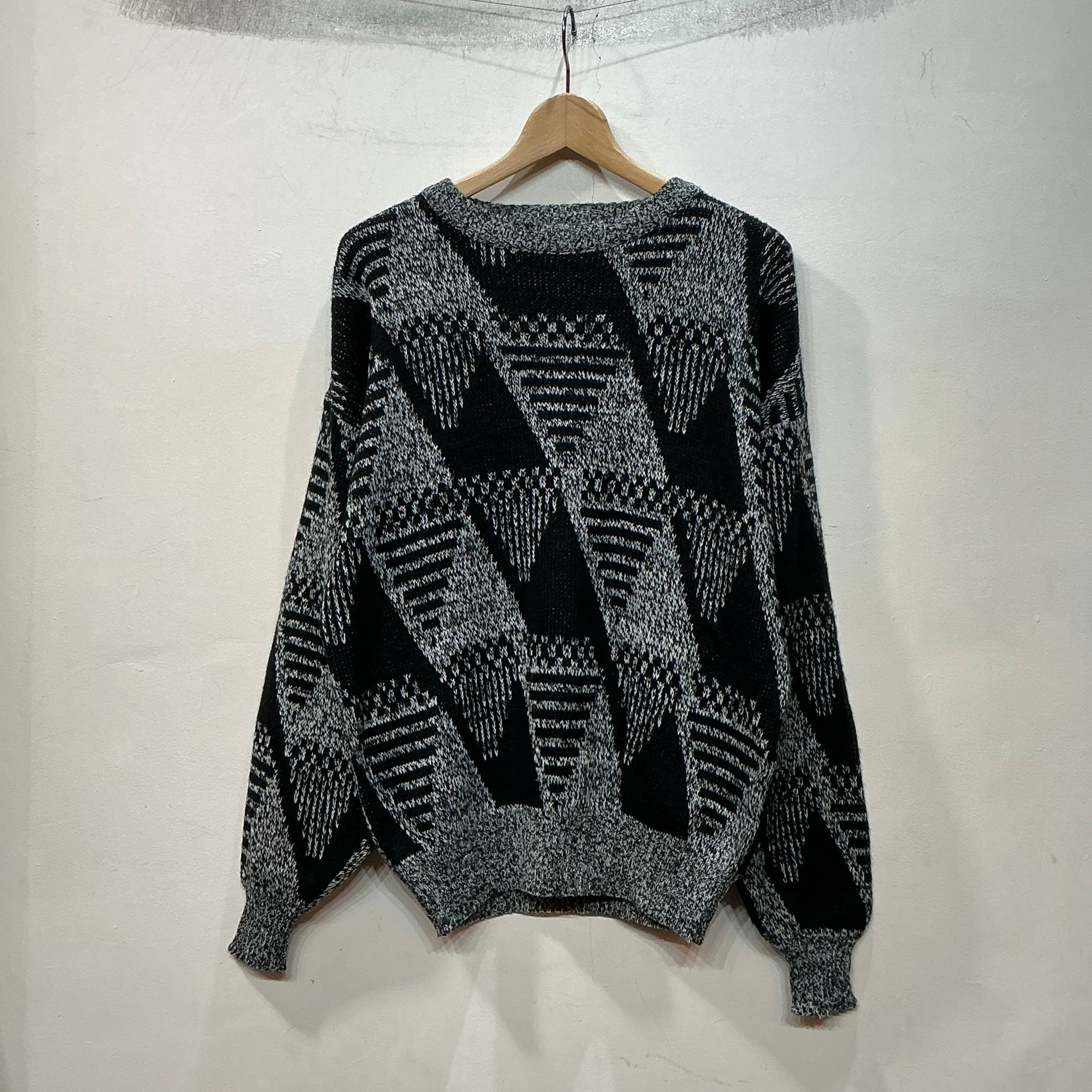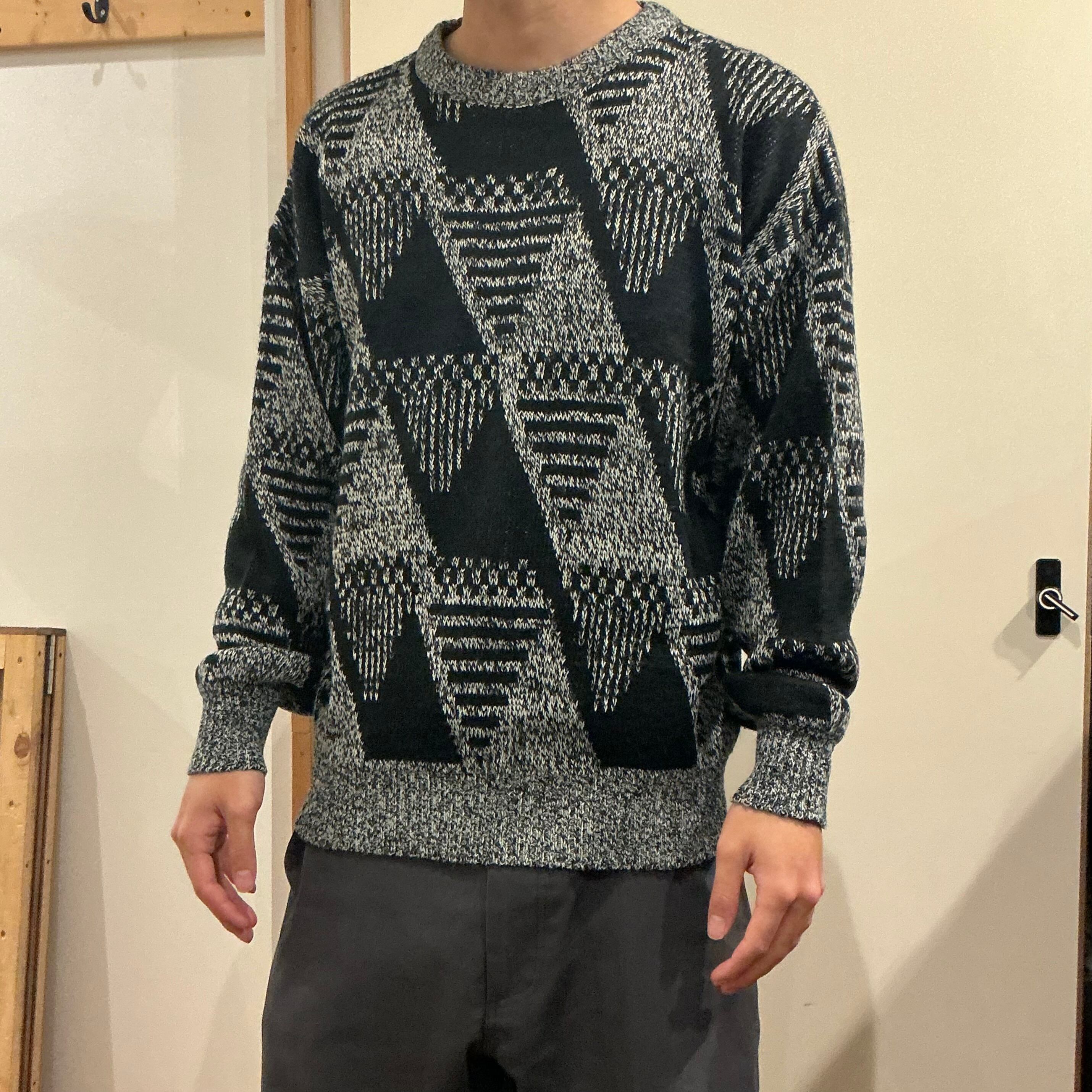 柄ニット デザインニット ジオメトリック柄 幾何学柄 アクリルニット ヴィンテージ 古着 【25AWKT】 gr-1449