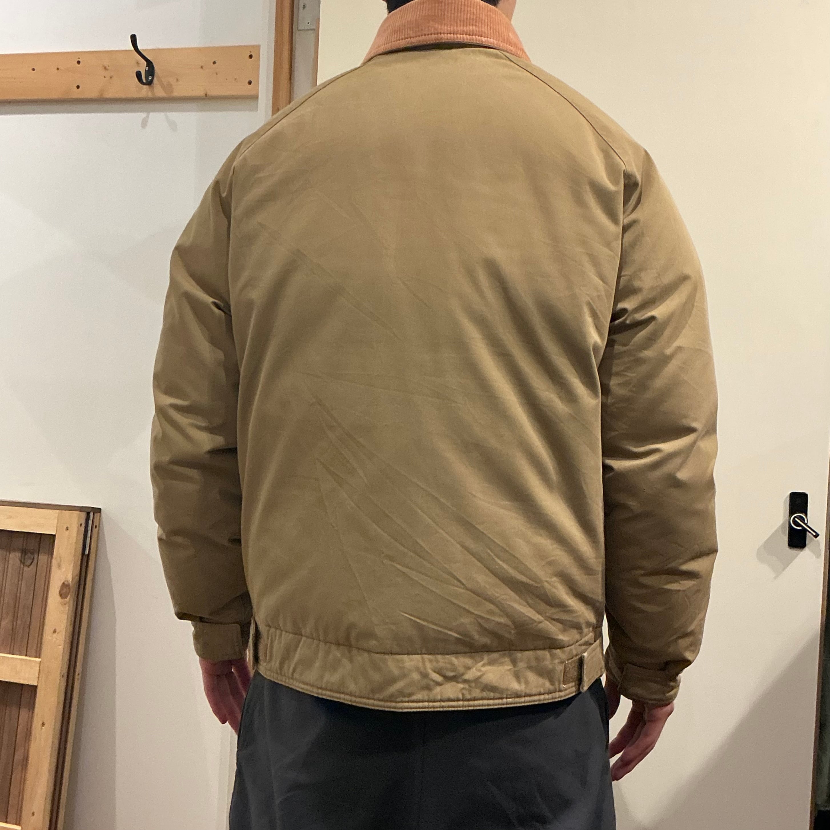 何でも合うベージュ系で無骨だけどシルエットは比較的すっきり。防寒性のあるアウターです。