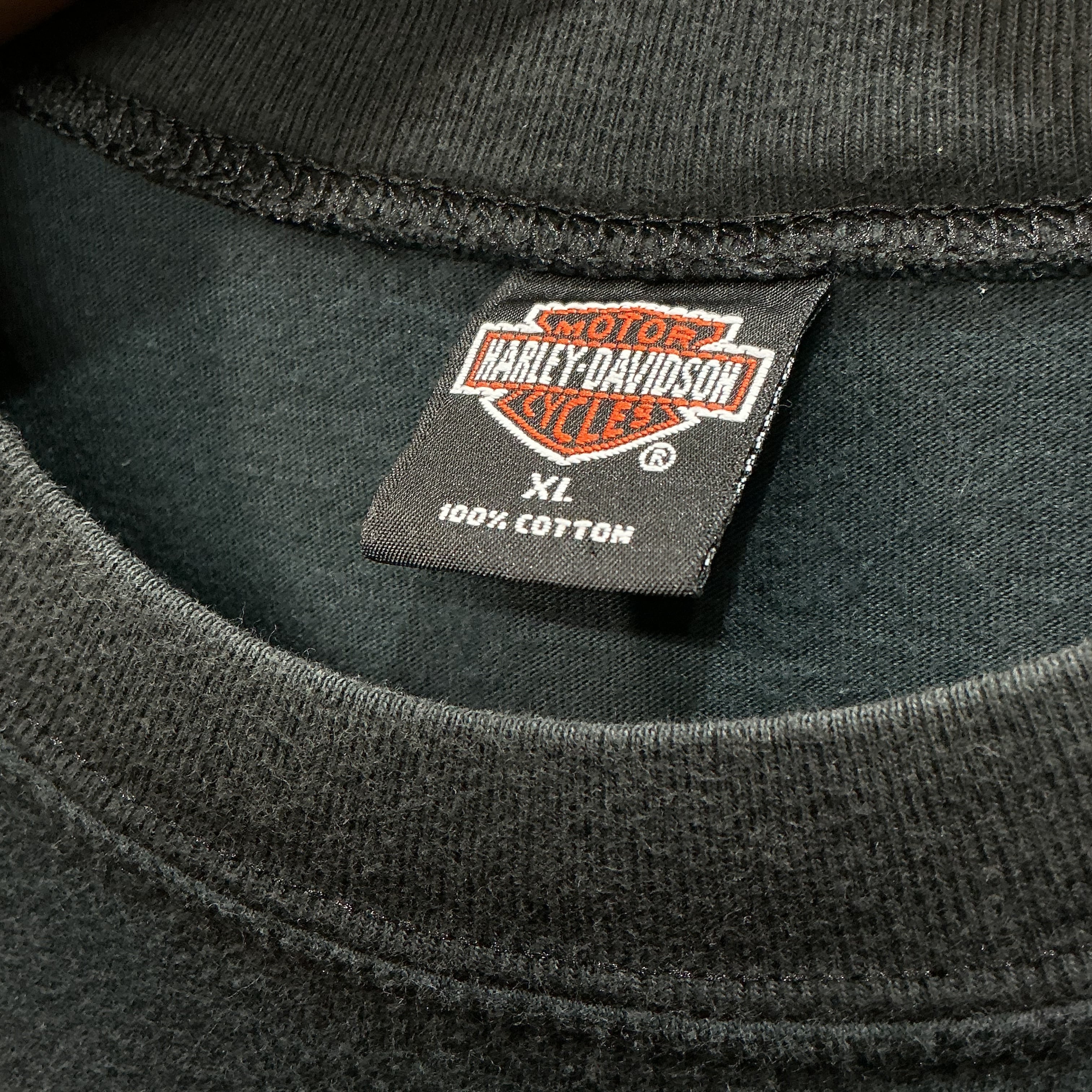 ‘99 Harley-Davidson ハーレーダビッドソン 半袖Tシャツ 黒Tシャツ バイク ハーレーT バイクT バイカーT 両面プリント プリントTシャツ ヴィンテージ 古着 【26SST】 gr-1479