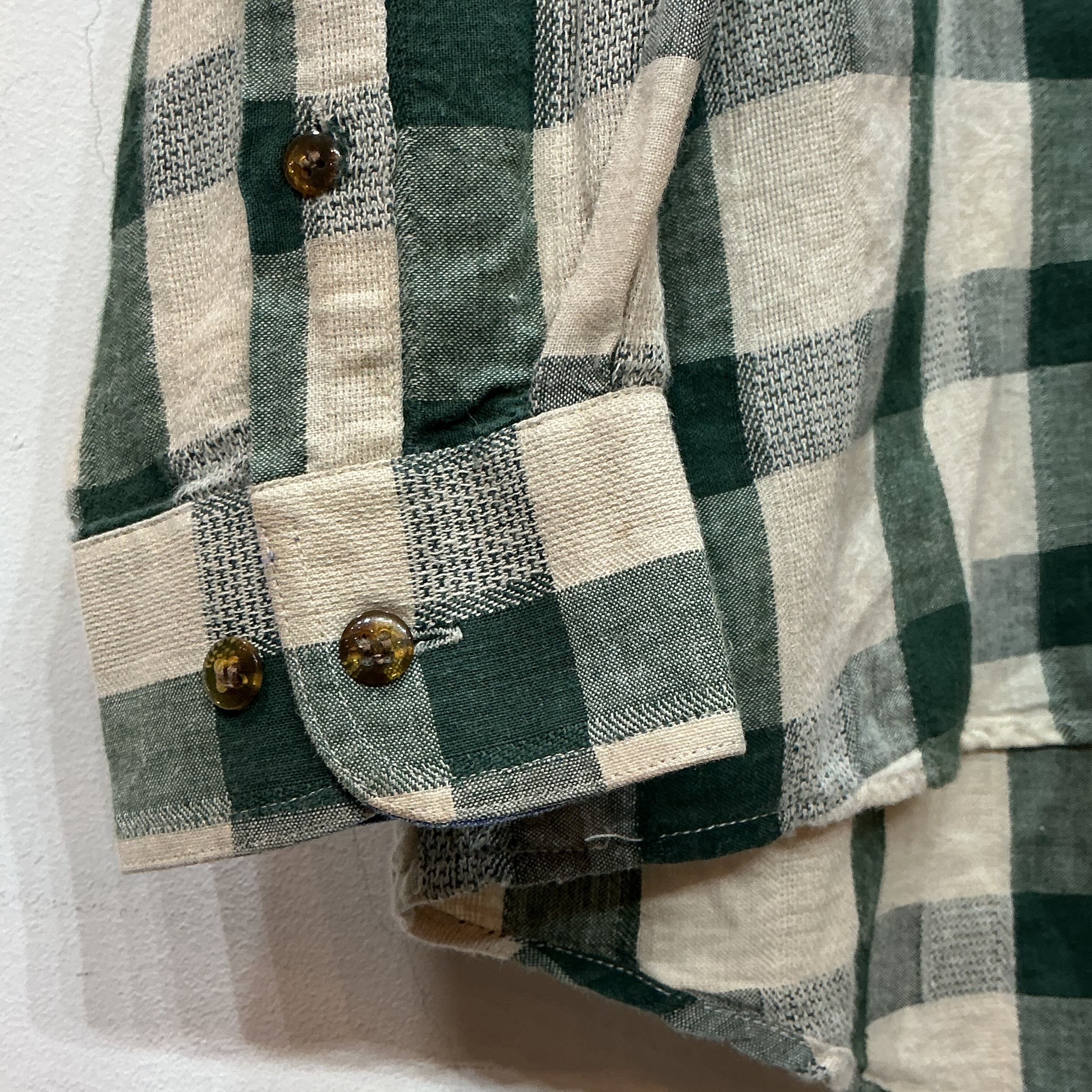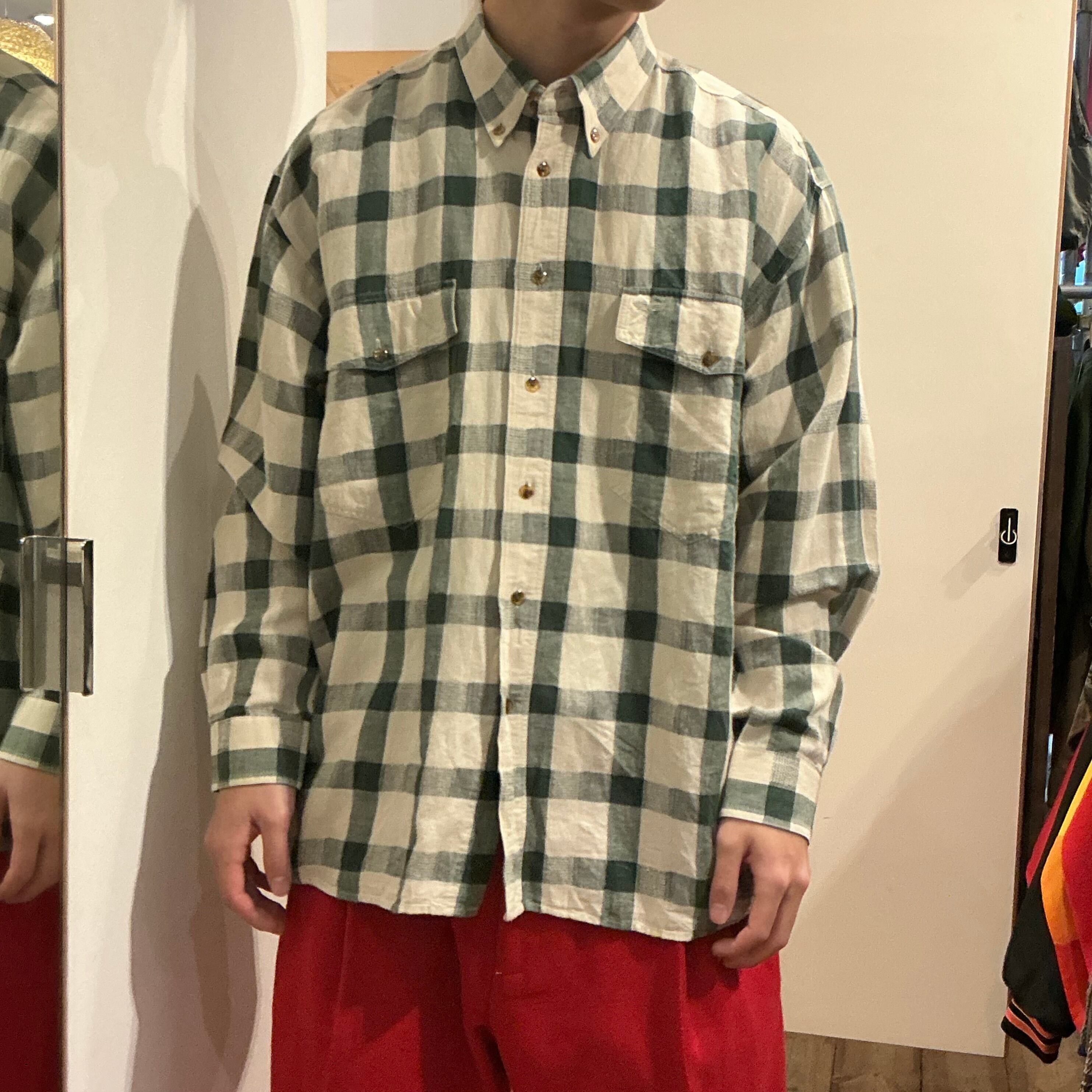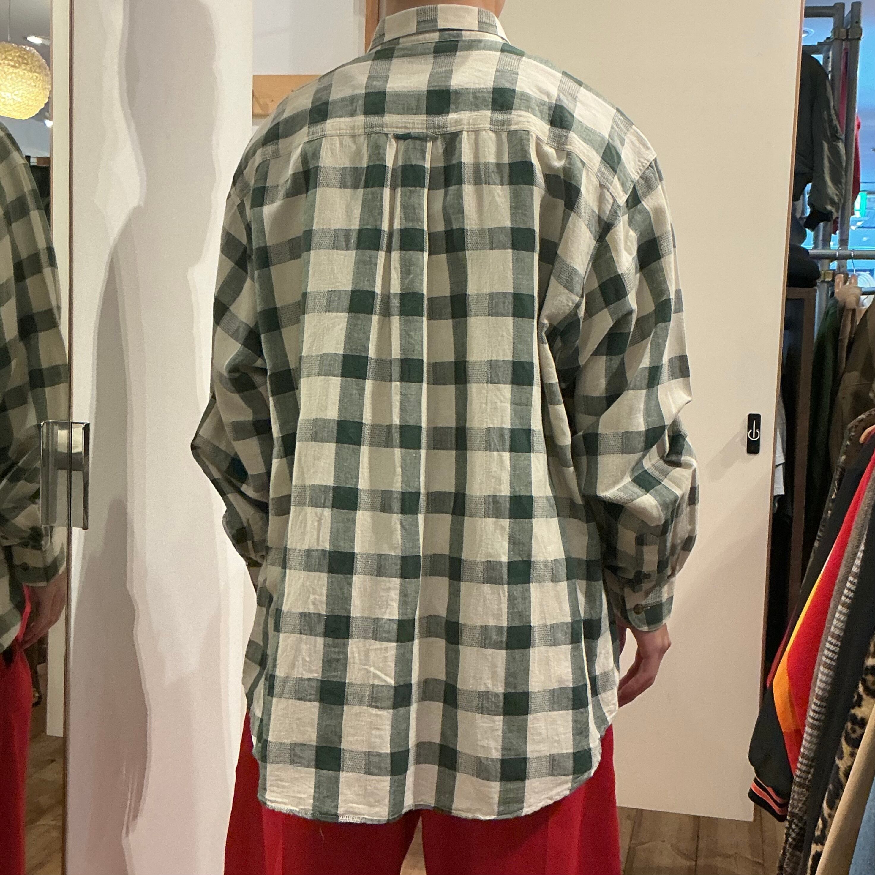 90年代 コットンリネン チェックシャツになります。気張ってない雰囲気のあるシャツです。
