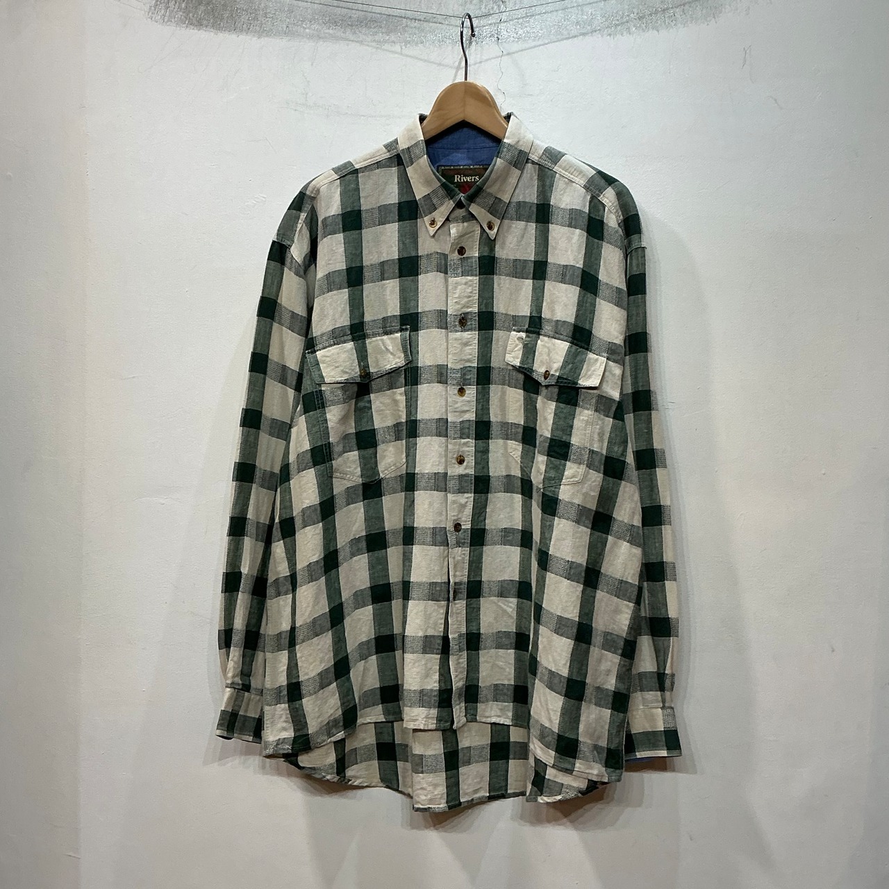 90’s Rivers 長袖シャツ チェックシャツ ボタンダウンシャツ コットンリネンシャツ 柄シャツ ヴィンテージ 古着 【26SSNS】 gr-1510