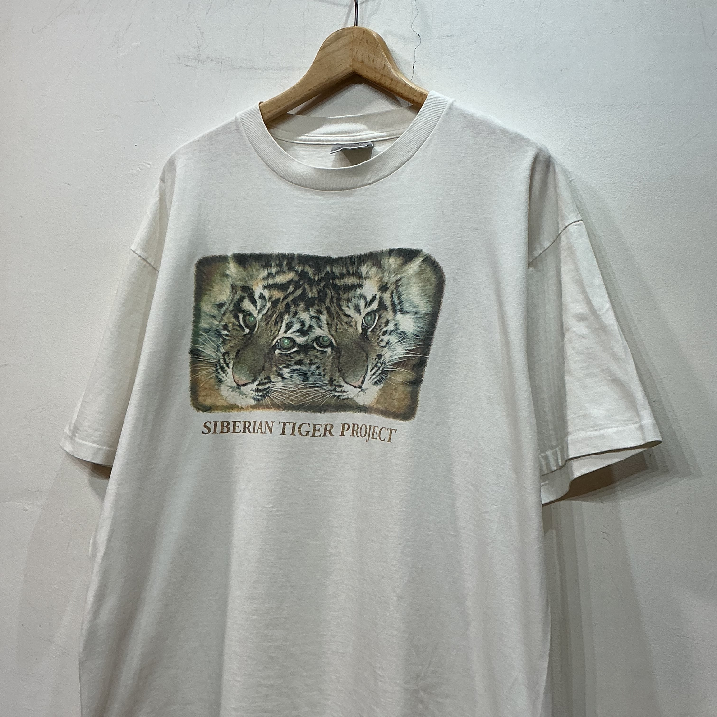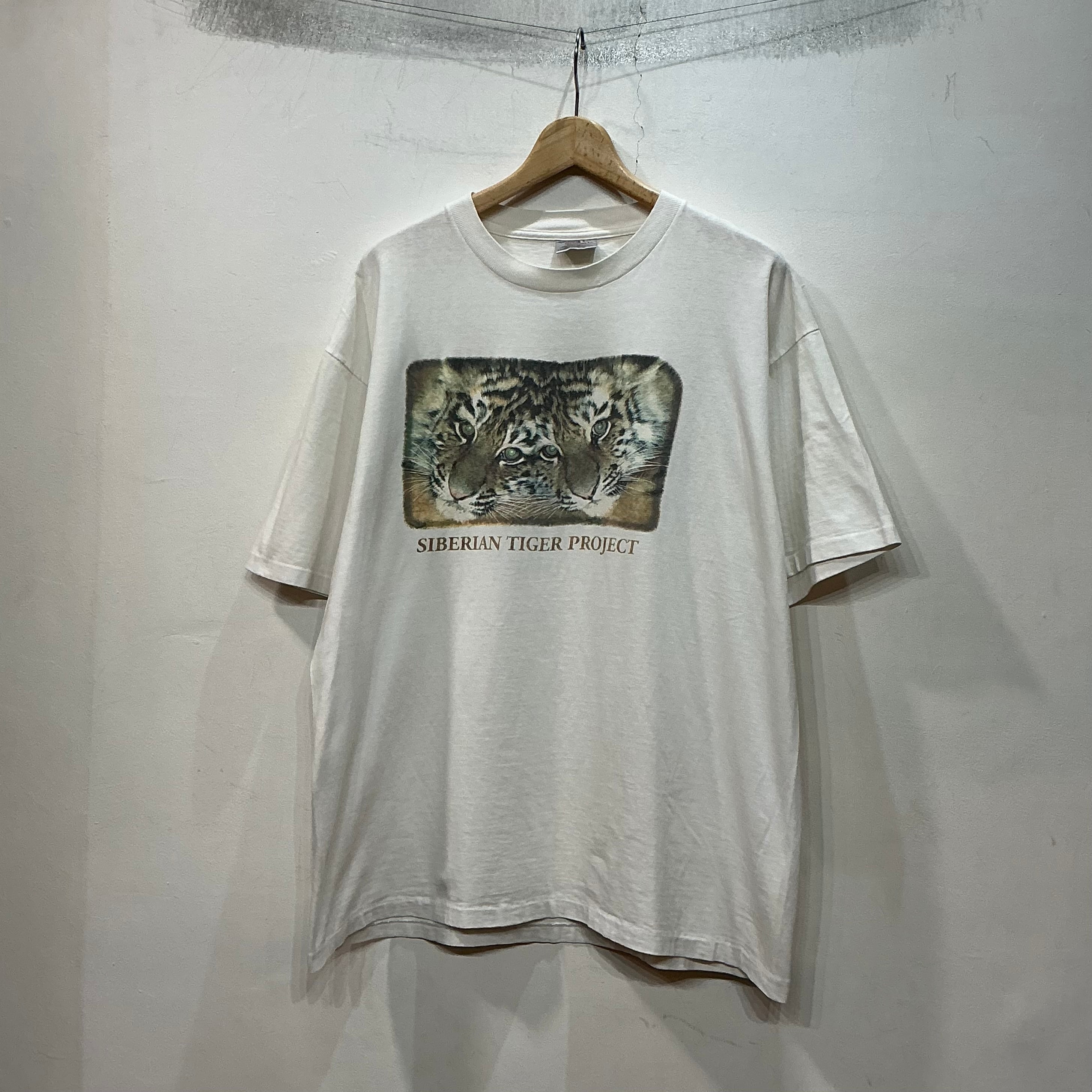 90’s USA製 ONEITA アニマルTシャツ 半袖Tシャツ プリントTシャツ 両面プリント 白Tシャツ シベリアンタイガー ヴィンテージ 古着 【26SST】 gr-1558