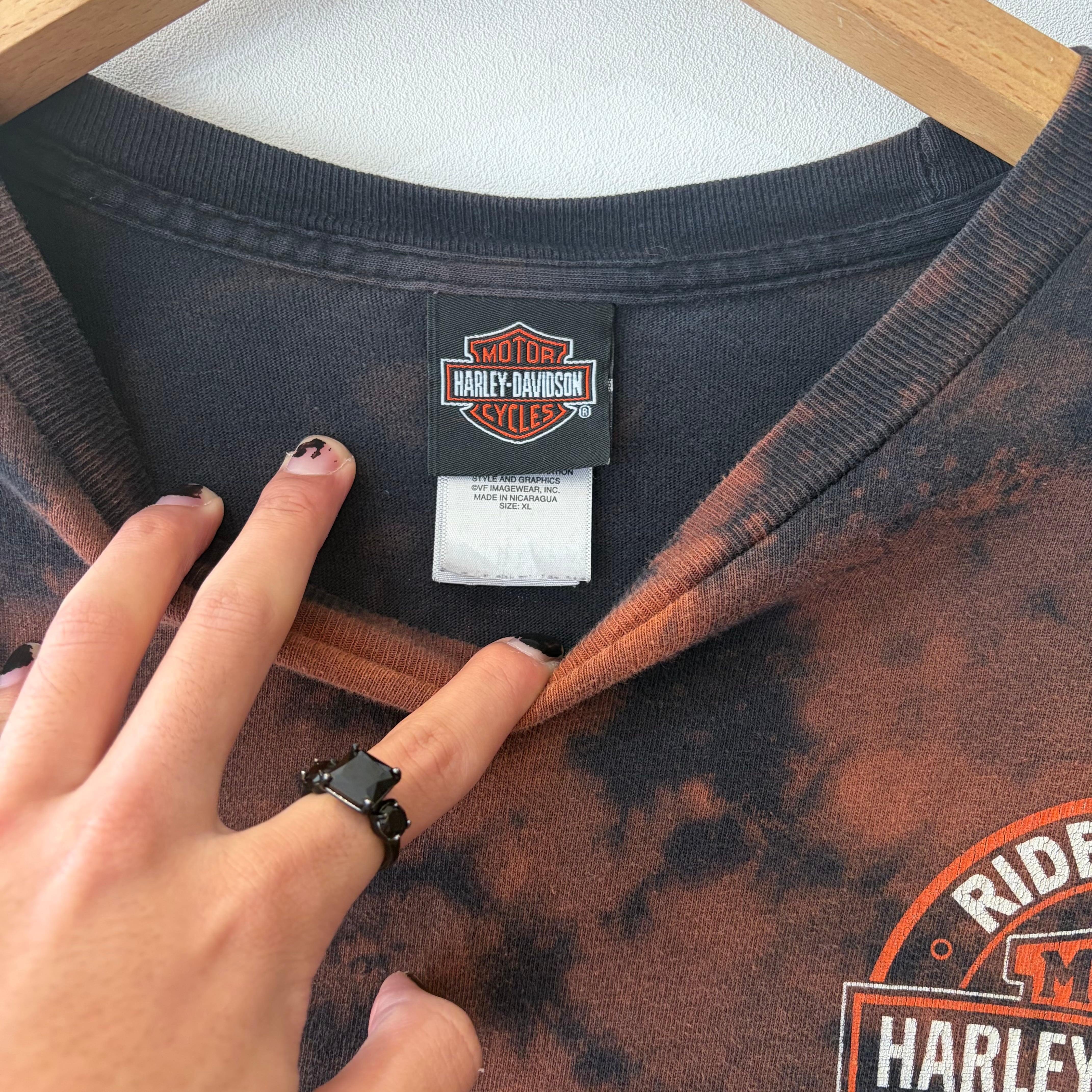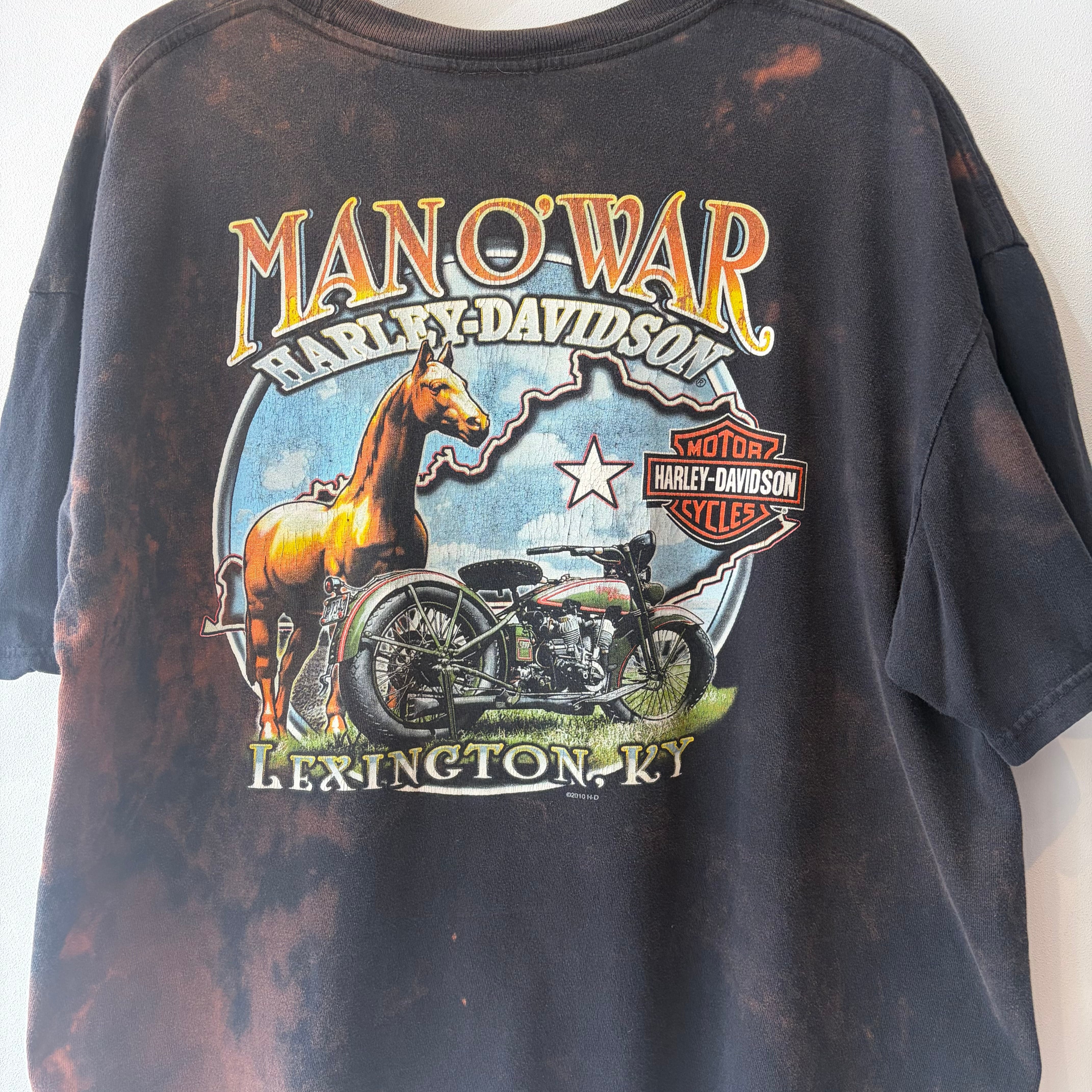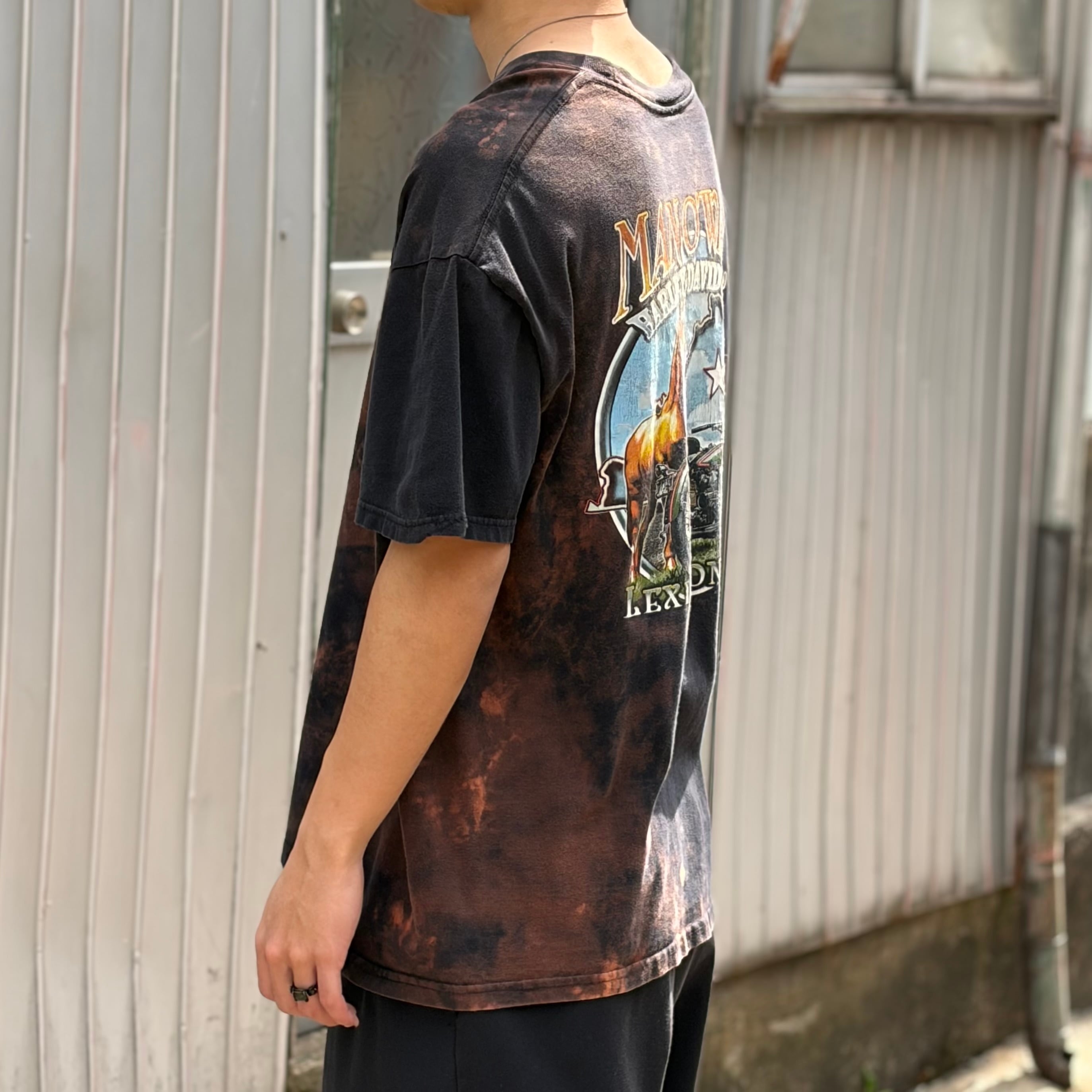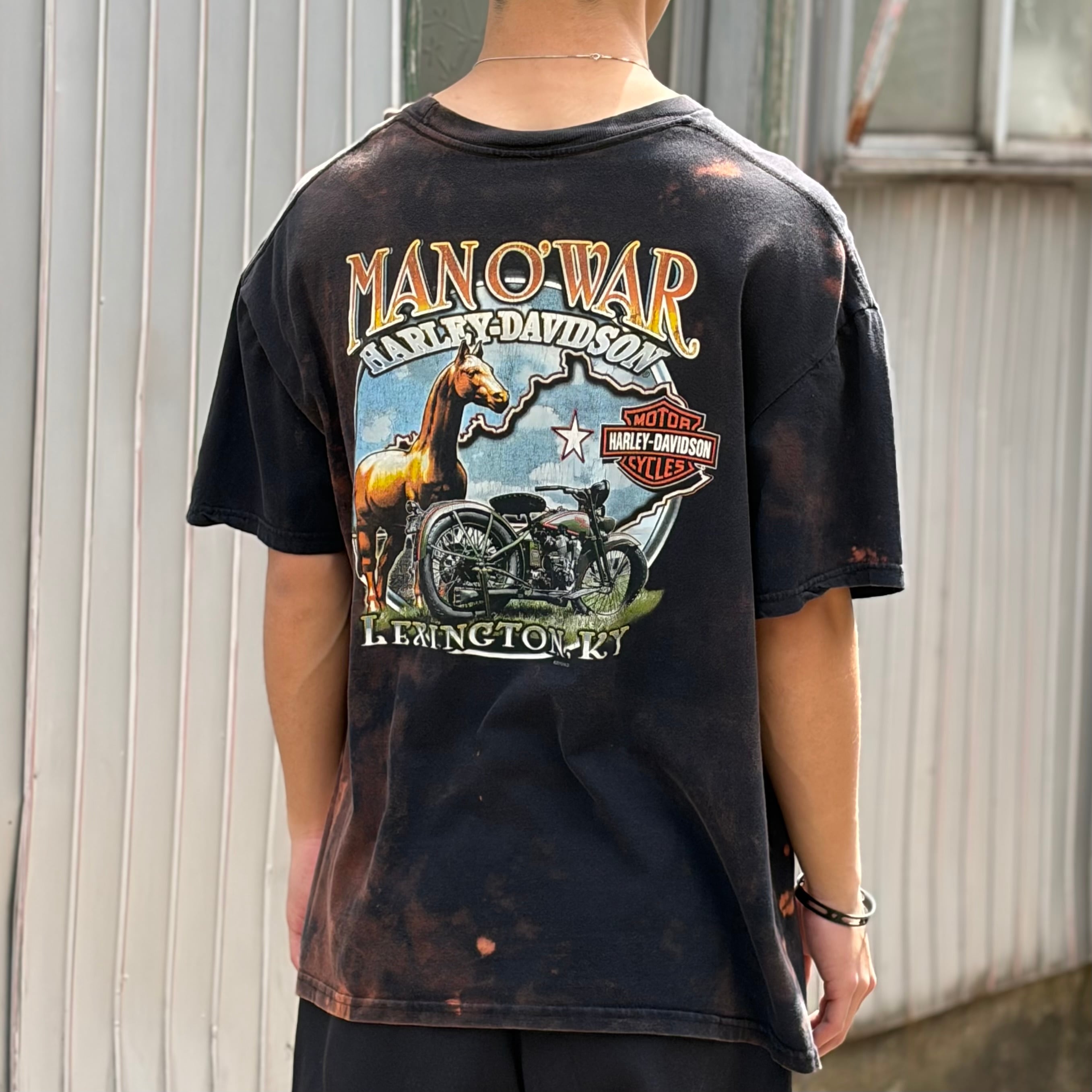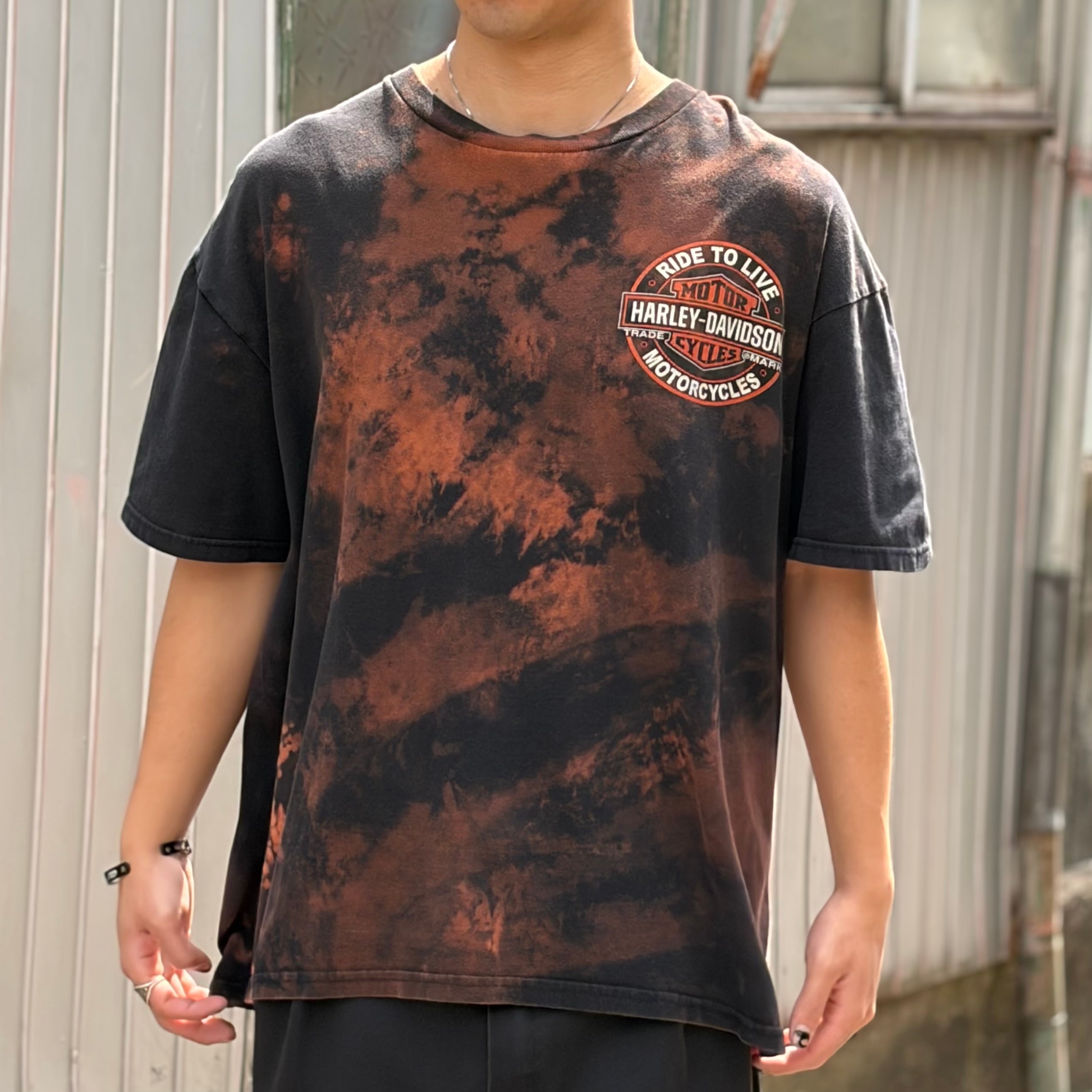 ハーレーダビッドソンのTシャツになります。全体にかけてブリーチが施されており、インパクトかつ雰囲気のある1着。
