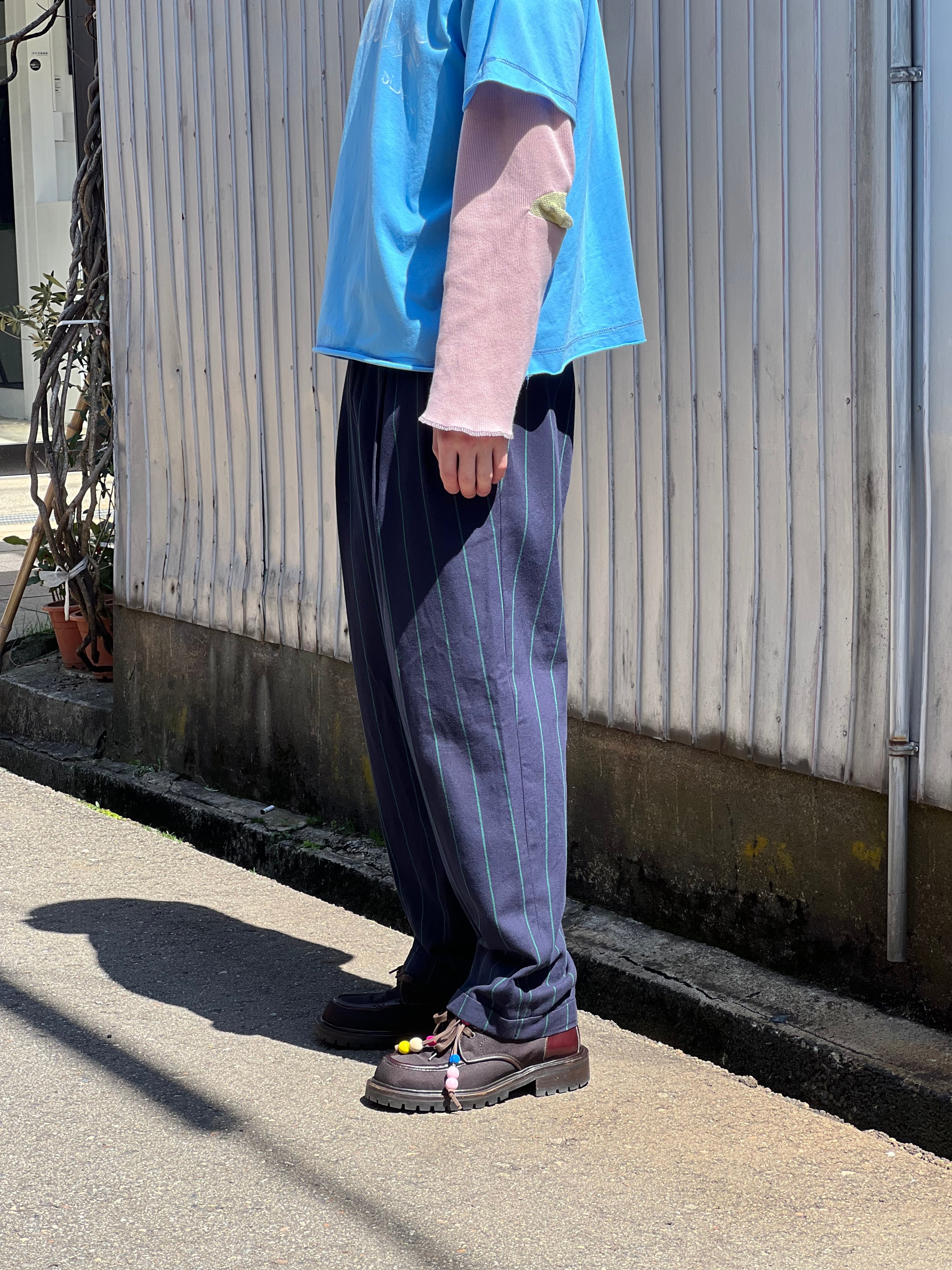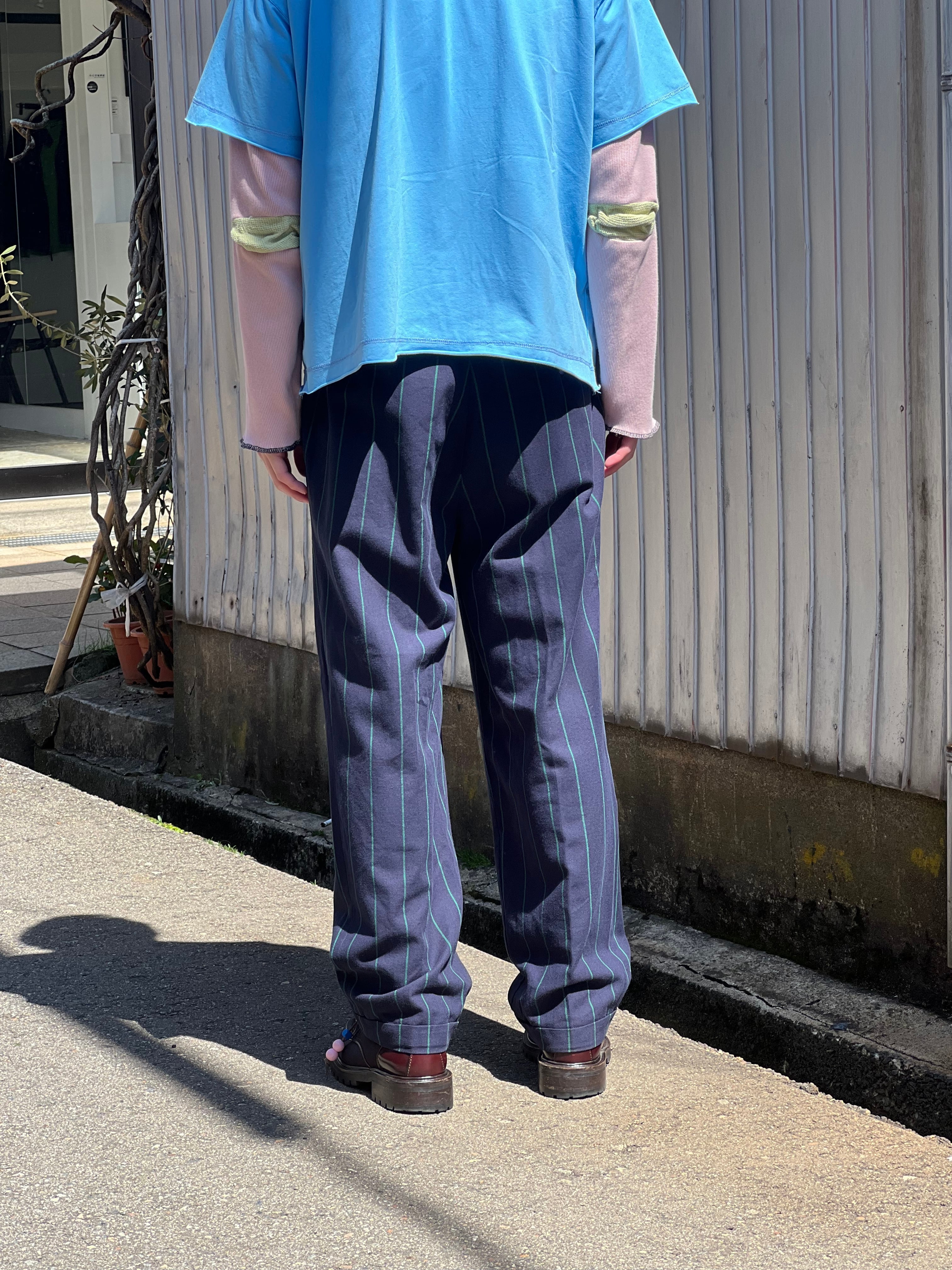 ストライプ柄でカジュアルにもクラシックにも触れるパンツです。