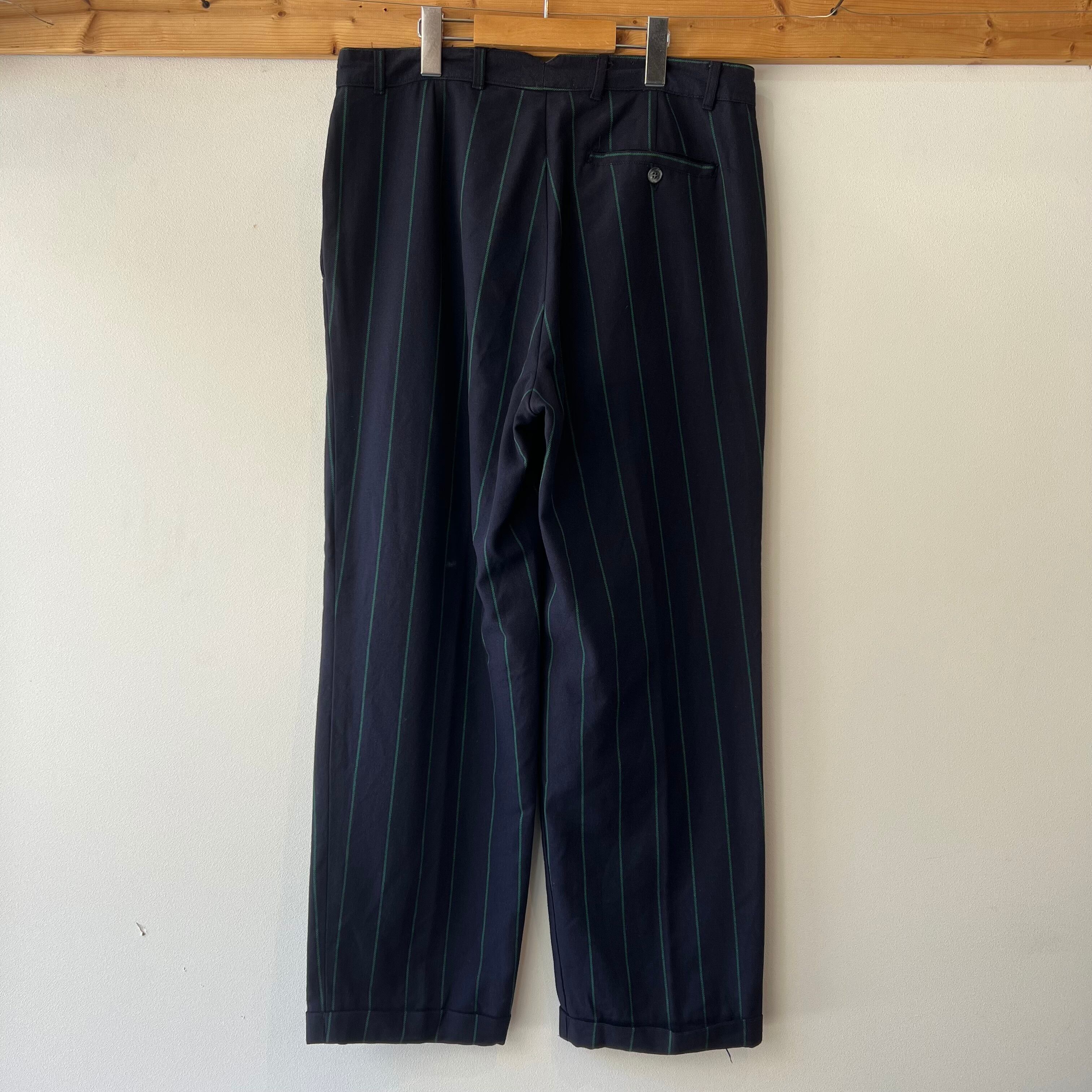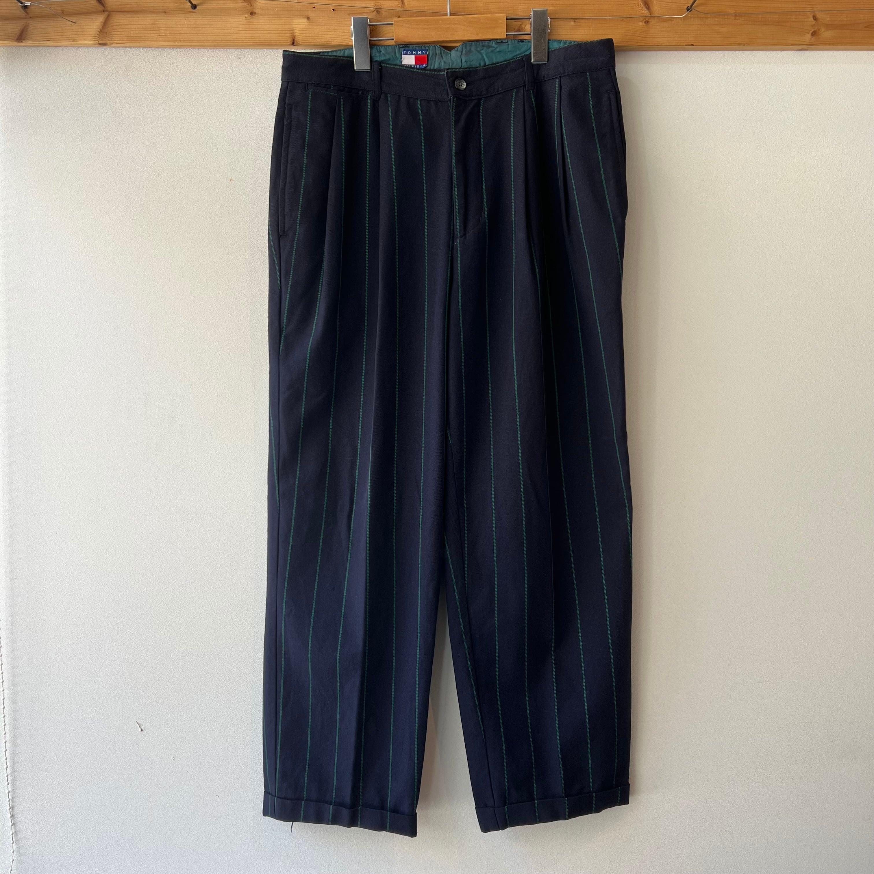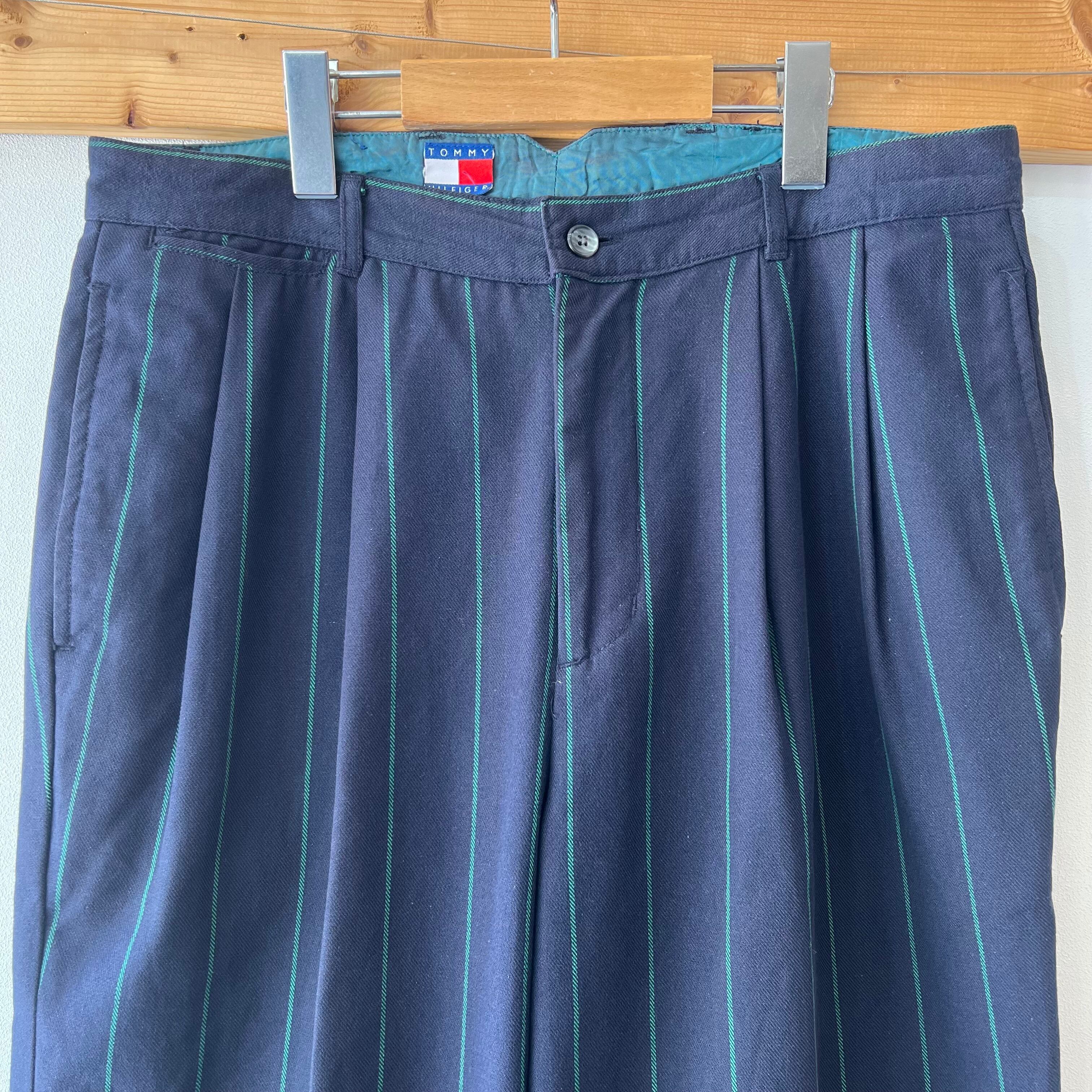 80‘s Tommy Hilfiger ストライプスラックス メンズW33 ネイビー トミーヒルフィガー 古着 ヴィンテージ gr-1641【26SSP】