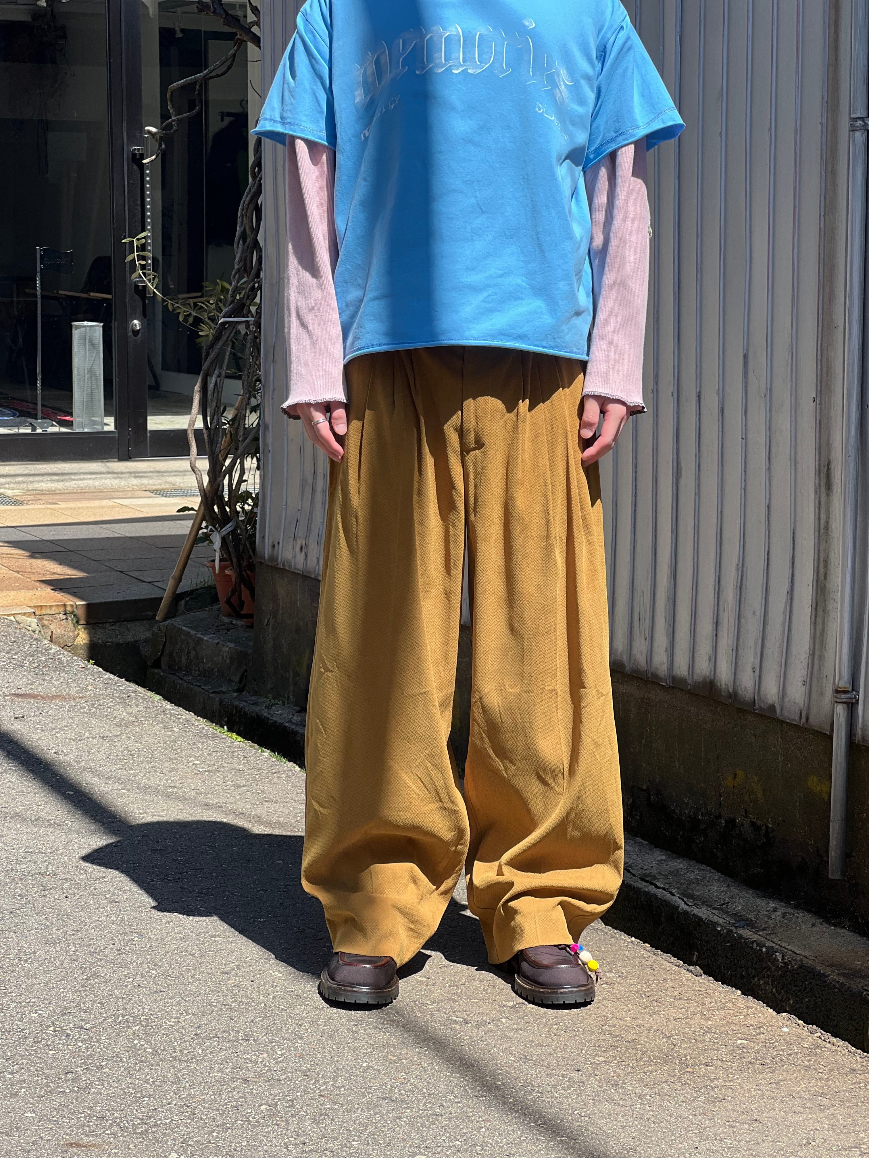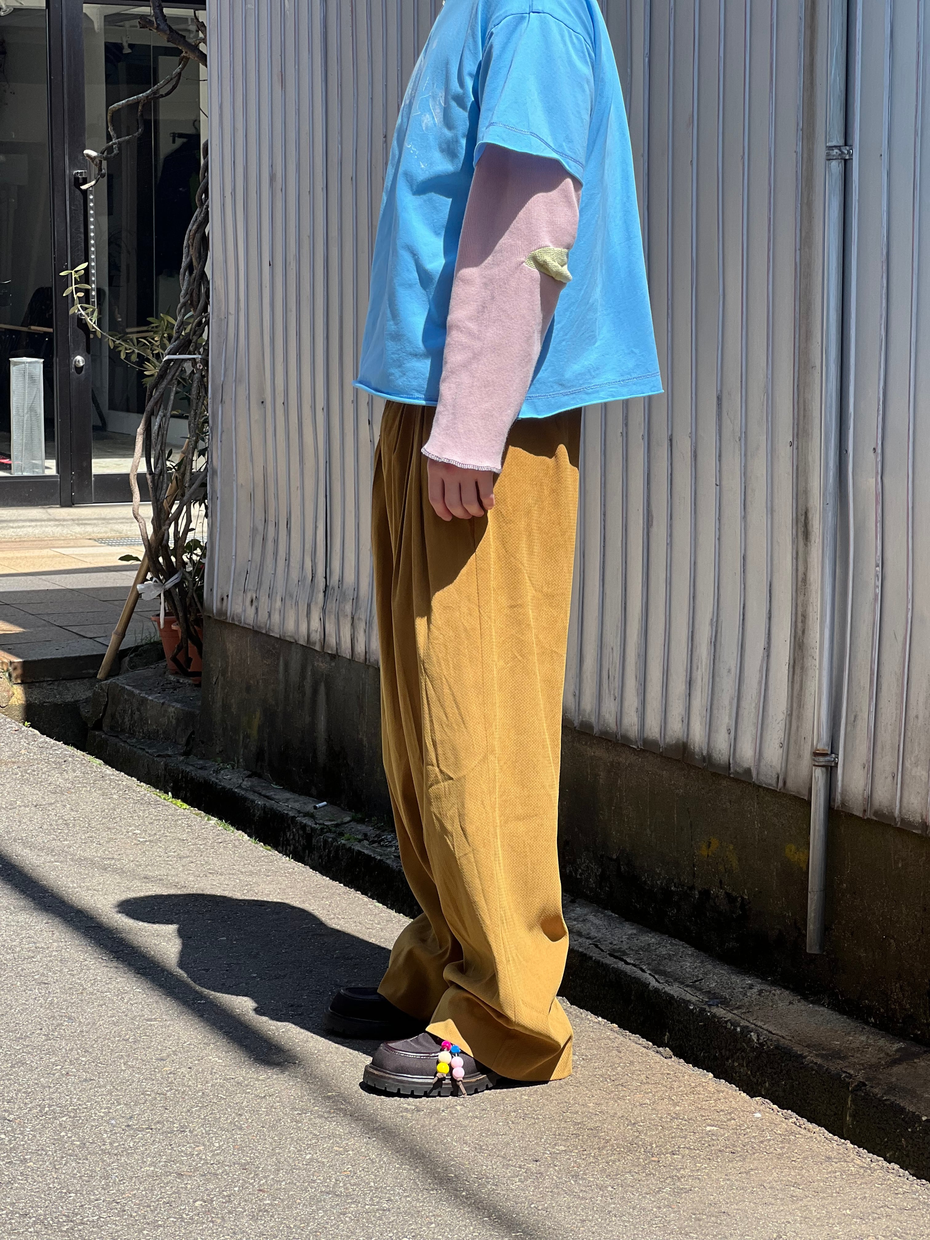 スラックスでは珍しいマスタードカラーにかなりワイドなシルエットで着用可能な一本です。