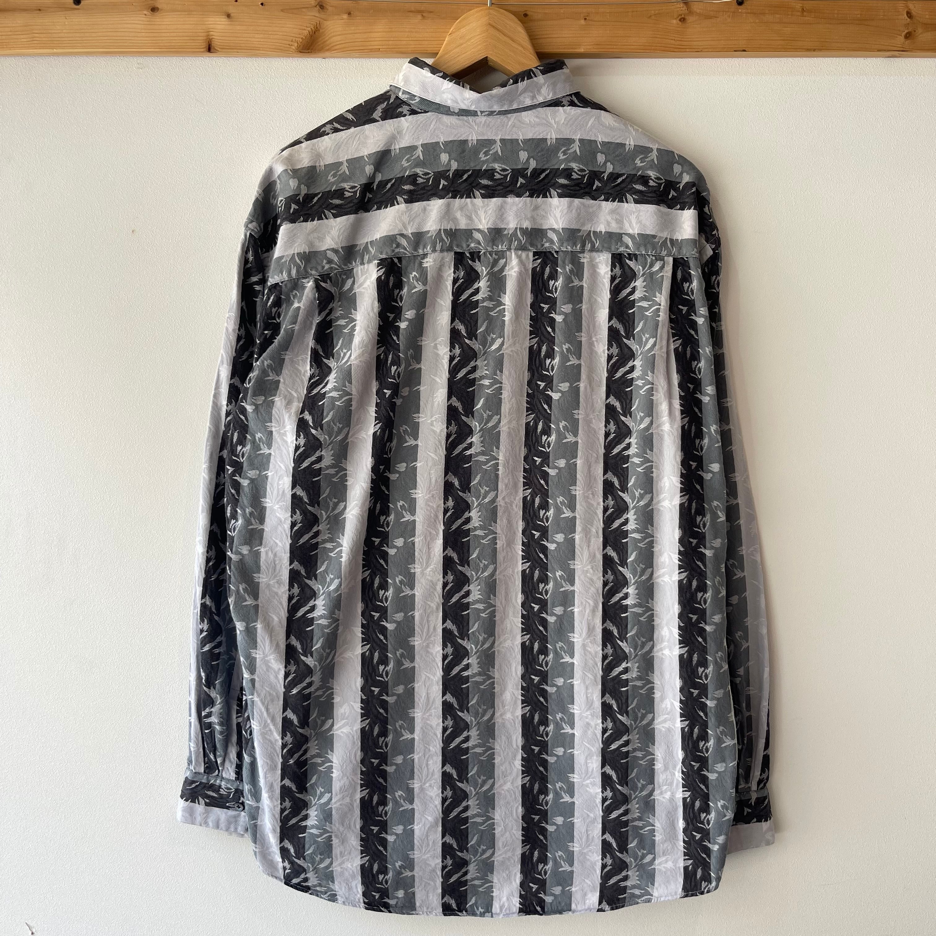 90’s 総柄ストライプシャツ メンズL程度 グレー 長袖 古着 ヴィンテージ gr-1648【26SSNS】