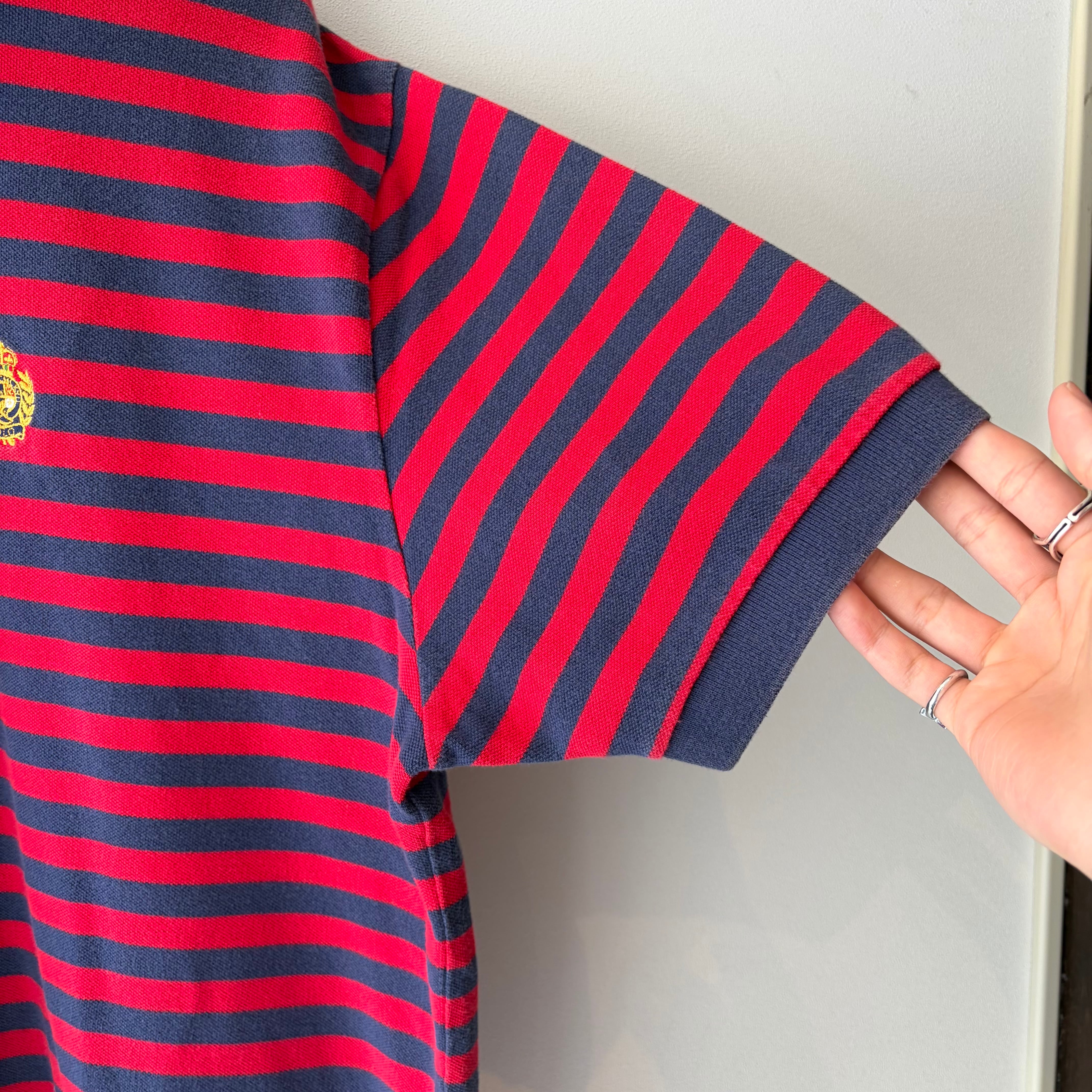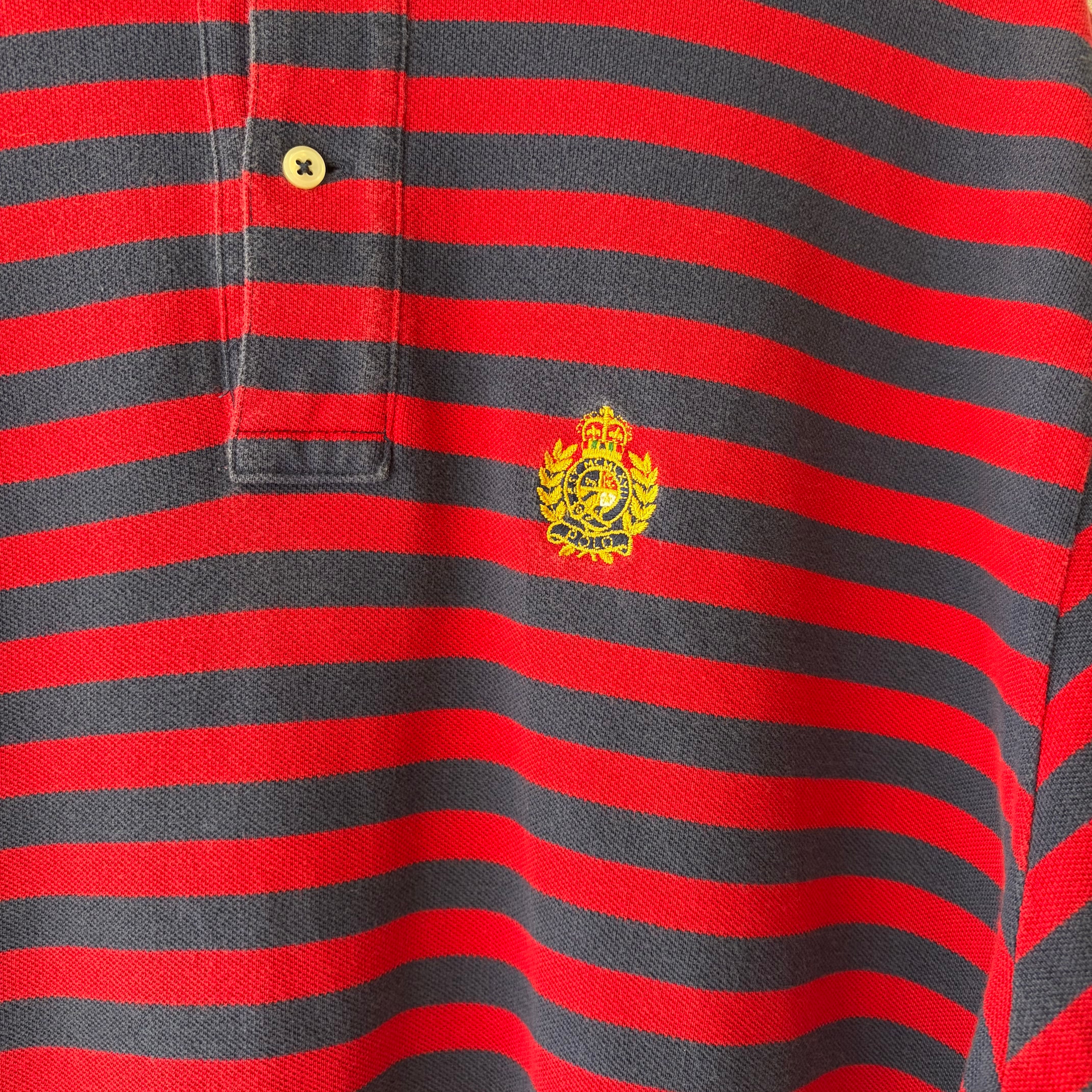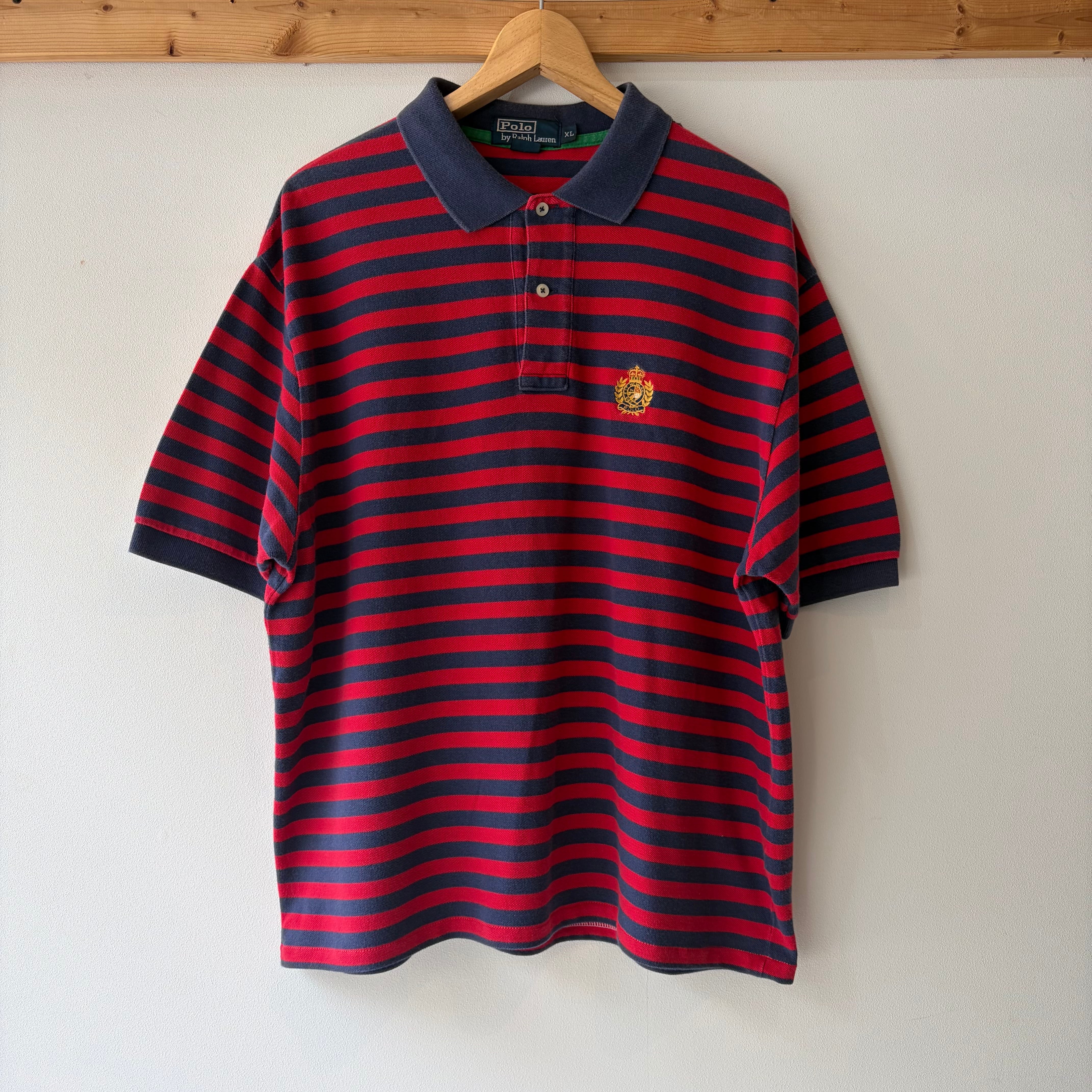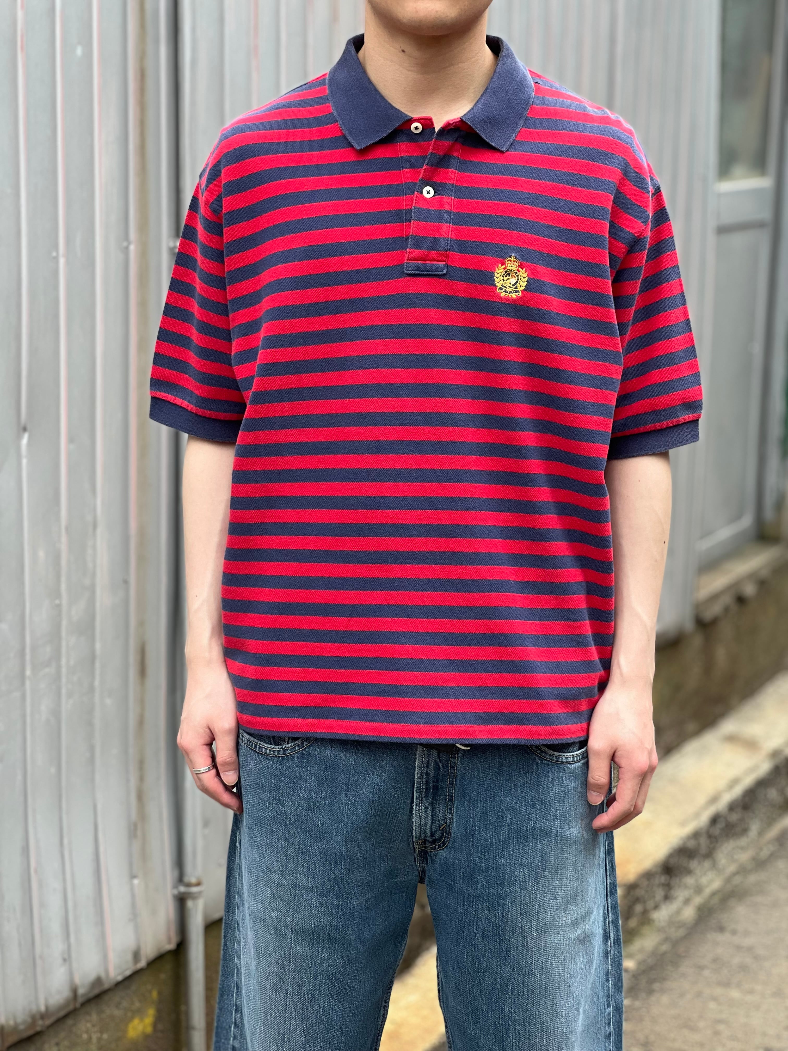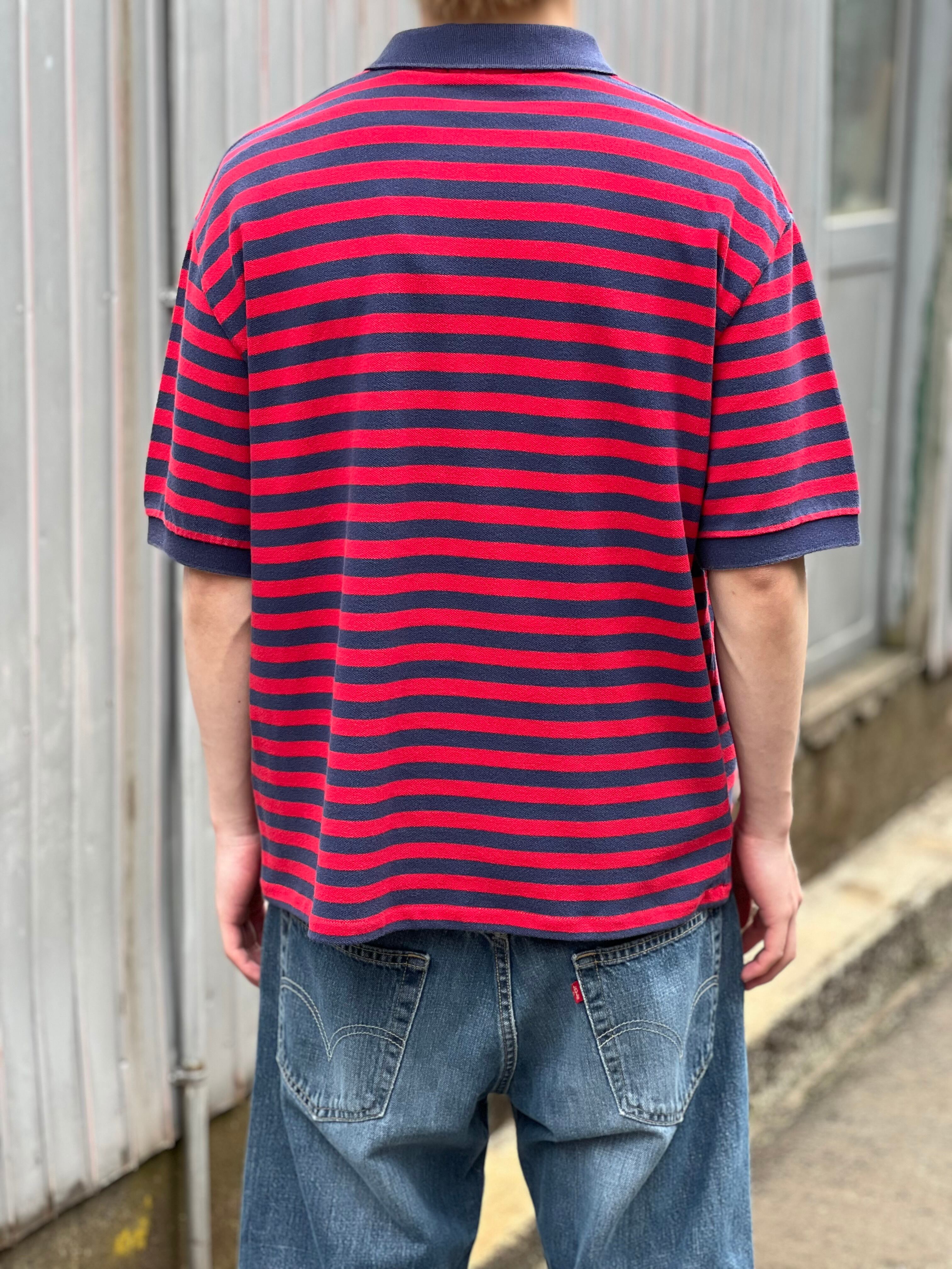 90‘s Ralph Lauren ラルフローレン 半袖ポロシャツ レッド メンズXL ボーダー short 古着 ヴィンテージ gr-1657 【26SSHS】