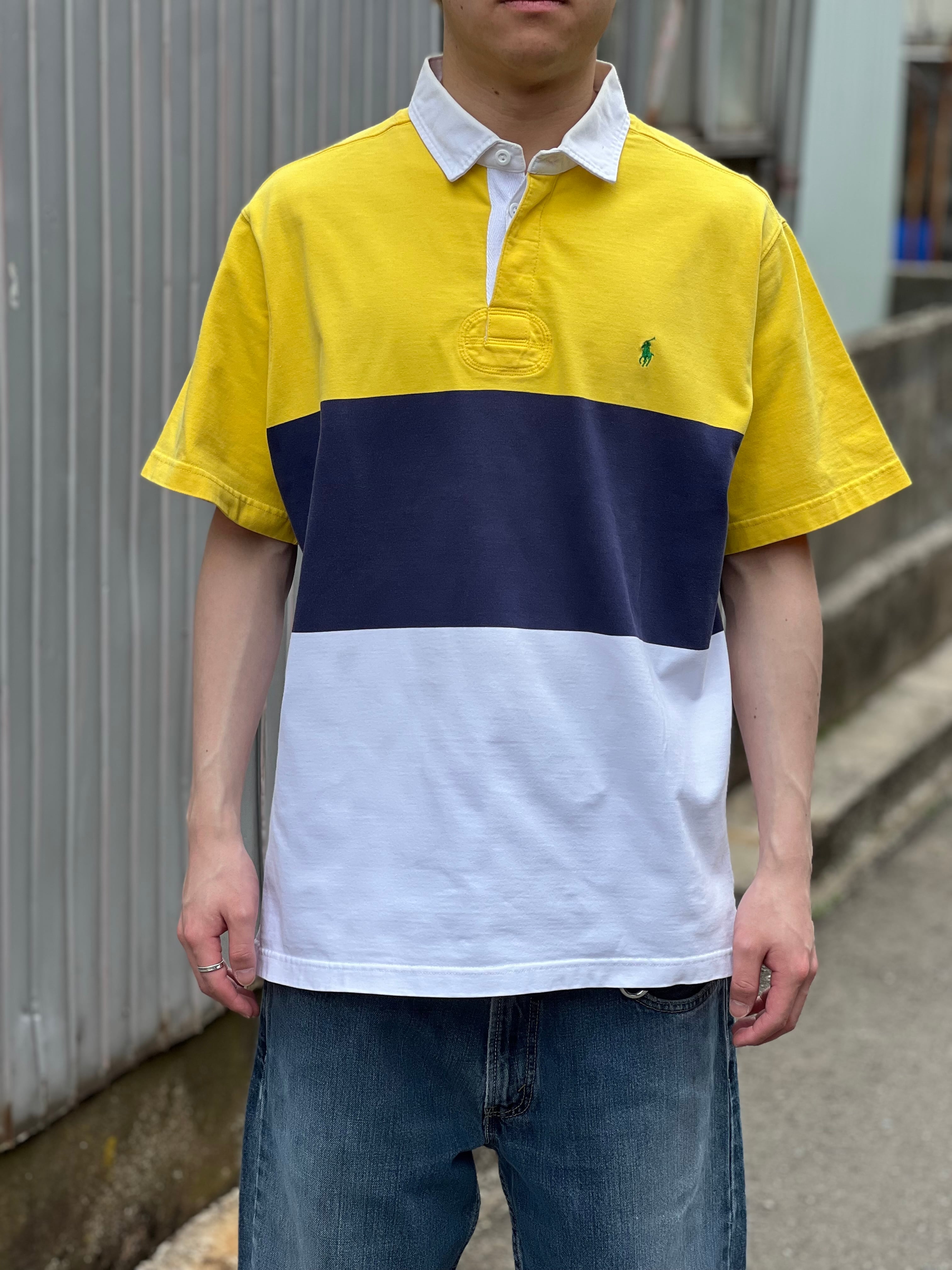 00‘s Ralph Lauren ラルフローレン 半袖ポロシャツ イエロー メンズL ラガーシャツ 古着 ヴィンテージ gr-1659 【26SSHS】