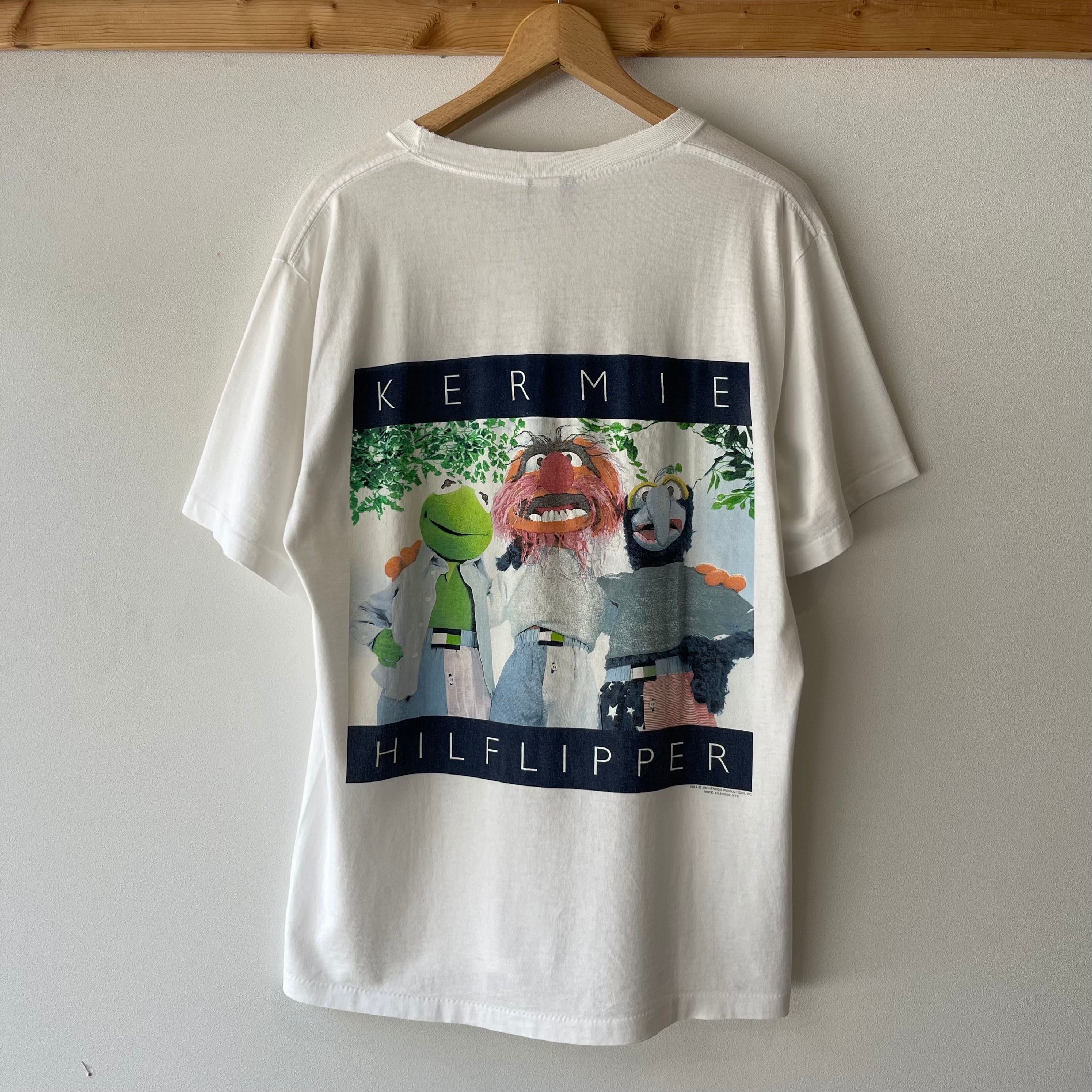 90‘s KERMIE HILFLIPPER Tシャツ メンズL ホワイト プリントT 古着 ヴィンテージ P-289