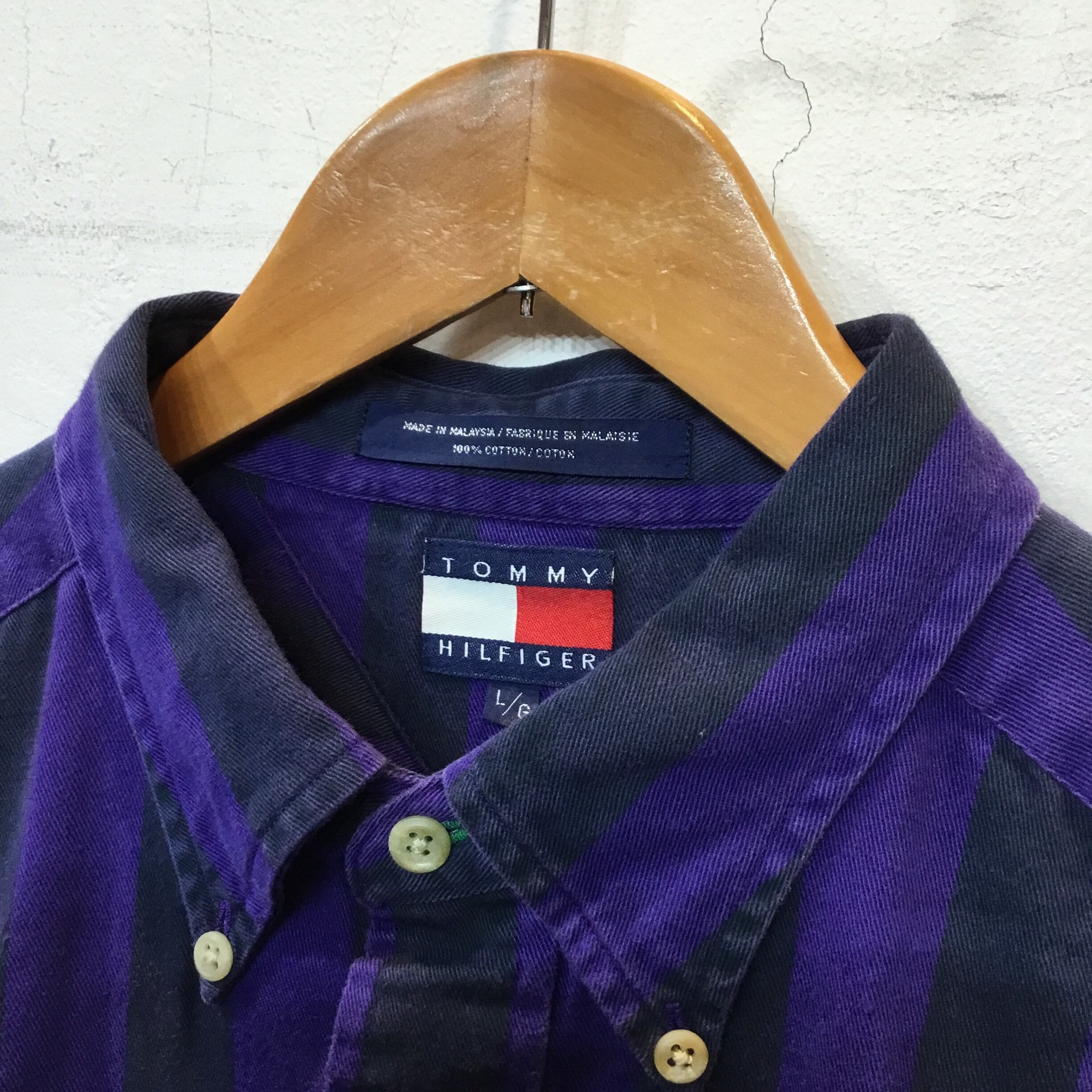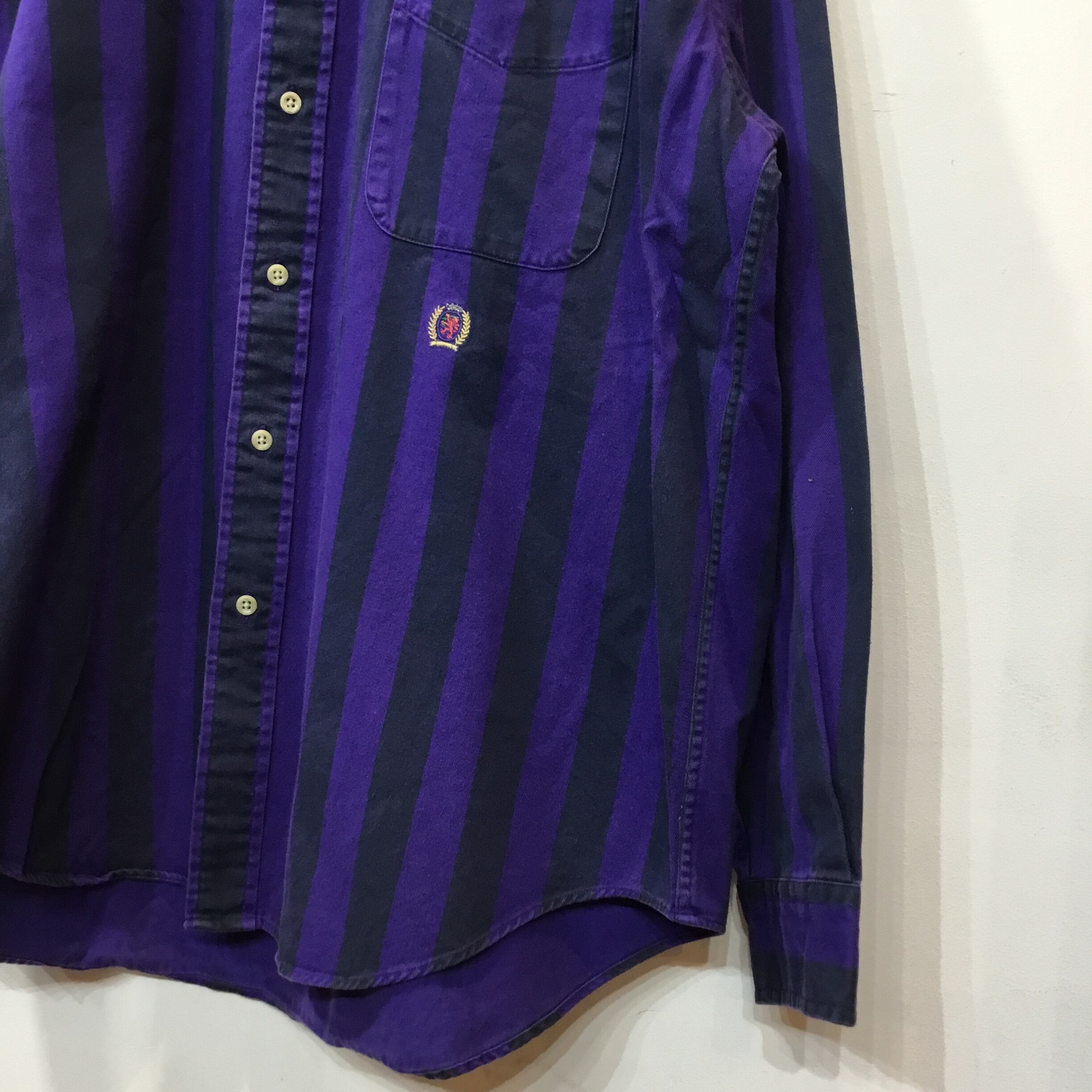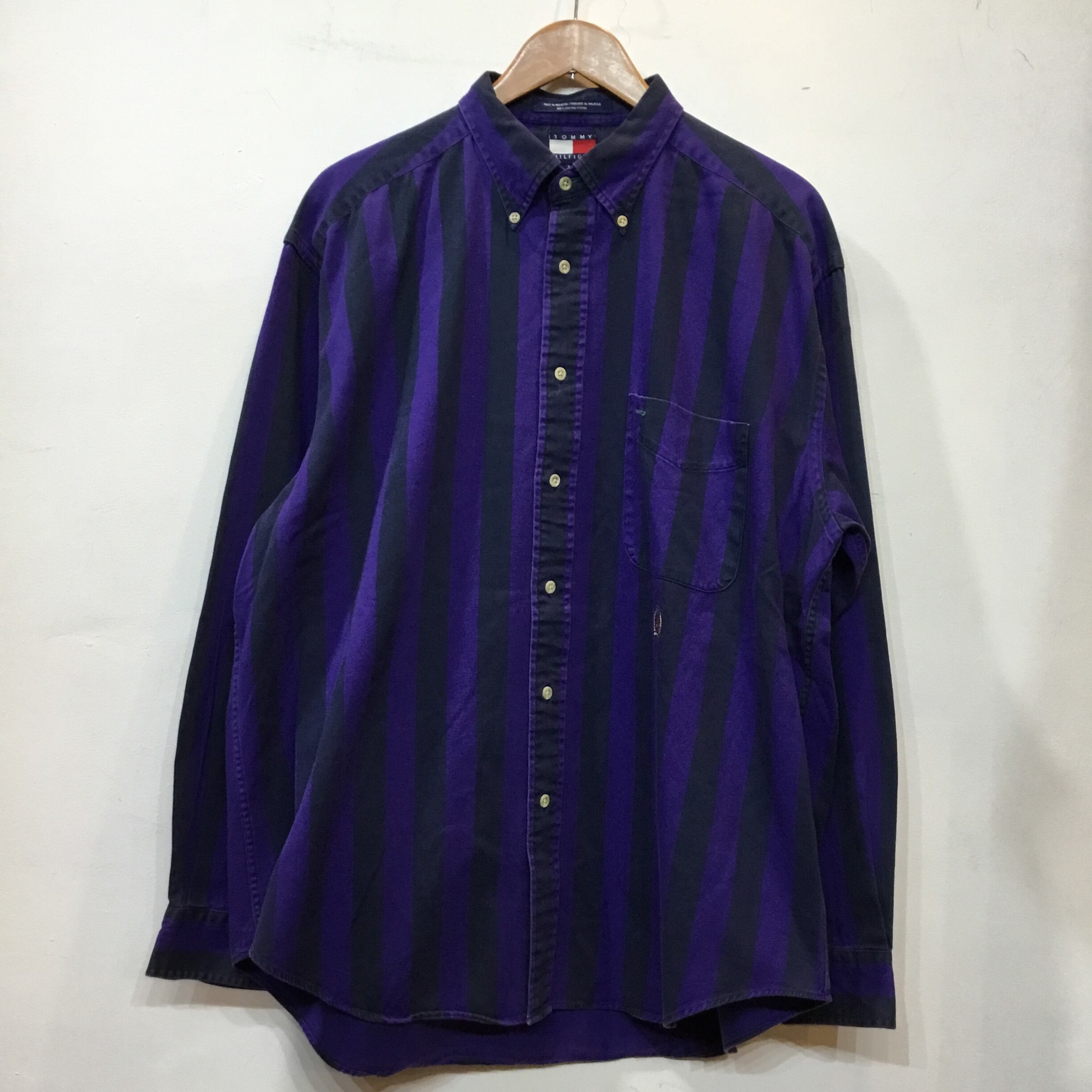 90’s TOMMY HILFIGER トミーヒルフィガー ストライプシャツ 柄シャツ 古着 gr-74