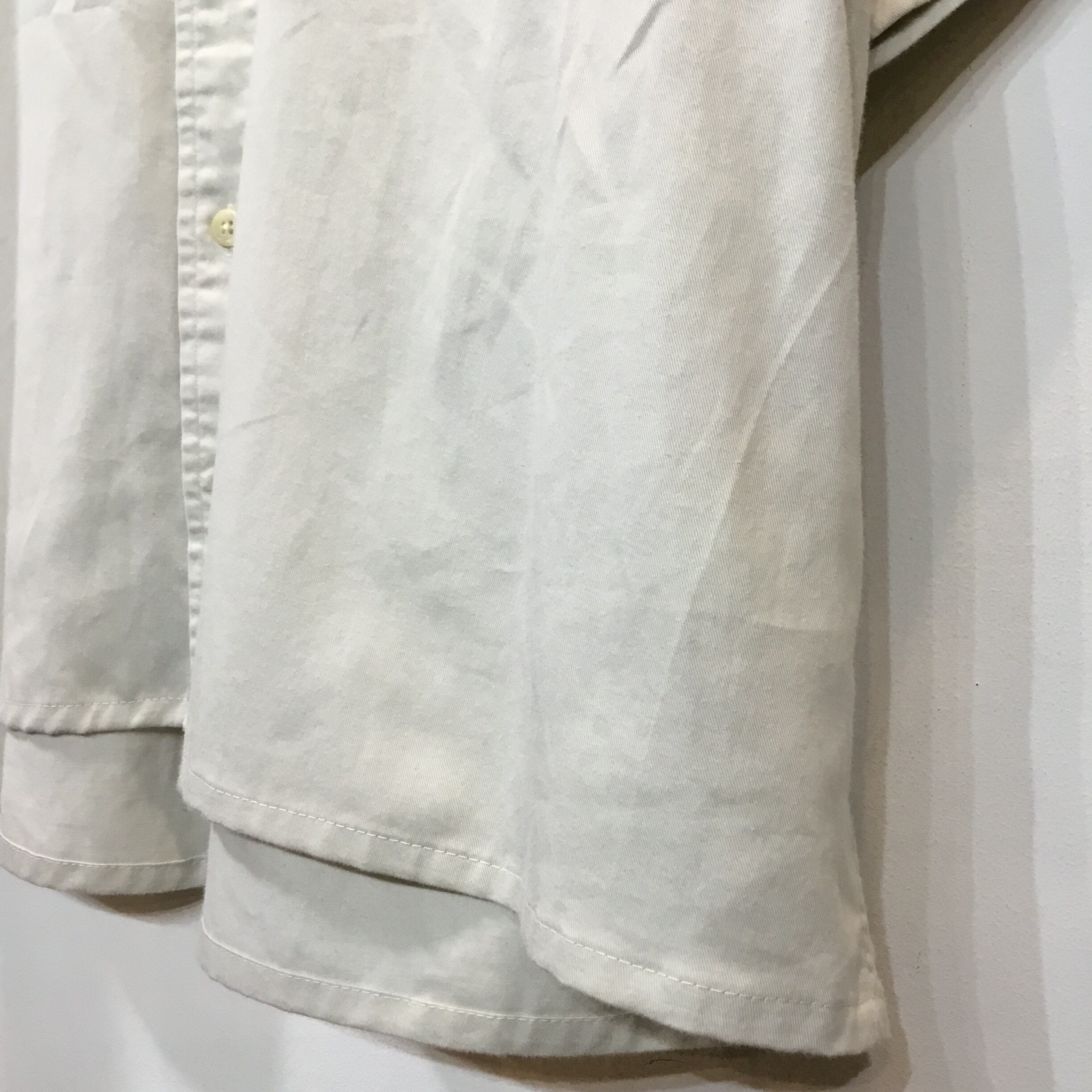 こちらの商品は元々長袖シャツだった商品を半袖にし、ボックスシルエットにリメイクしたアイテムになります。