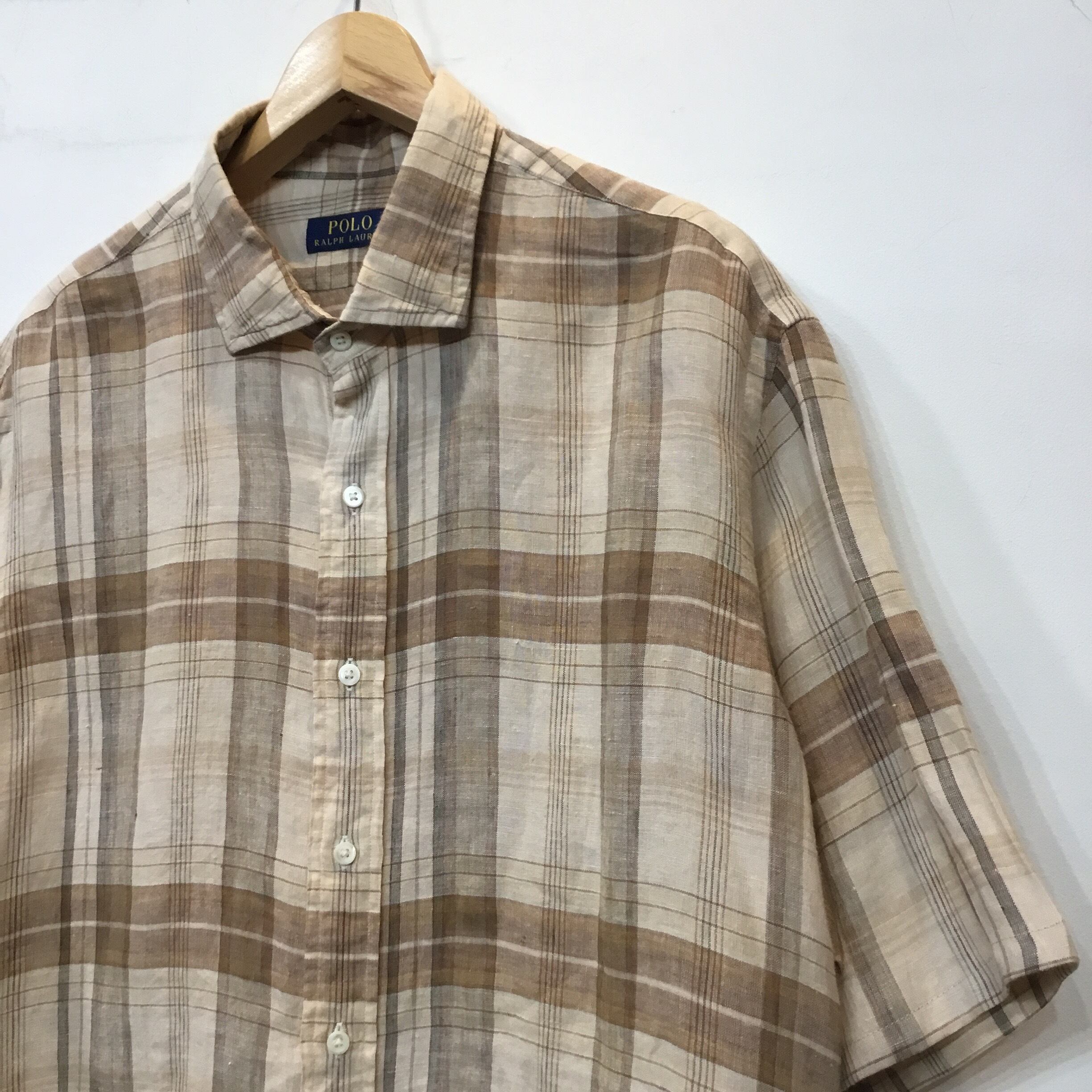 Ralph Lauren ラルフローレン 半袖シャツ リネンシャツ チェックシャツ ボックスシャツ リメイク 古着 【24SSHS】 gr-255