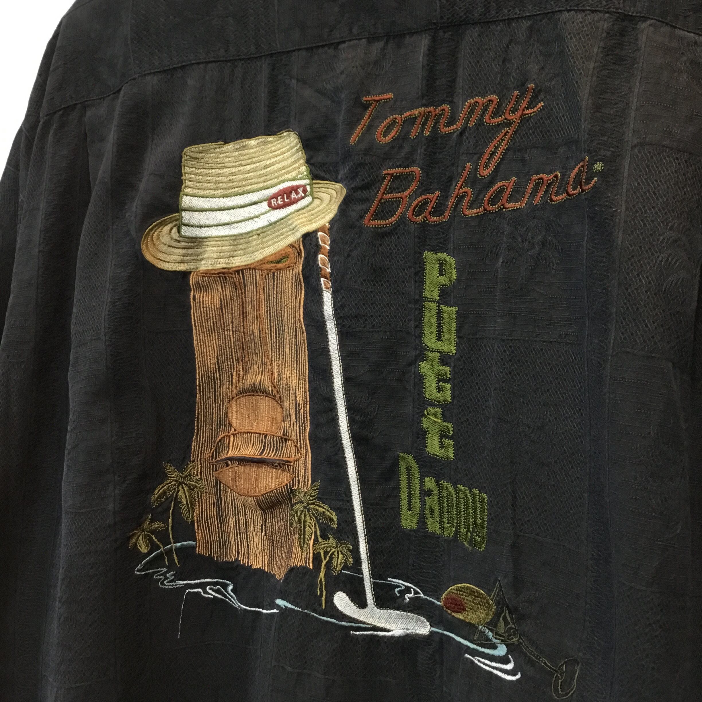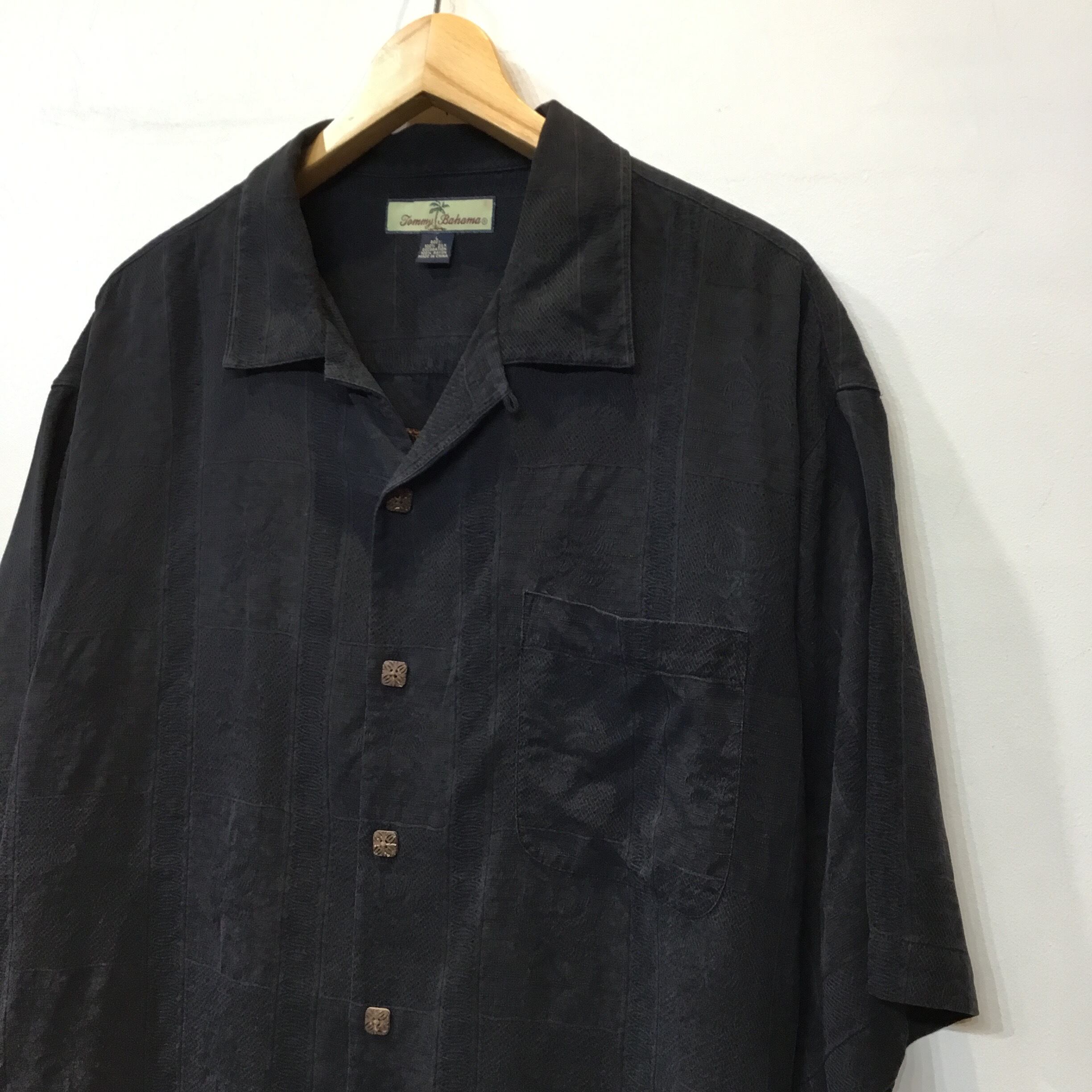 Tommy Bahama トミーバハマ 半袖シャツ シルクシャツ 開襟シャツ オープンカラーシャツ 黒シャツ 刺繍 古着 【24SSHS】 gr-303