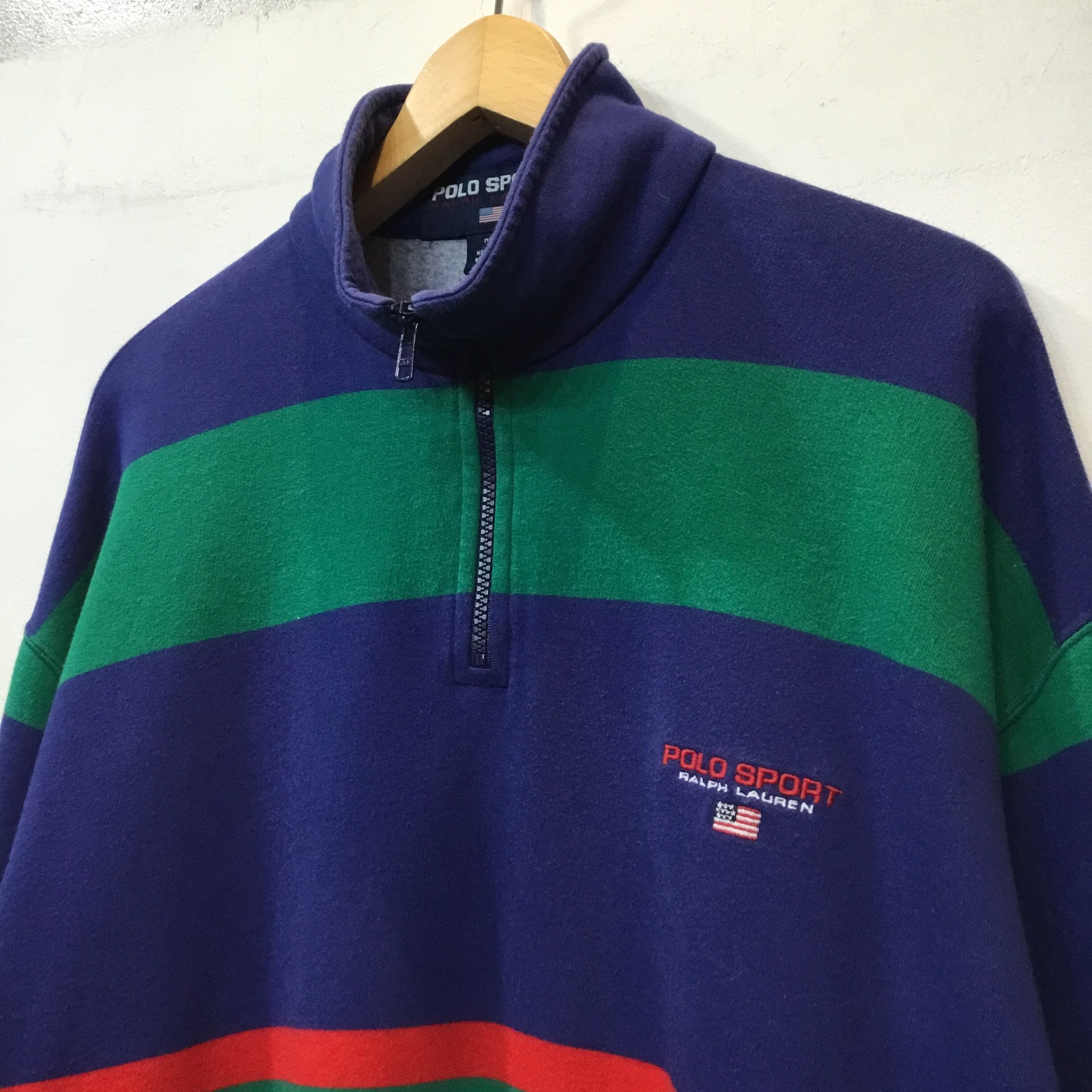 90’s Ralph Lauren Polo Sport ラルフローレン ポロスポーツ ハーフジップ スウェット ボーダー 古着 【24AWSW】 gr-588
